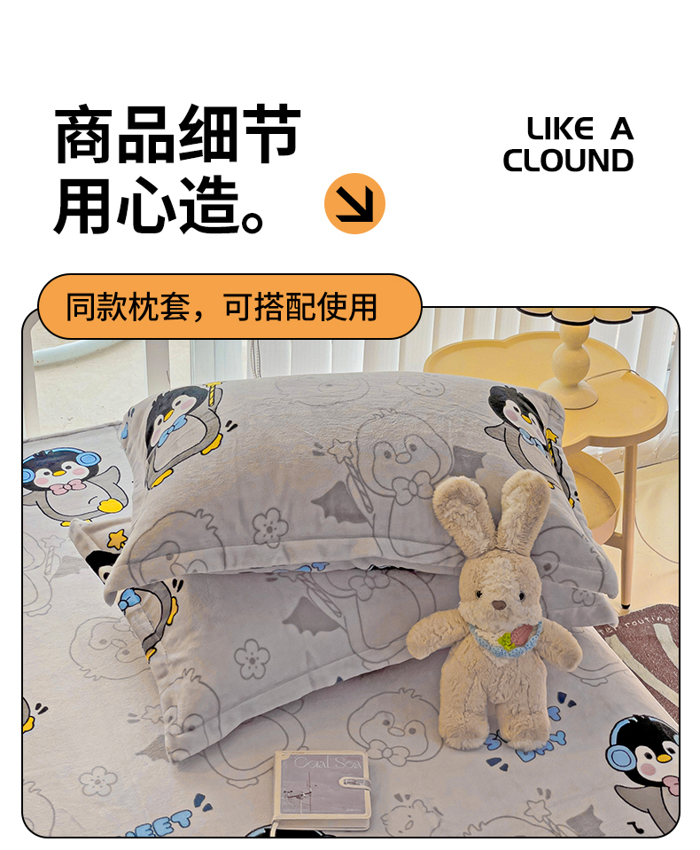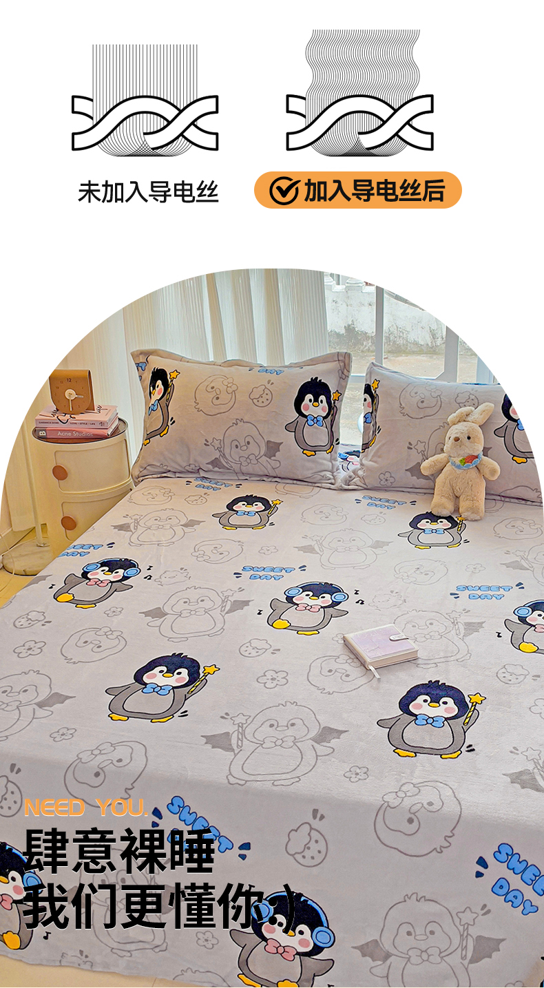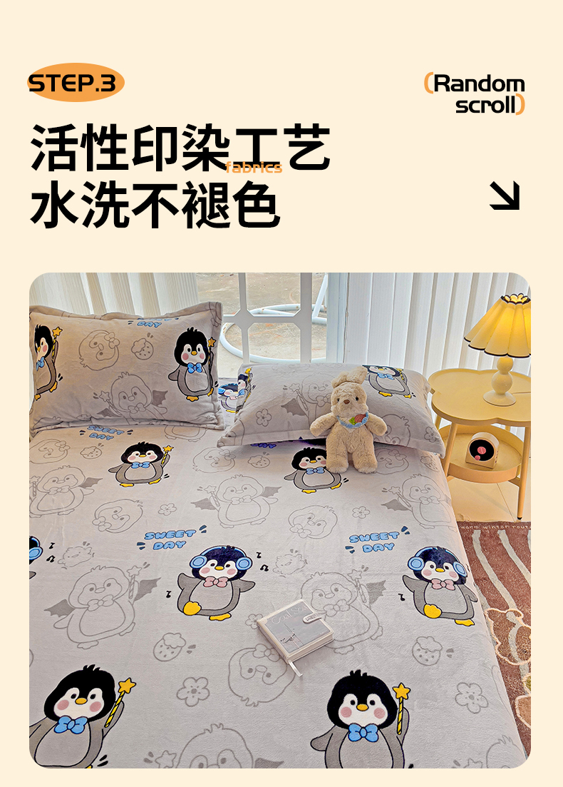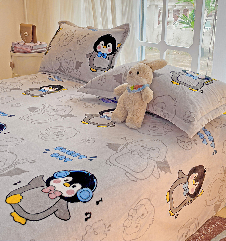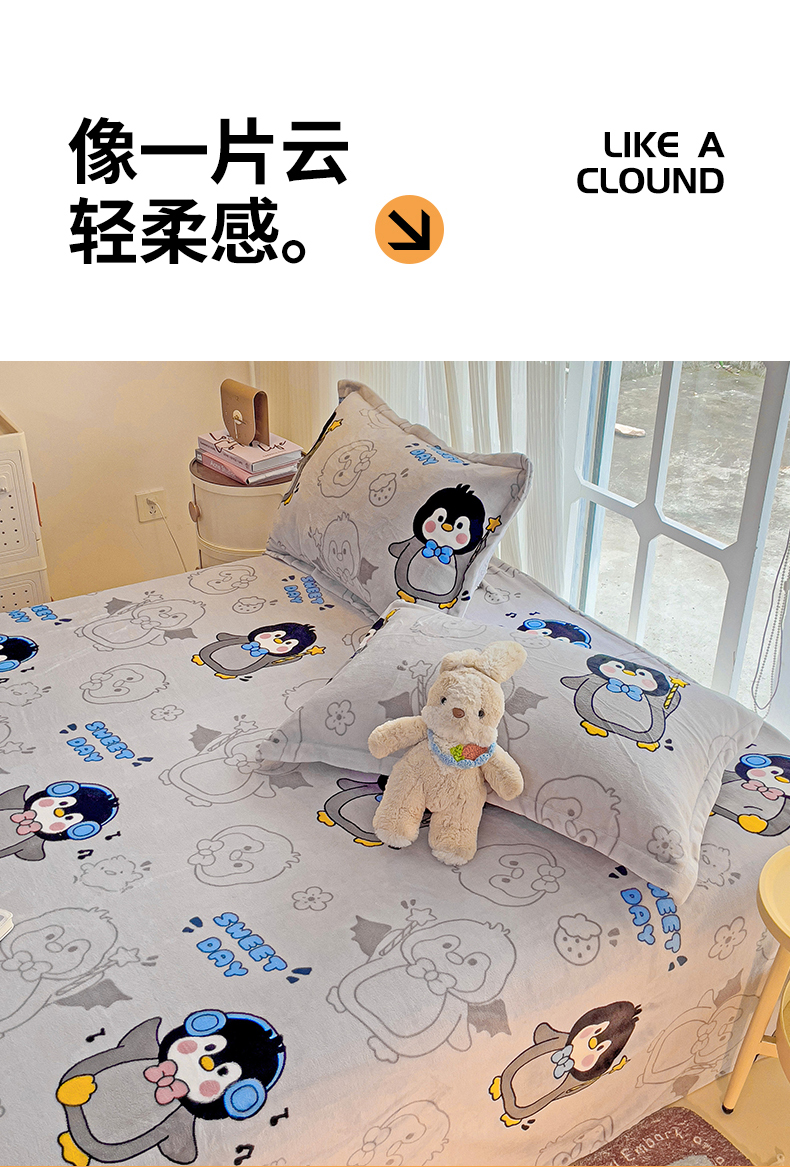 名兮家居 2024新款时尚卡通风高克重牛奶绒床单-盖毯 企鹅宝宝