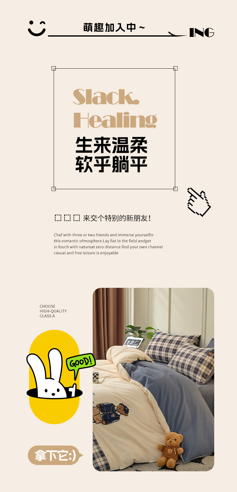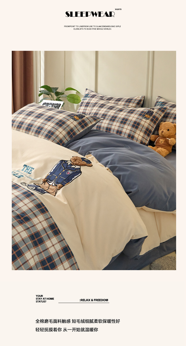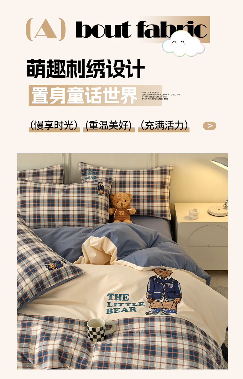 当前位置: 91家纺网 > 商品网购 > 床品套件 > 四件套 > 全棉普通四件套 > (总)蓝邻家纺 2024新款全棉磨毛卡通刺绣款四件套拼色刺绣系列