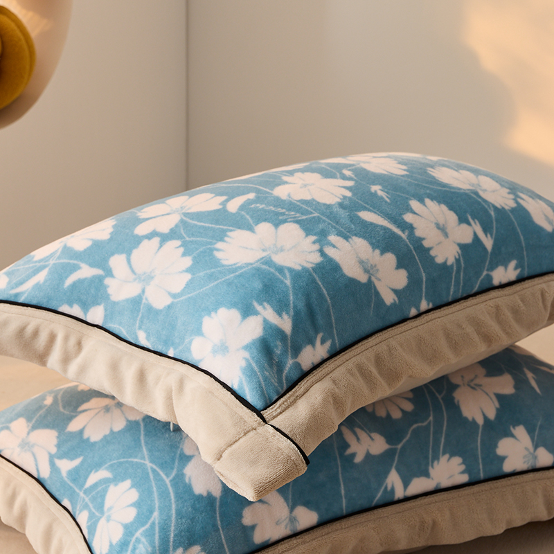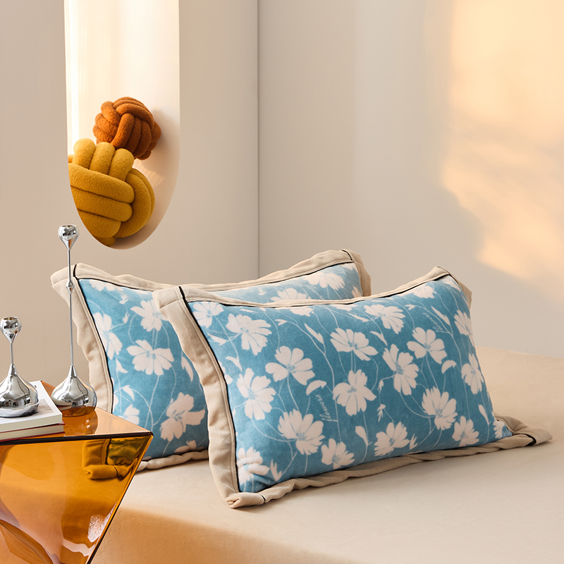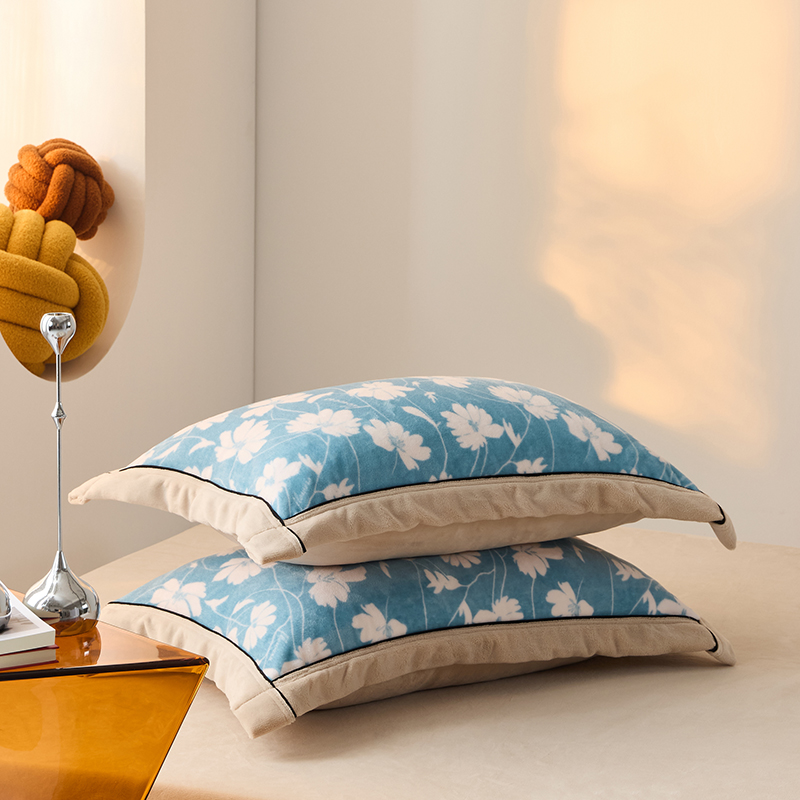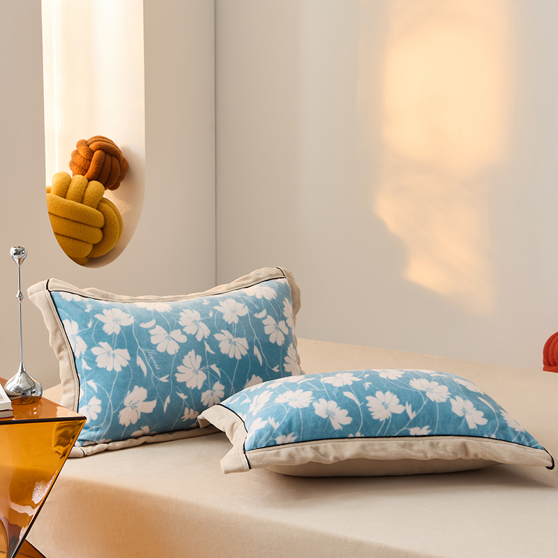 LADYCOCO可可家居 单枕套-2024新款牛奶绒数码印花单品系列 风叶蓝色+卡其色