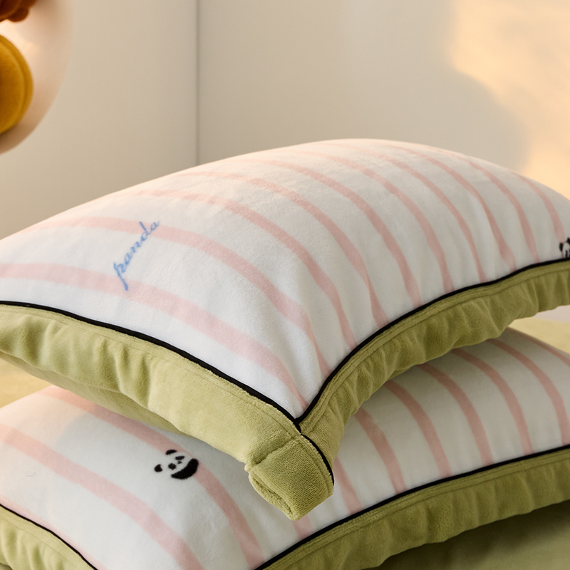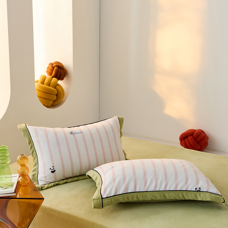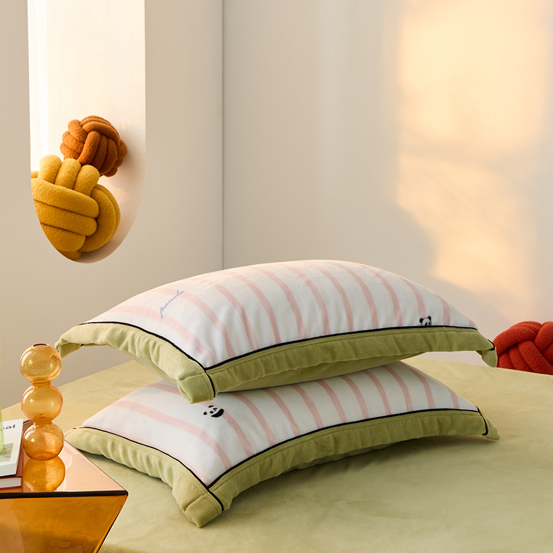 LADYCOCO可可家居 单枕套-2024新款牛奶绒数码印花单品系列 条纹熊猫粉+果绿