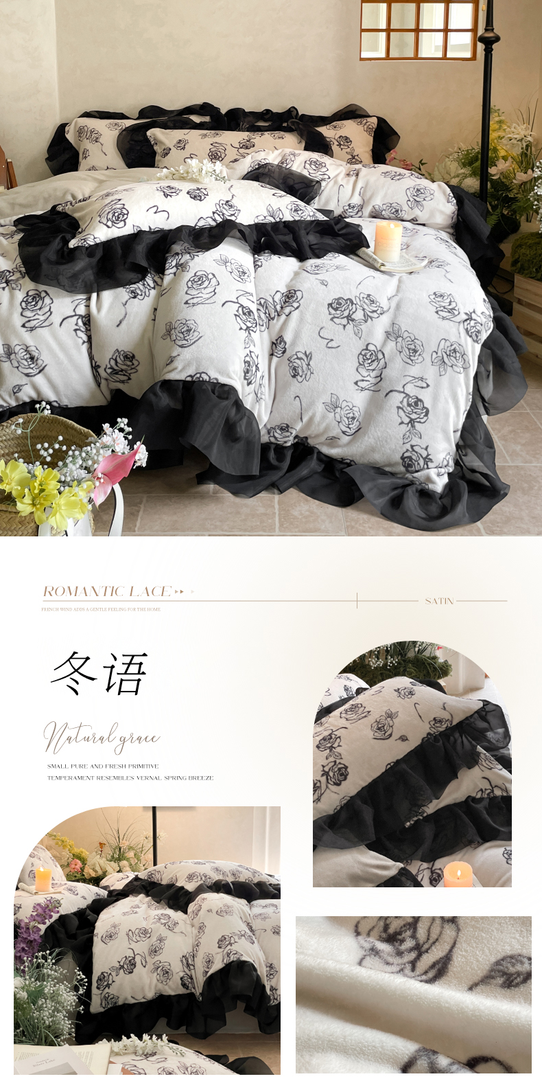 商品名称:慕澄家纺 2024新款高克重花边牛奶绒印花四件套 冬语