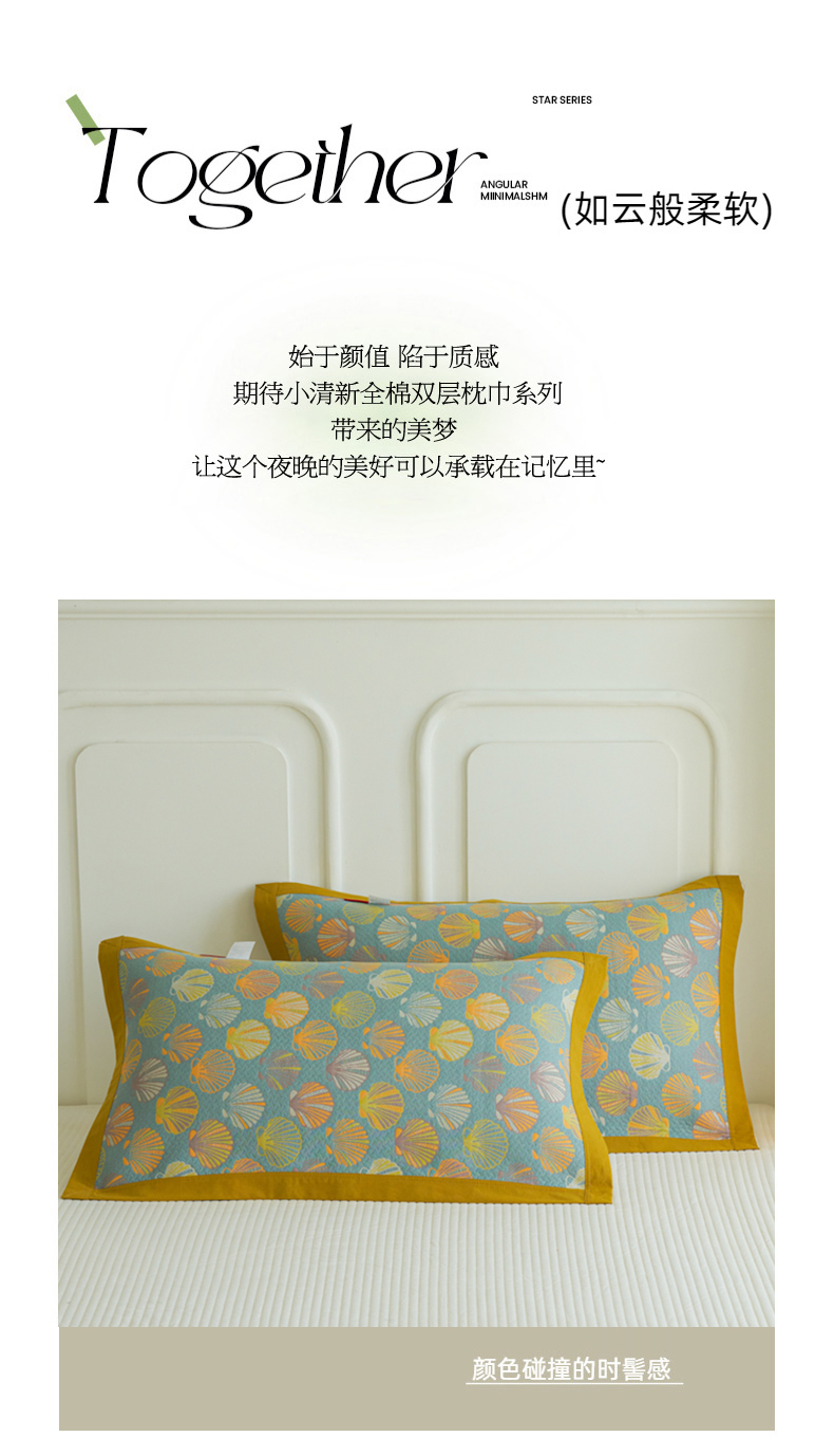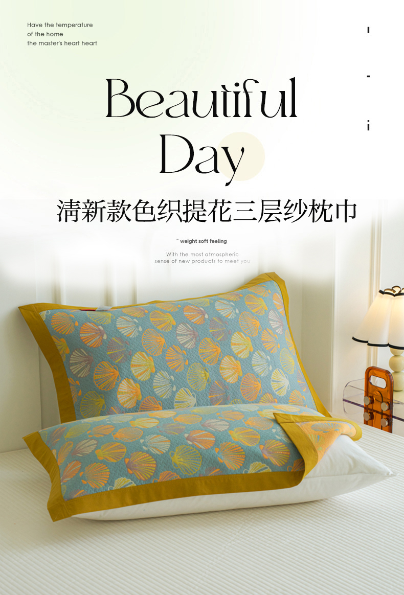 商品名称:棠薇家纺 2025新款清新款全棉细纱三层纱包边枕巾一对装 彩色仙贝-枕巾