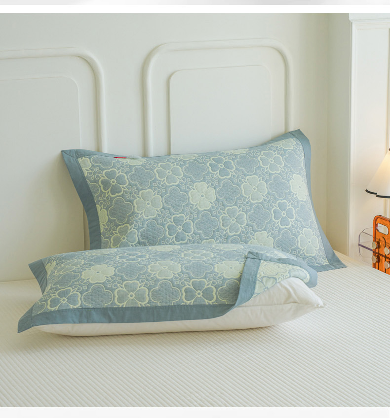 棠薇家纺 2025新款清新款全棉细纱三层纱包边枕巾一对装 四片叶子-枕巾