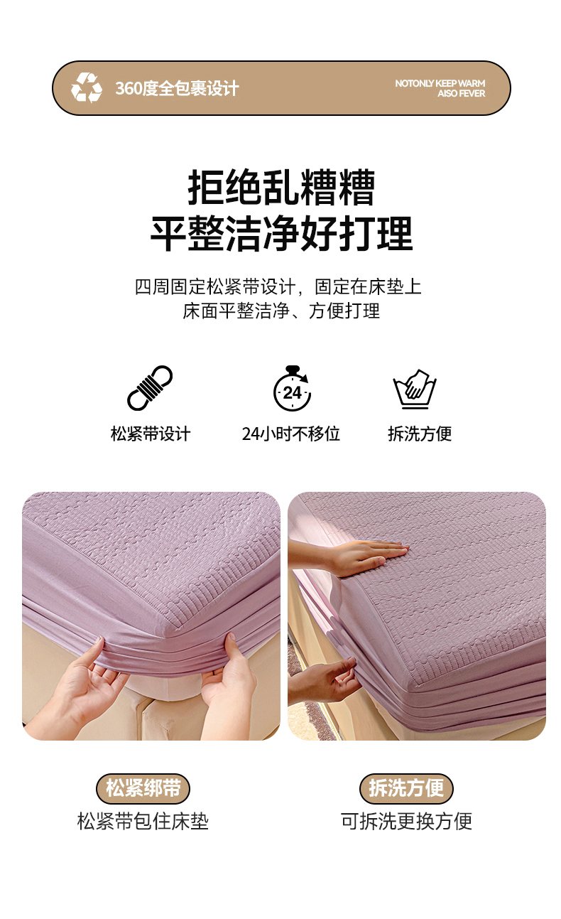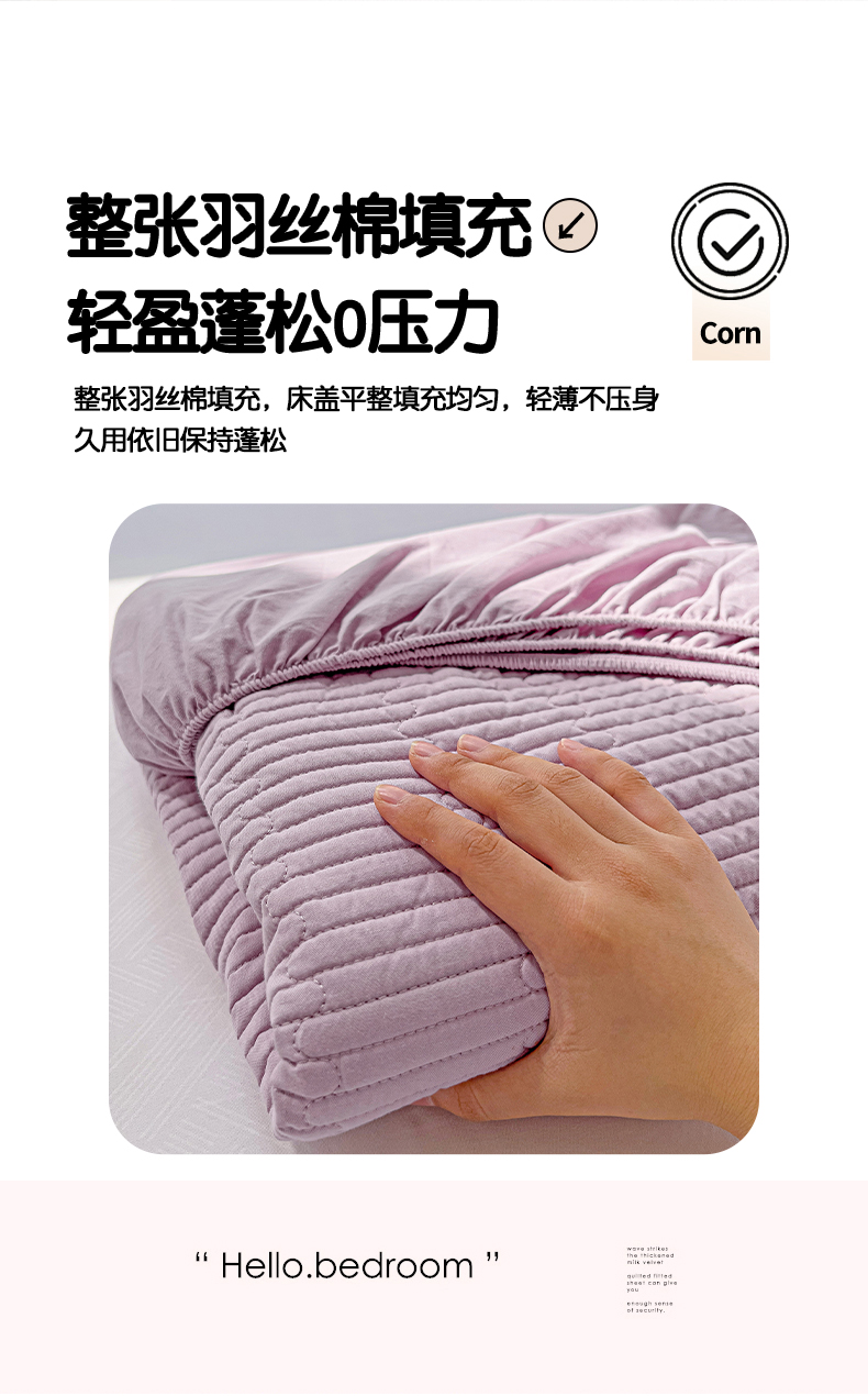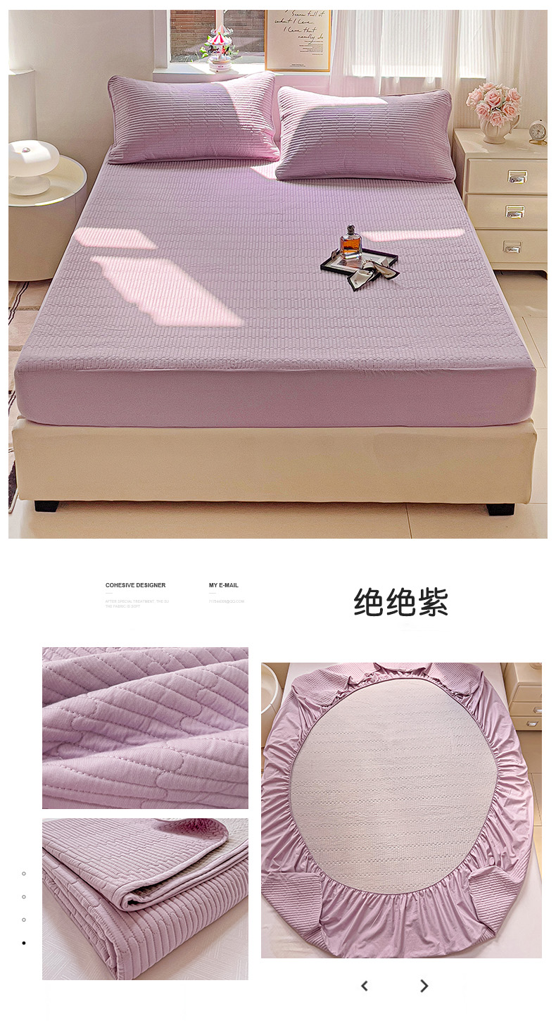 • 91家纺网 家纺一手货源 找家纺 漫时光 2025新款40支全棉纯色夹棉床笠款 绝绝紫
