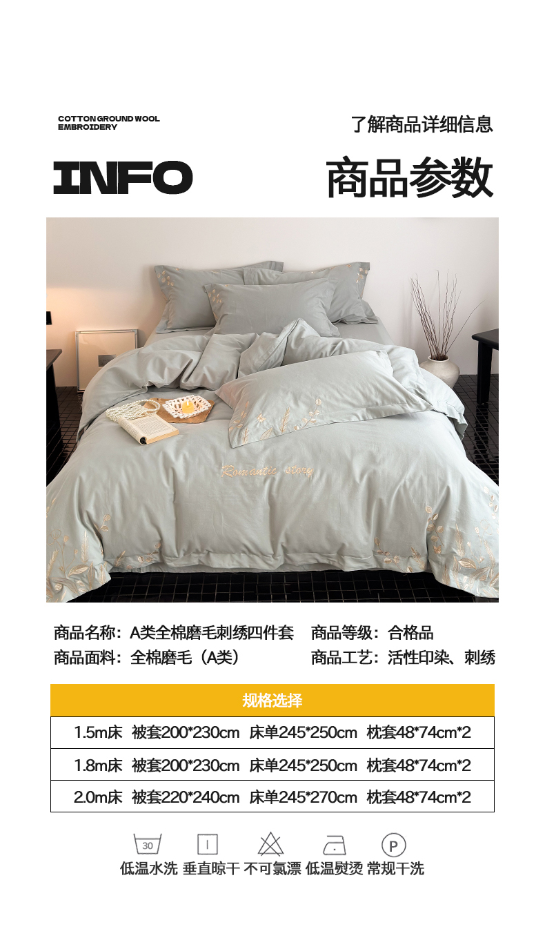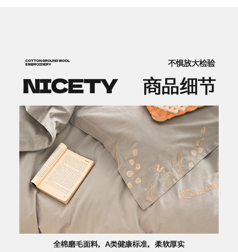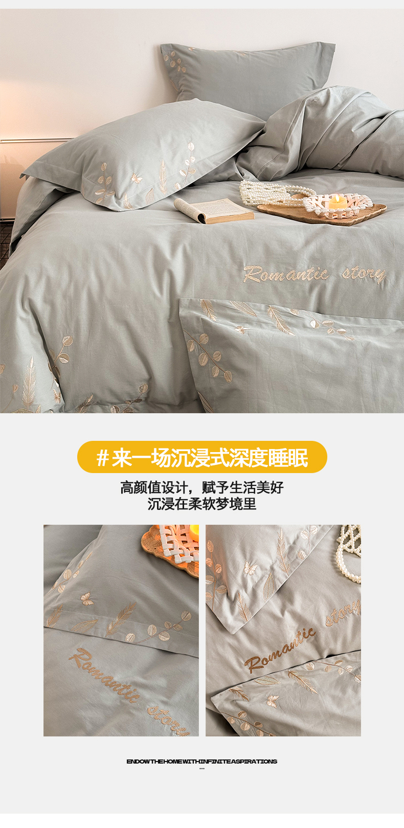 商品名称:典曼家纺 2024新款A类高精密磨毛绣花四件套-序秋 序秋-洛蒙灰