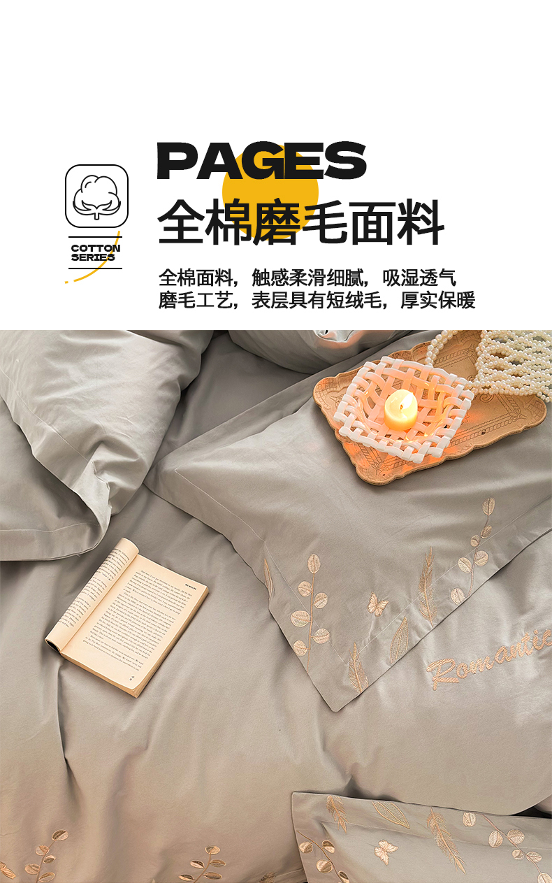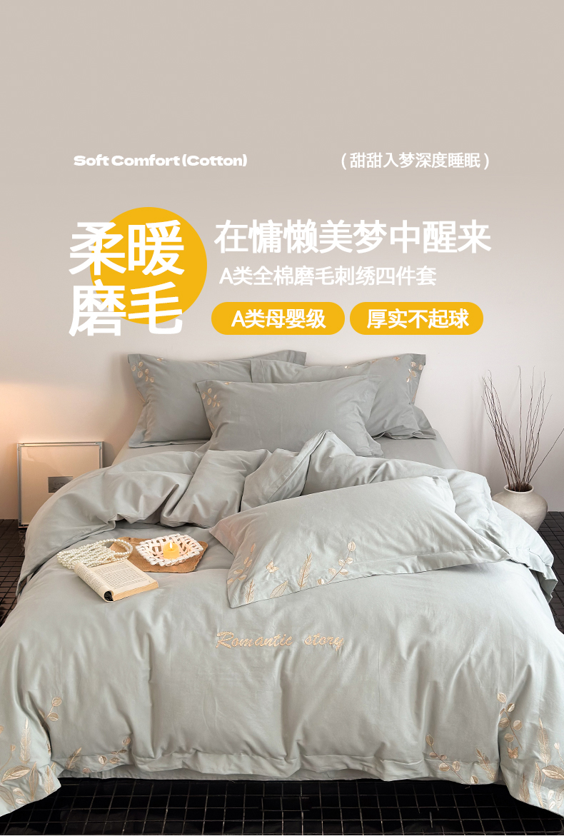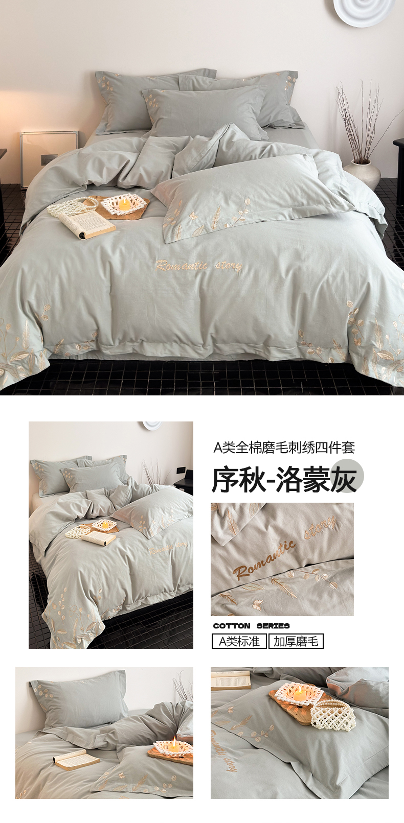典曼家纺 2024新款A类高精密磨毛绣花四件套-序秋 序秋-洛蒙灰