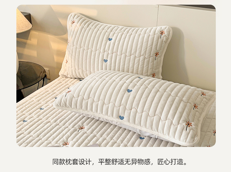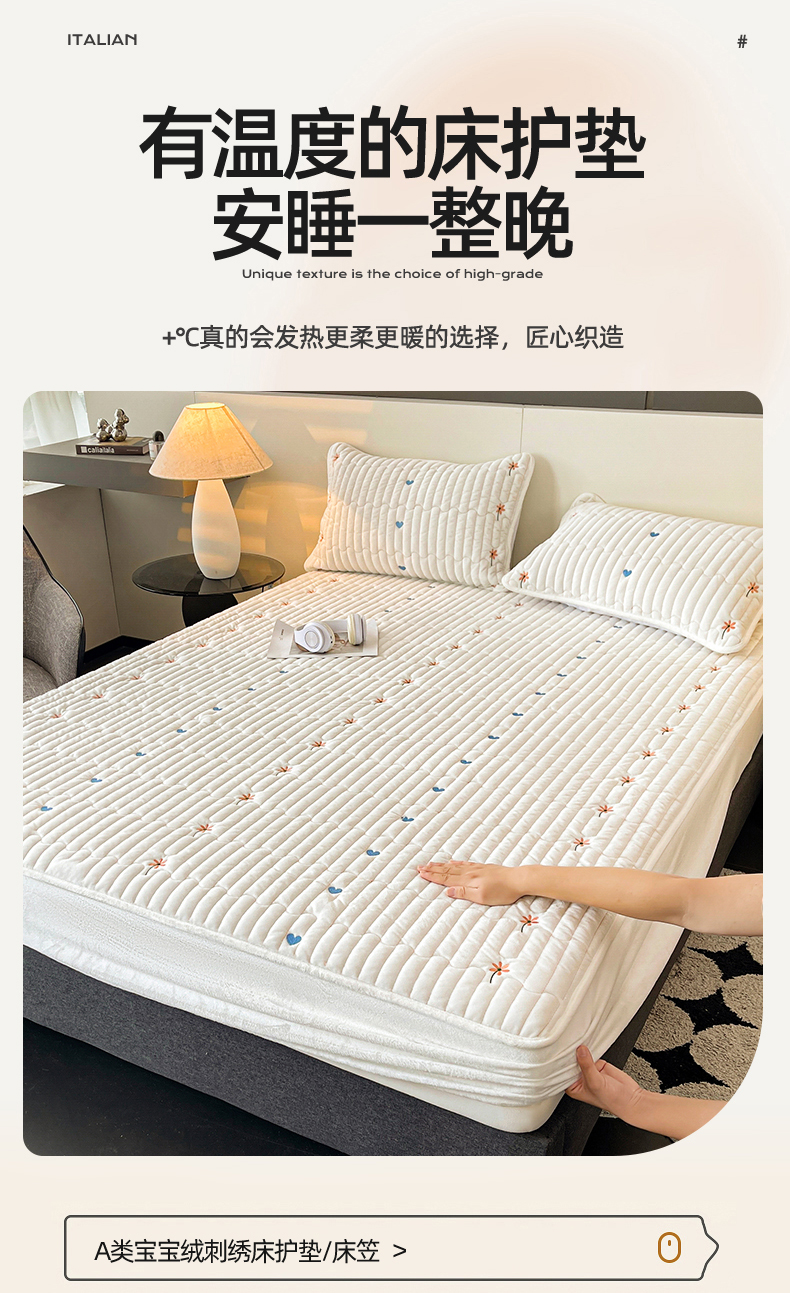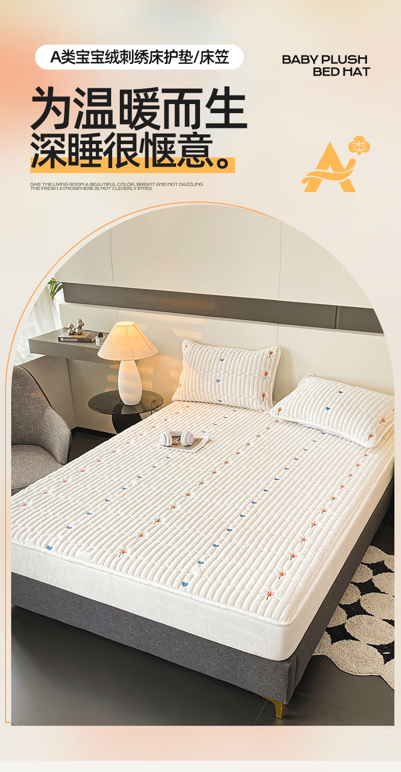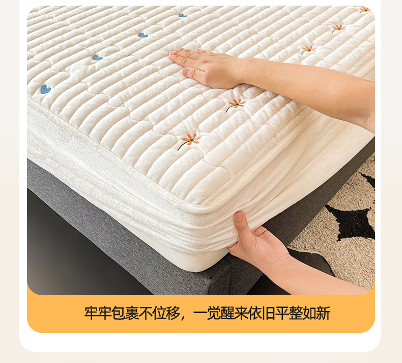 商品名称:2024新款A类纯色牛奶绒刺绣薄款床垫加厚绒保暖床笠床护垫 艾维-白(床笠款)