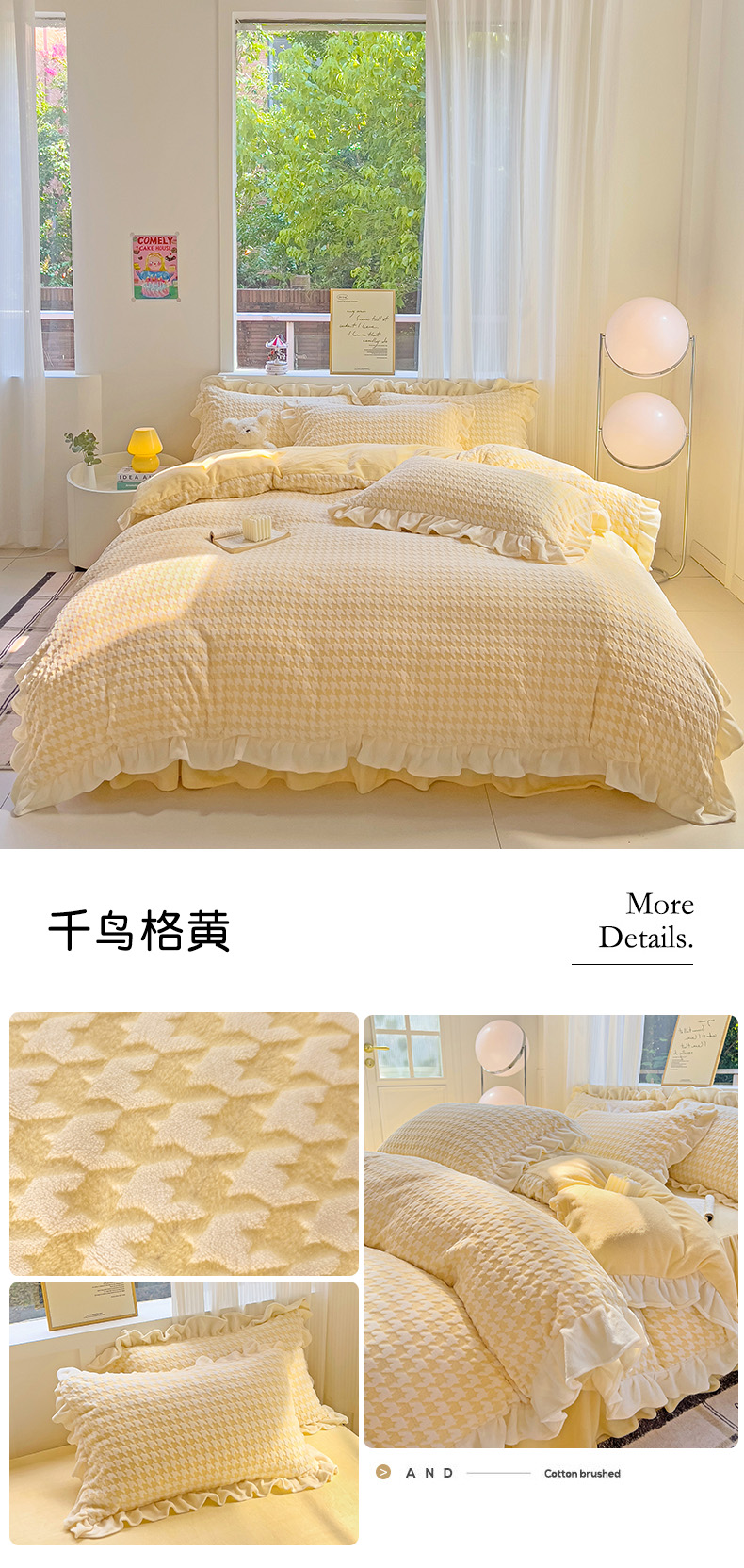 商品名称:2024新款加厚牛奶绒韩版雕花四件套风格2(阳光) 千鸟格黄