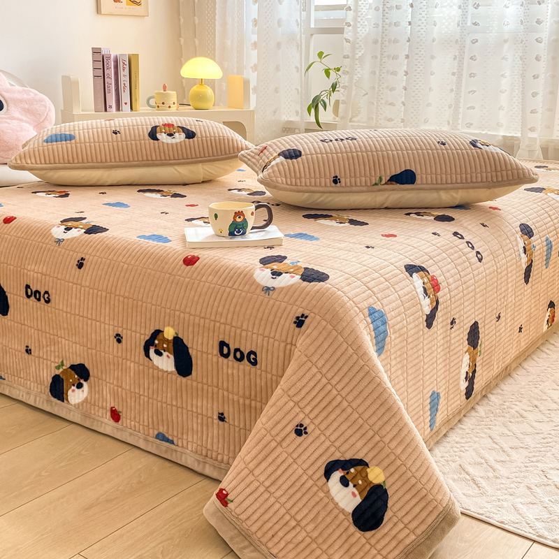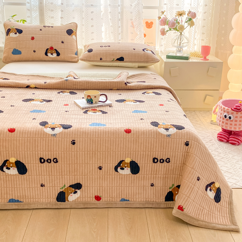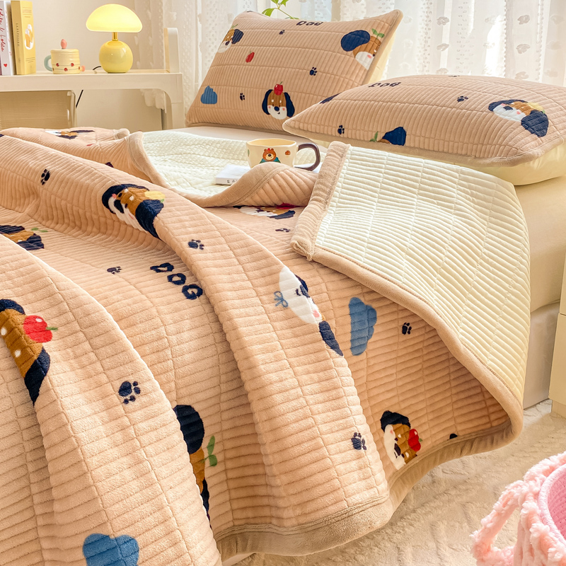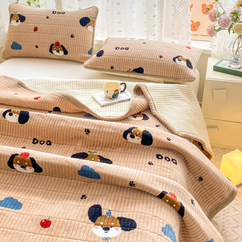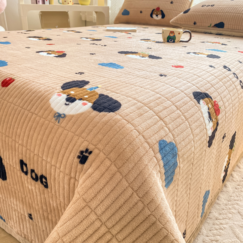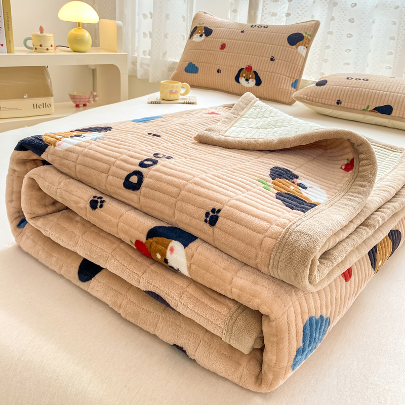 家喜爱 2024新款A类牛奶绒夹棉加厚直边软床盖 小狗帕克