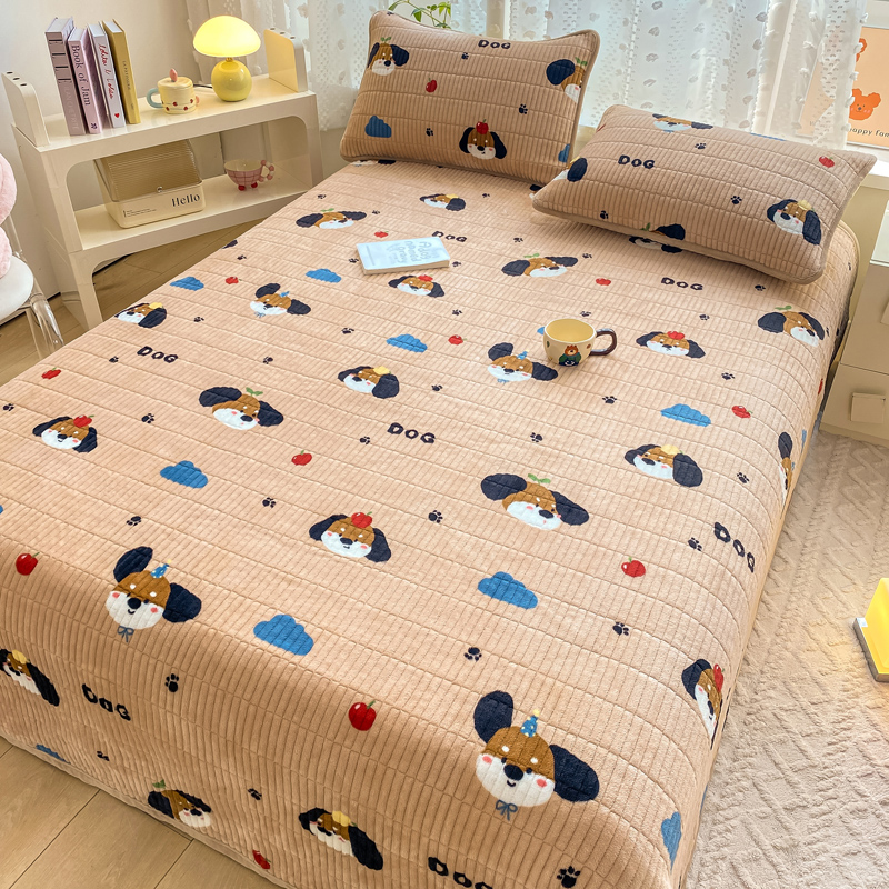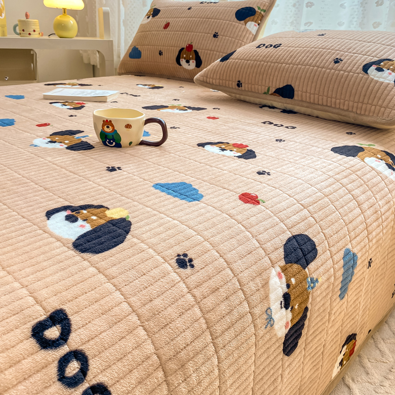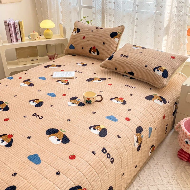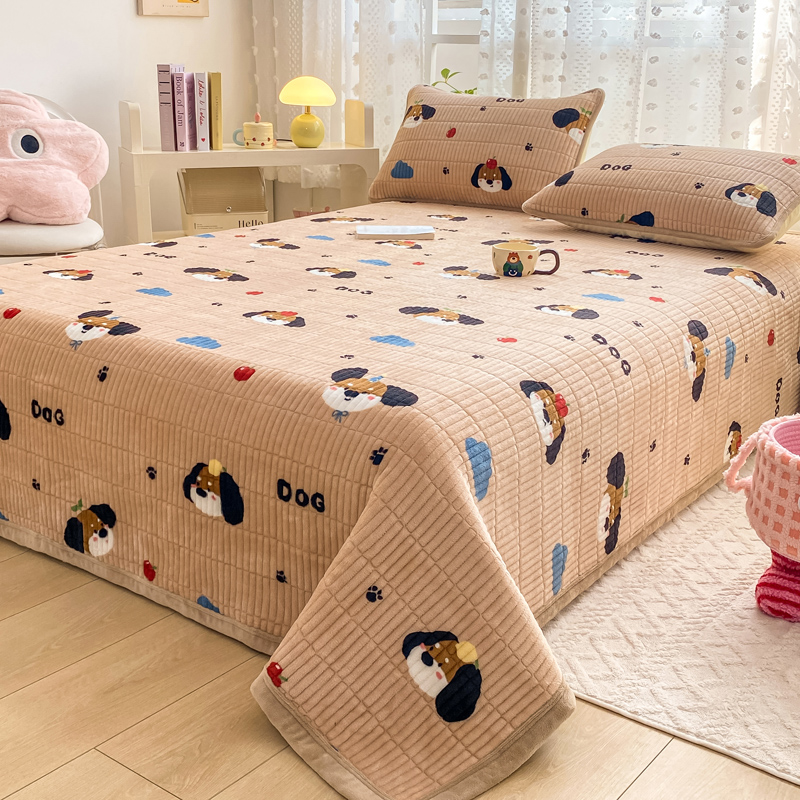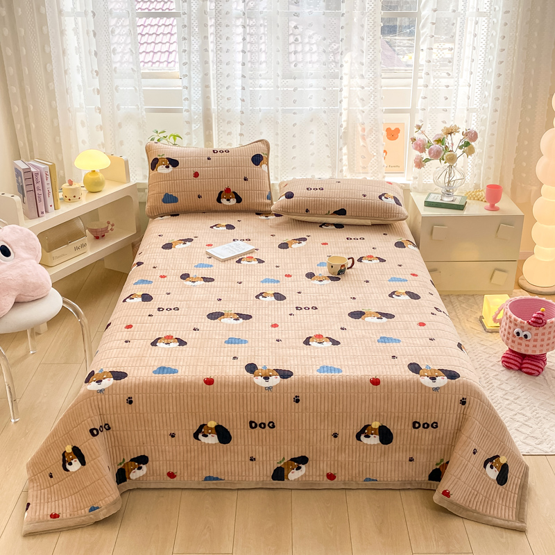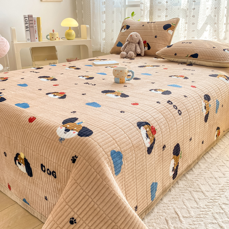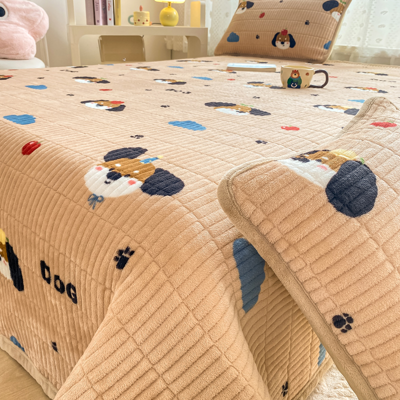 家喜爱 2024新款A类牛奶绒夹棉加厚直边软床盖 小狗帕克