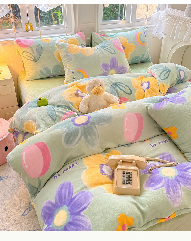 红粉佳人 2025新款小清新双面牛奶绒四件套花期