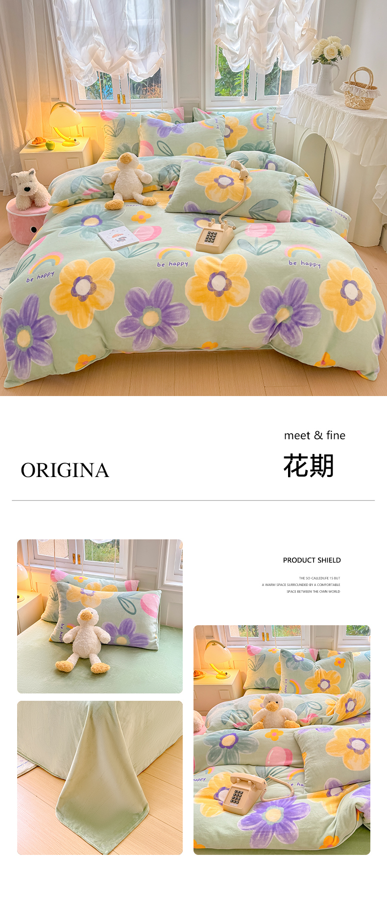 商品名称:红粉佳人 2025新款小清新双面牛奶绒四件套花期