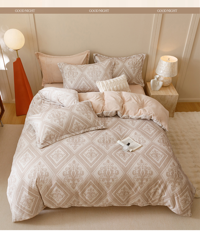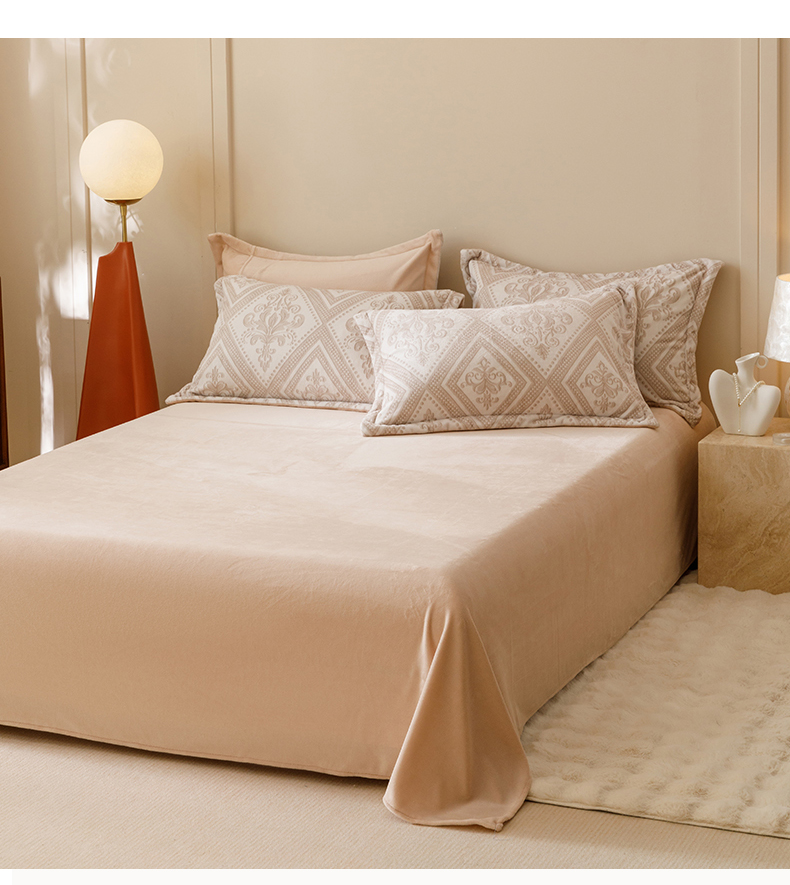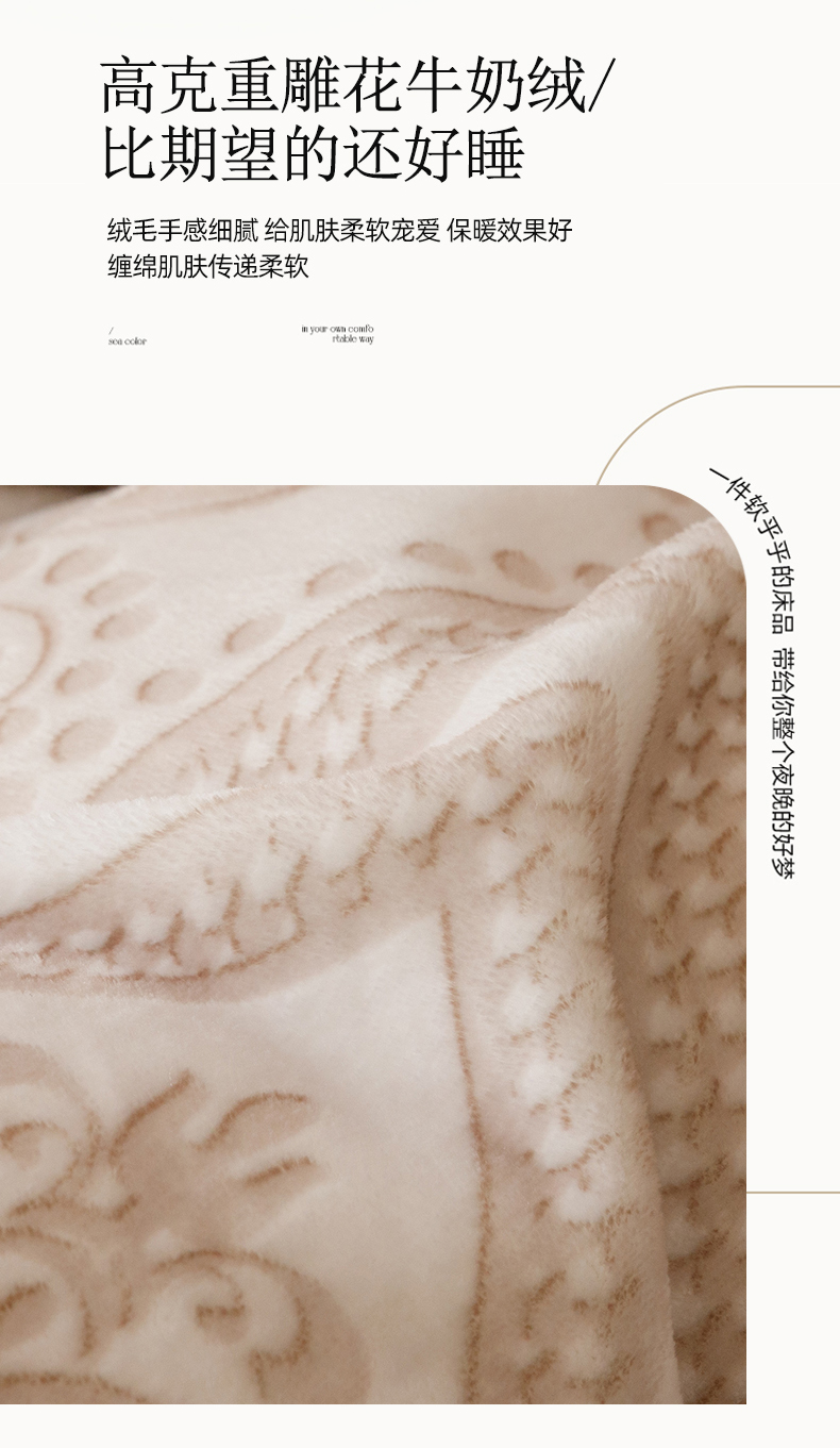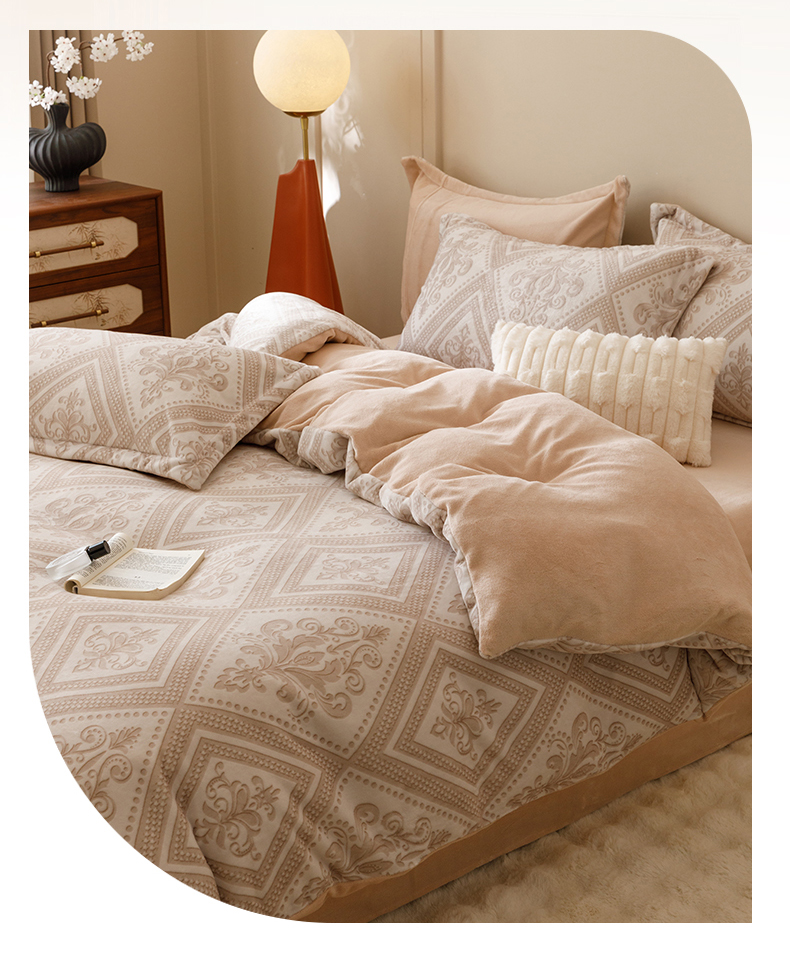 商品名称:卡派 2024新款轻奢肌理纹雕花工艺款230克加厚牛奶绒四件套(提供买家秀 ) 法式浪漫-奶咖