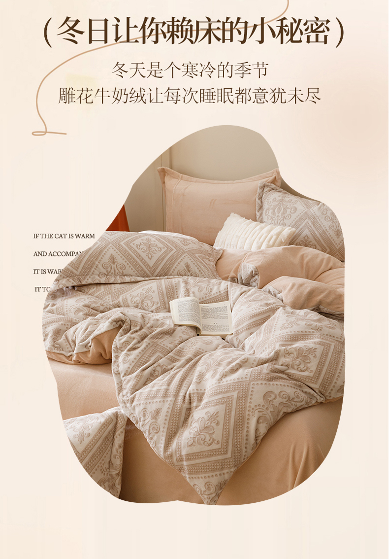 卡派 2024新款轻奢肌理纹雕花工艺款230克加厚牛奶绒四件套(提供买家秀 ) 法式浪漫-奶咖