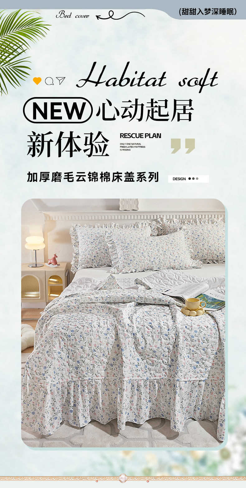 (总)十个点家纺 2024新款牛奶绒夹棉床盖三件套-唯美系列,唯美-爱尔蓝,唯美-果绿,唯美-蜜桃粉,唯美-秋桔,唯美-深灰,唯美-樱紫