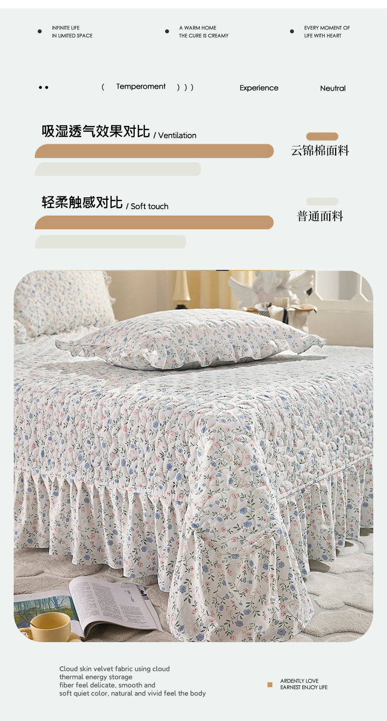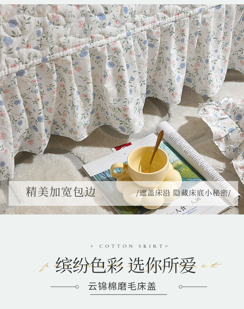 (总)十个点家纺 2025新款加厚磨毛木棉床裙三件套-绫罗系列,爱意萌萌,贝贝熊,格桑花,海棠花,蝴蝶兔,花千骨,米兰,木棉花,山茶花,同心结,心相印,心愿-米