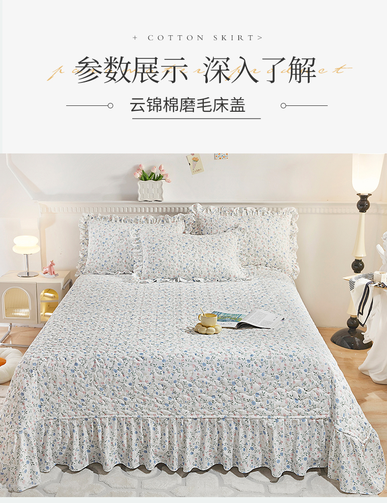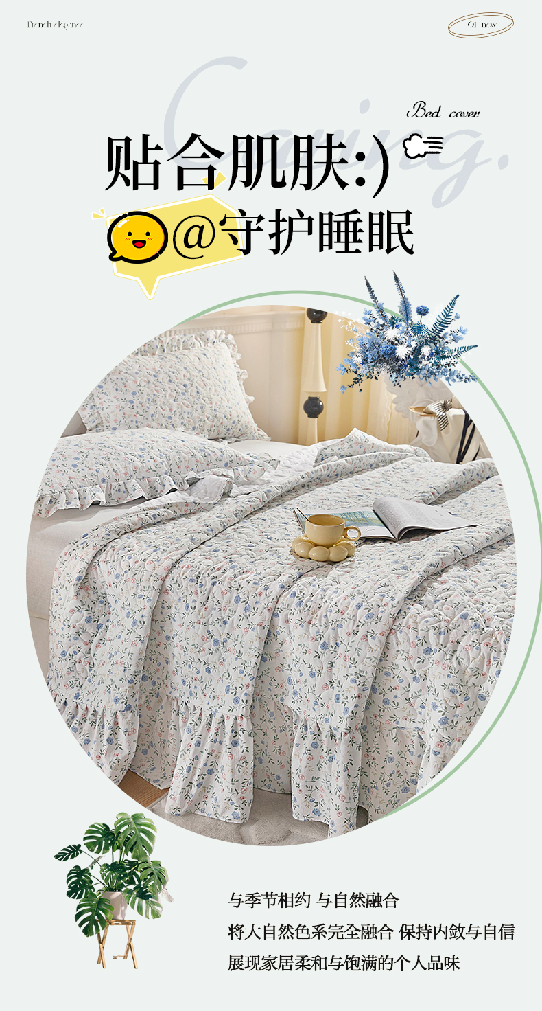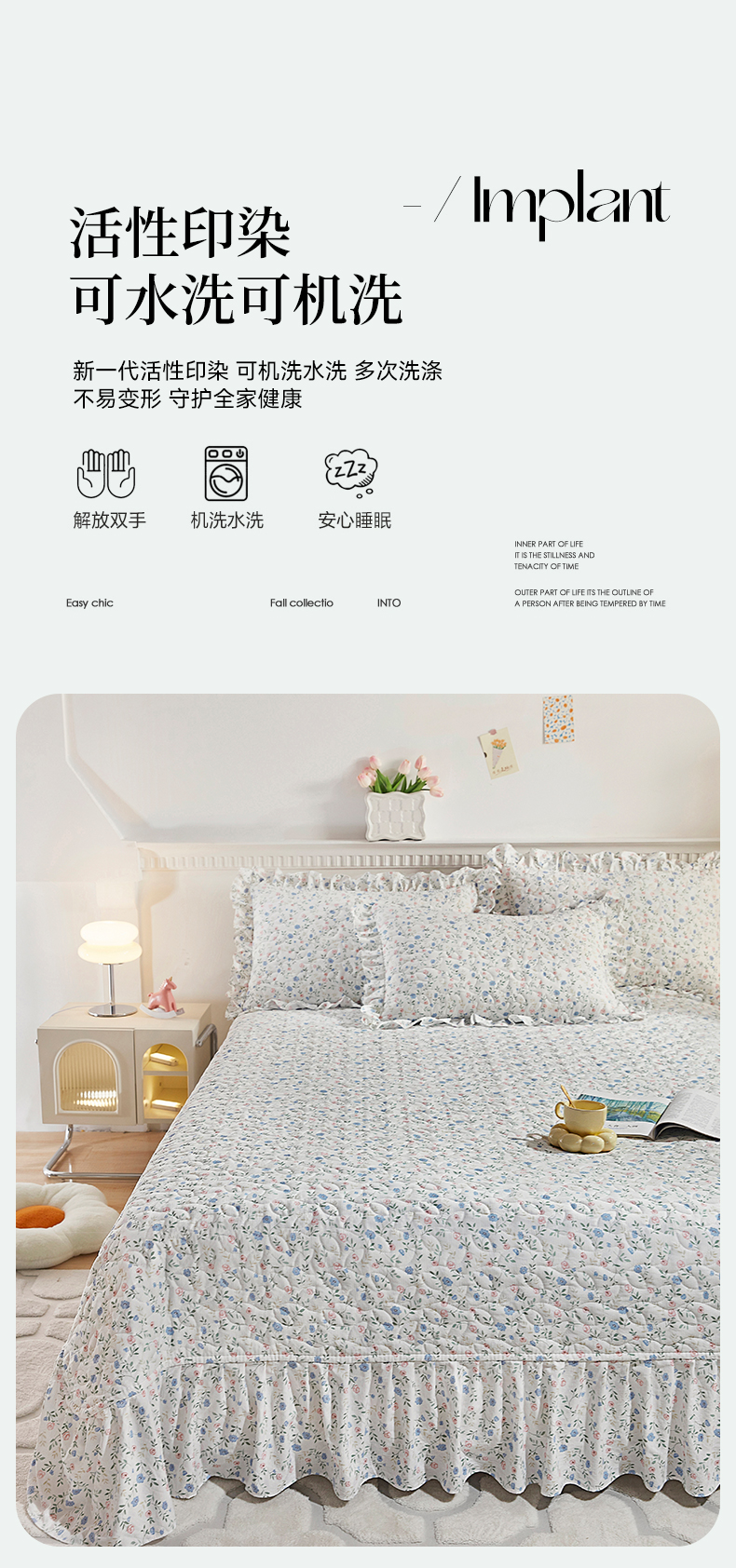 商品名称:十个点家纺 2025新款印花夹棉床盖三件套-晚秋系列 富贵小花