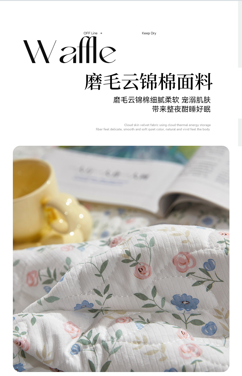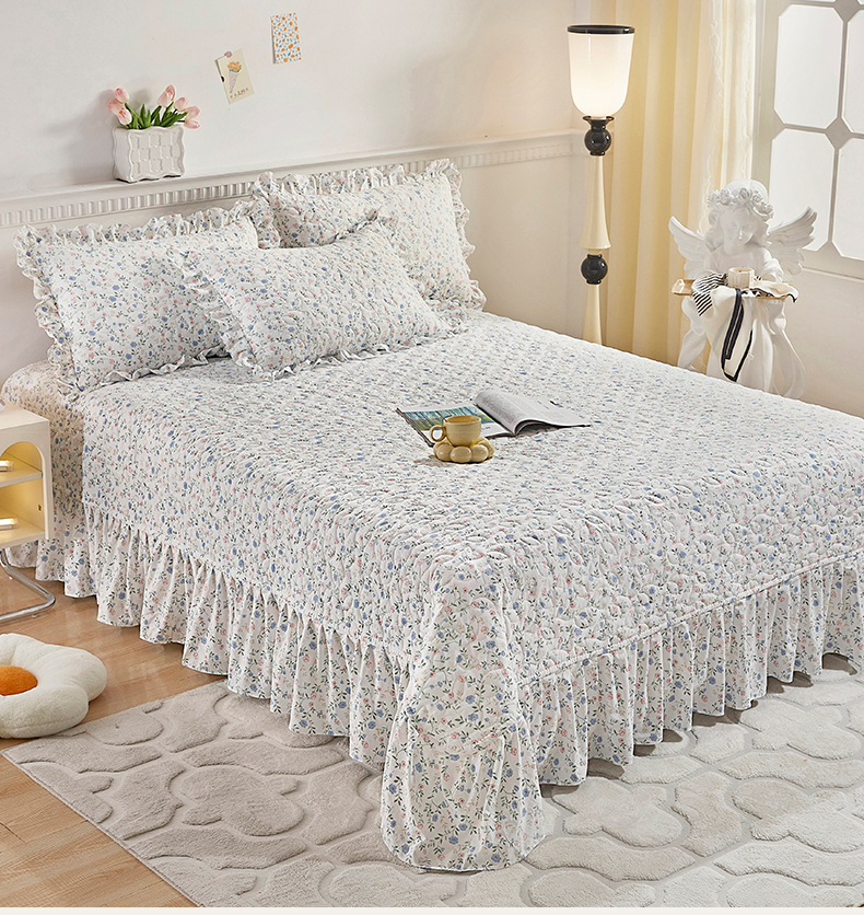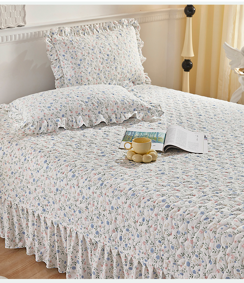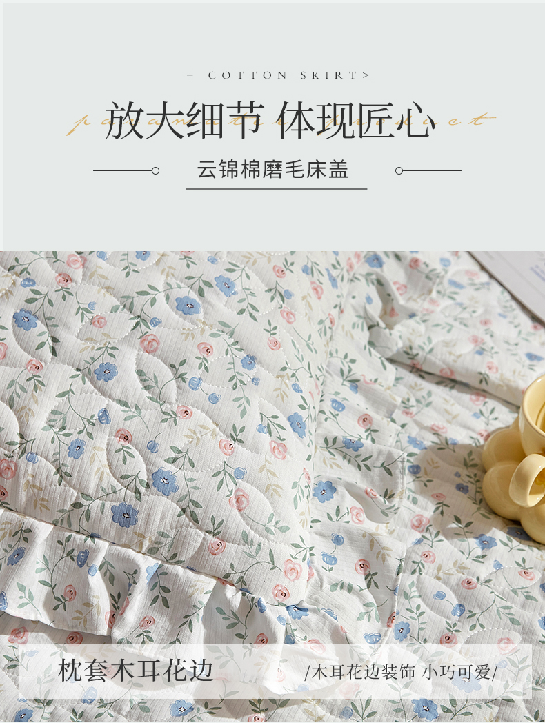 商品名称:十个点家纺 2025新款印花夹棉床盖三件套-晚秋系列 富贵小花