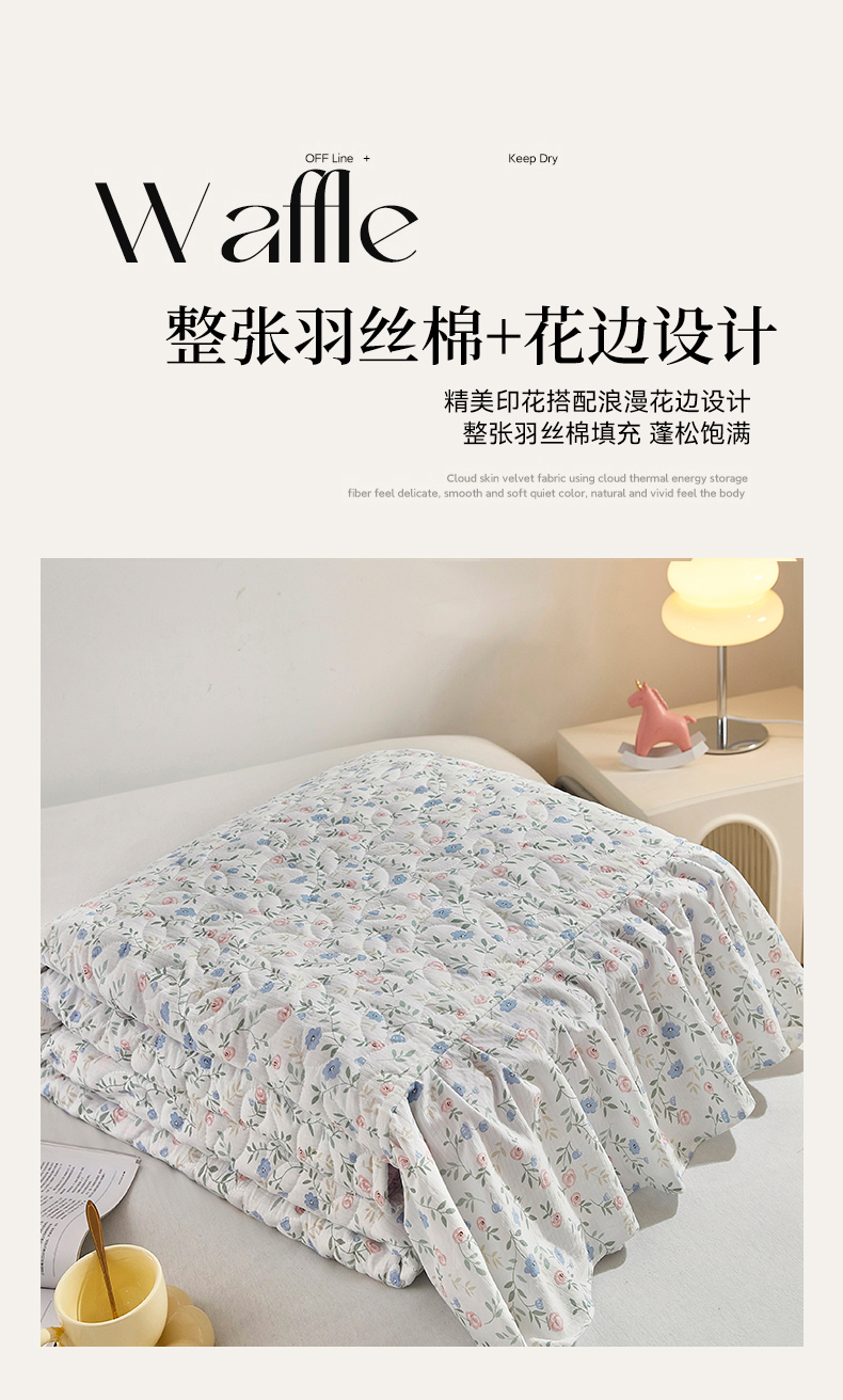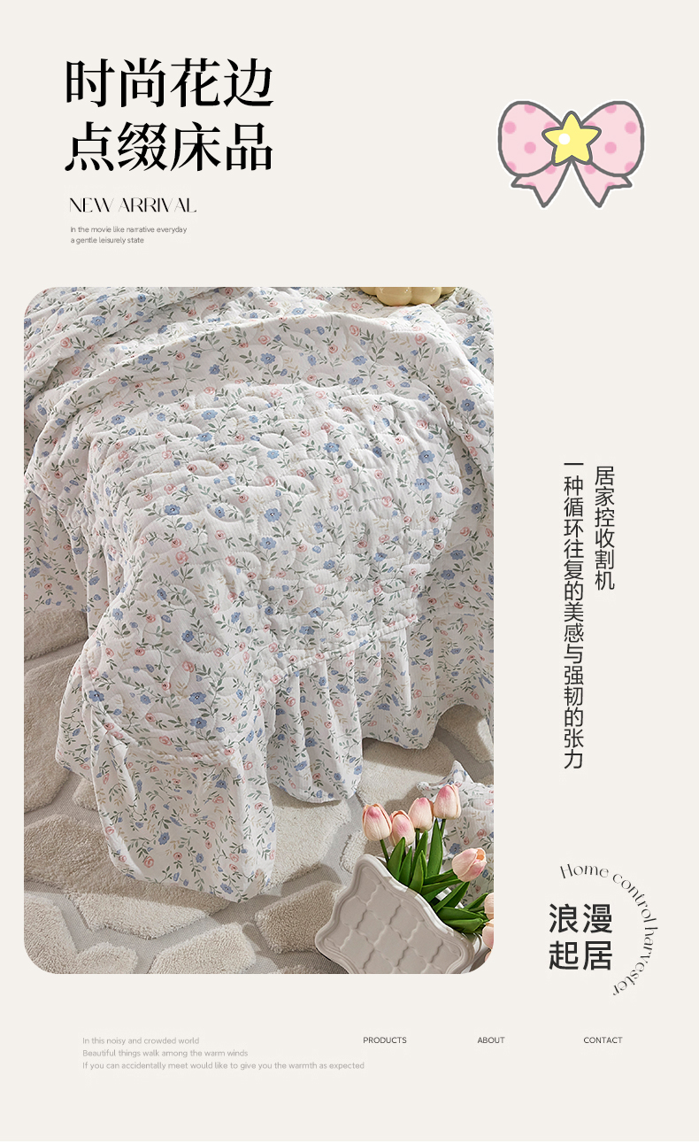 十个点家纺 2025新款印花夹棉床盖三件套-晚秋系列 富贵小花
