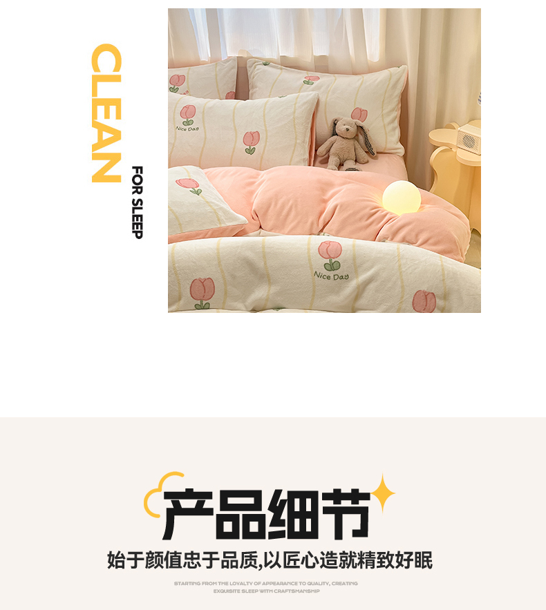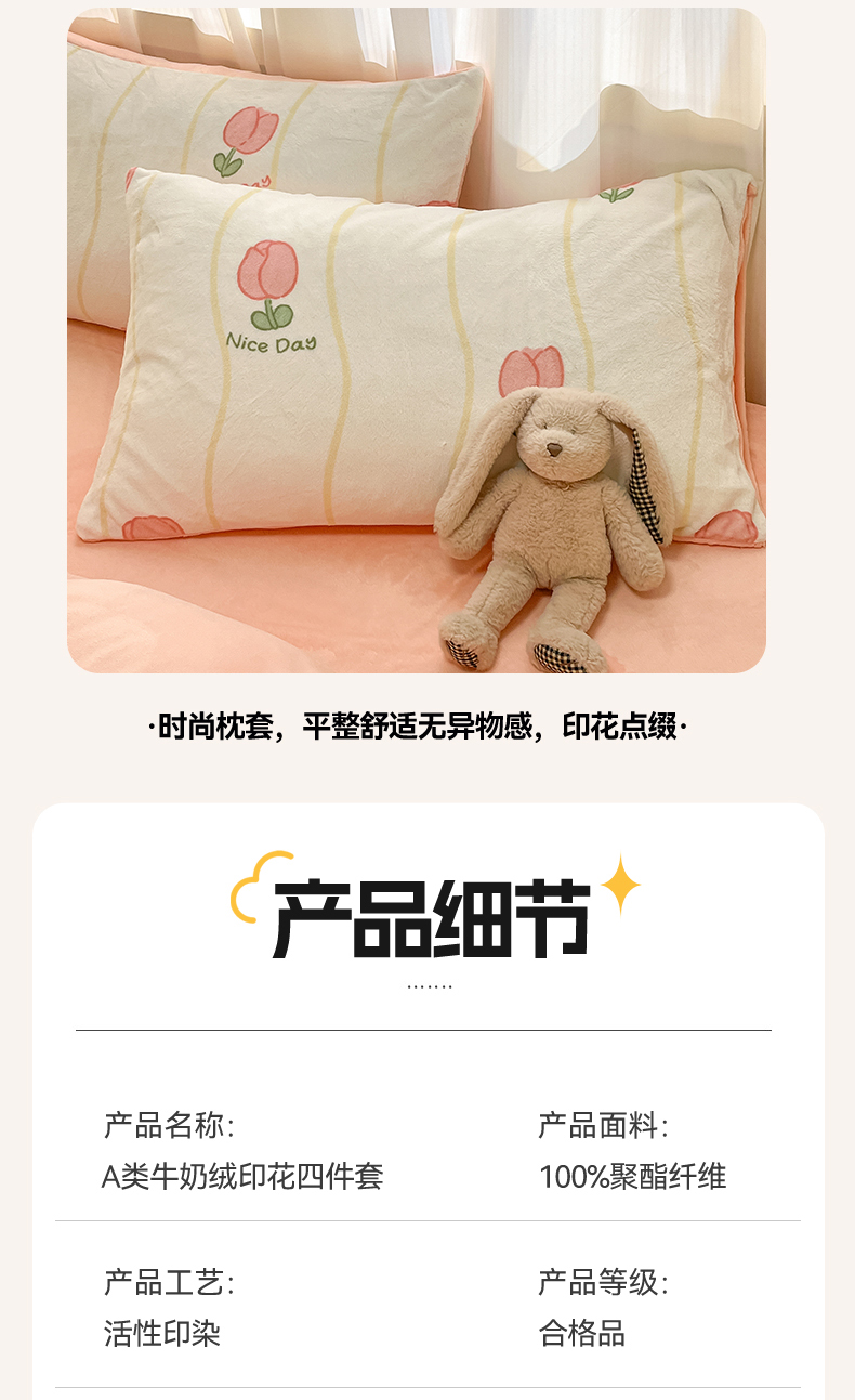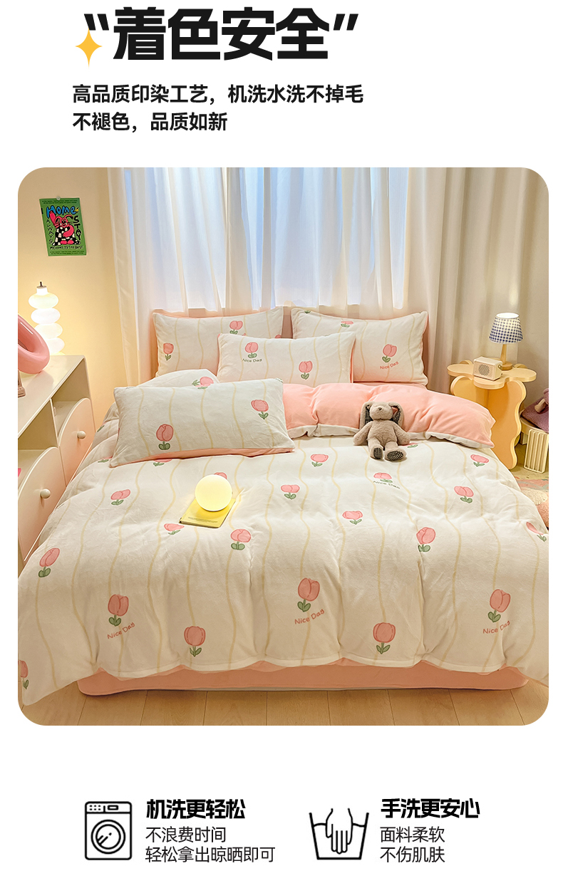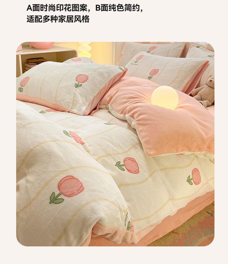 商品名称:本制 2025新款B类牛奶绒印花四件套 恬淡-粉