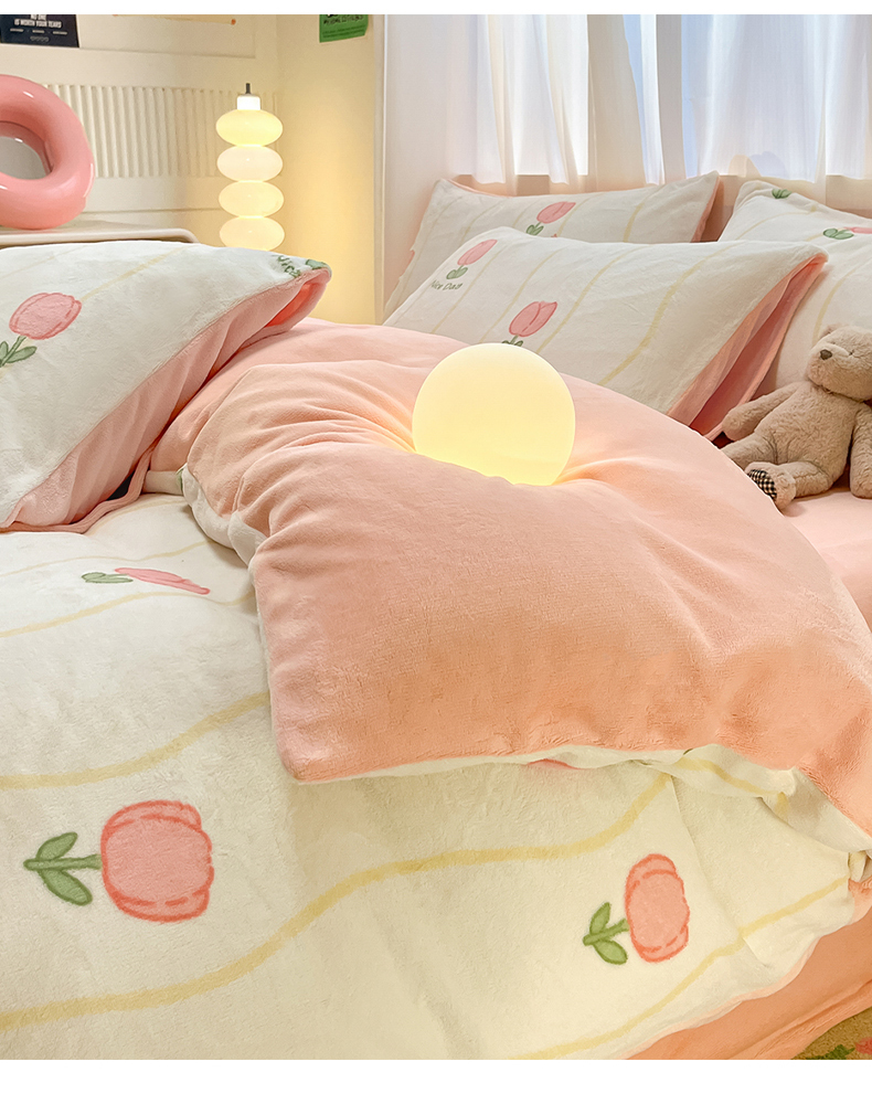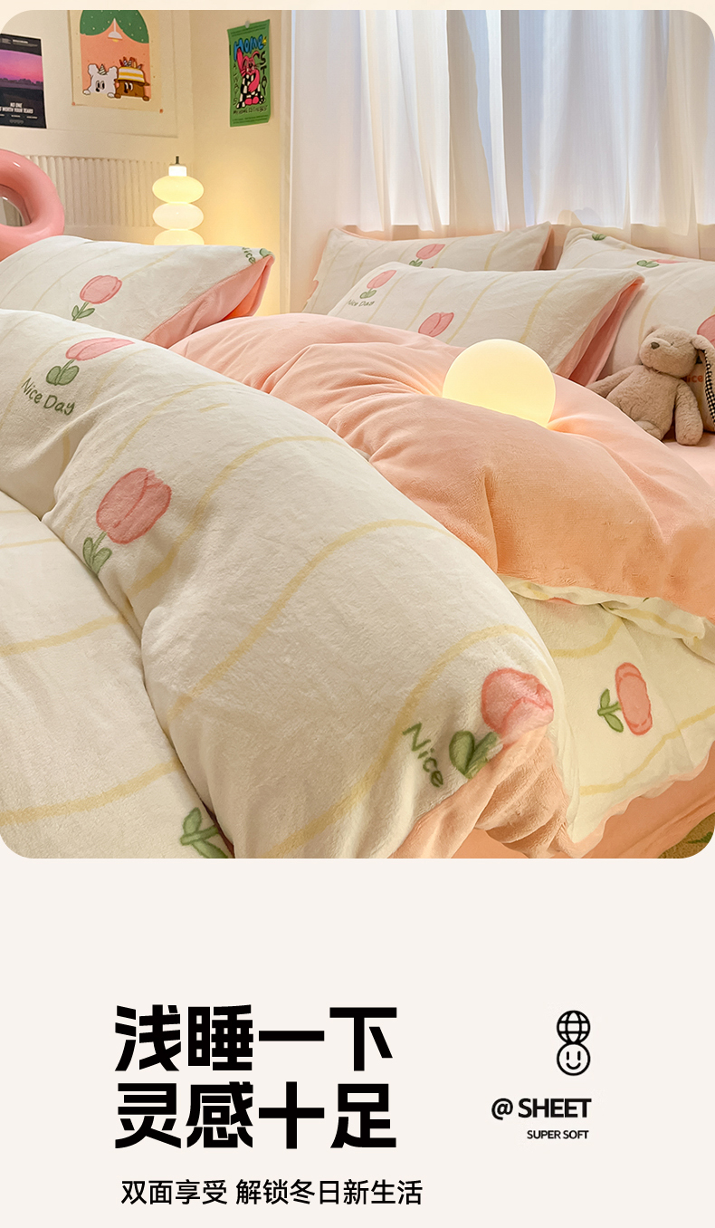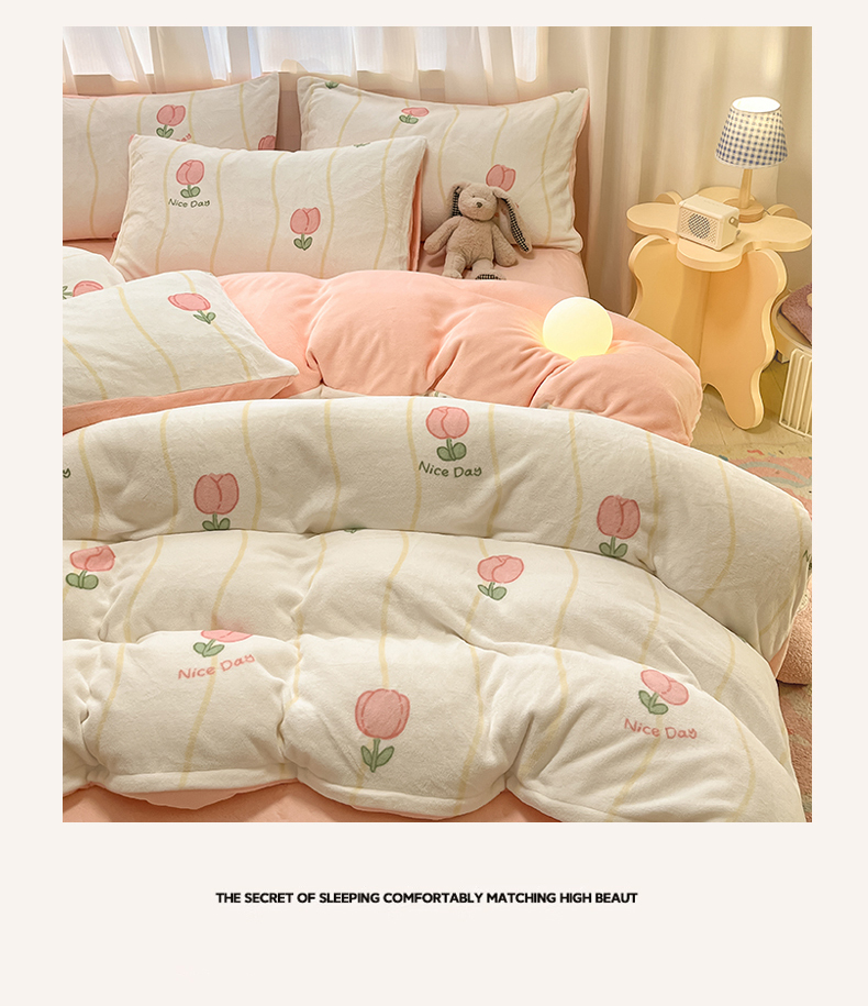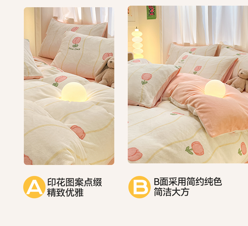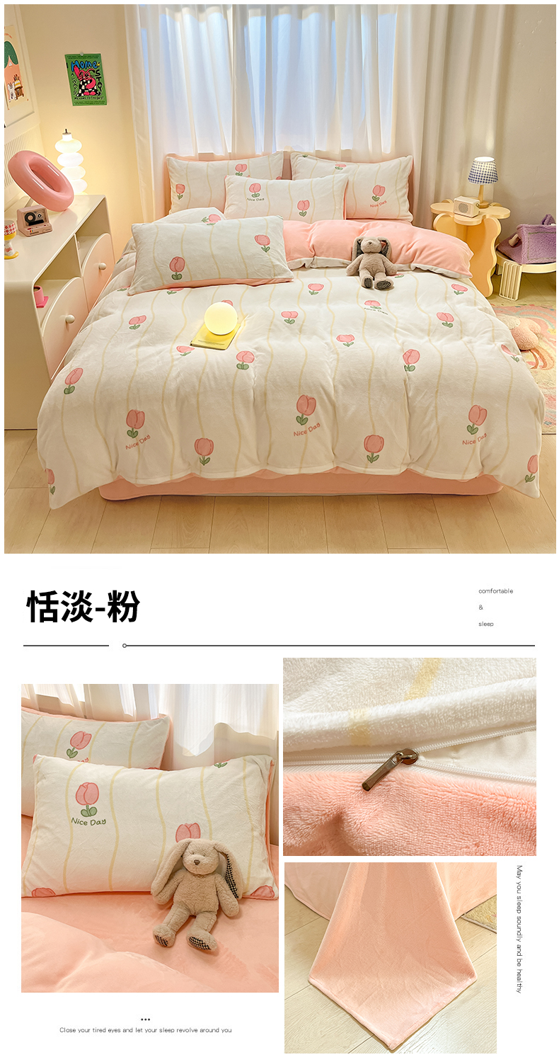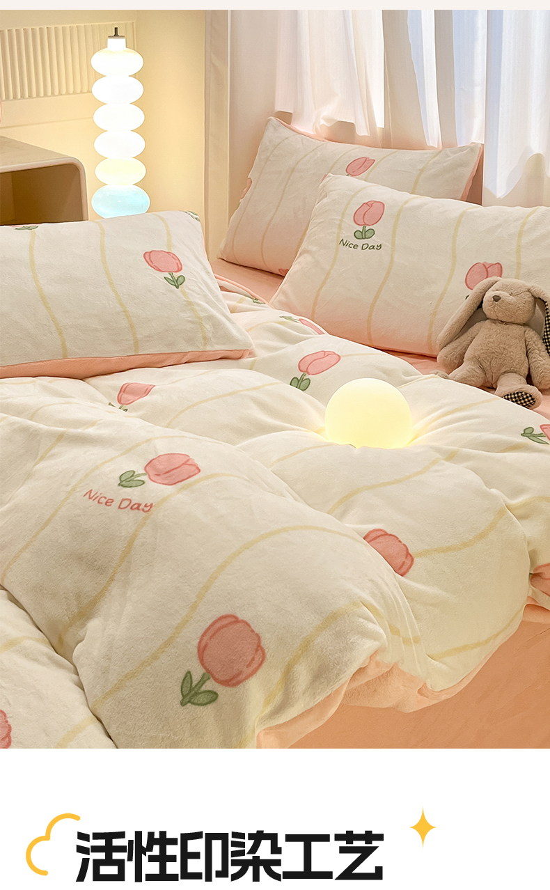 本制 2025新款B类牛奶绒印花四件套 恬淡-粉