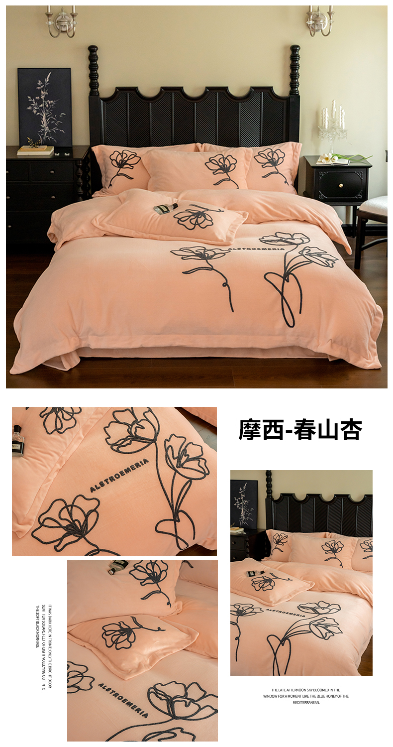 (总)名品优仓 2025新款220克牛奶绒绣花四件套-珊瑚,珊瑚-宝石蓝,珊瑚-粉色,珊瑚-姜黄,珊瑚-米杏,珊瑚-沫粉,珊瑚-杏粉