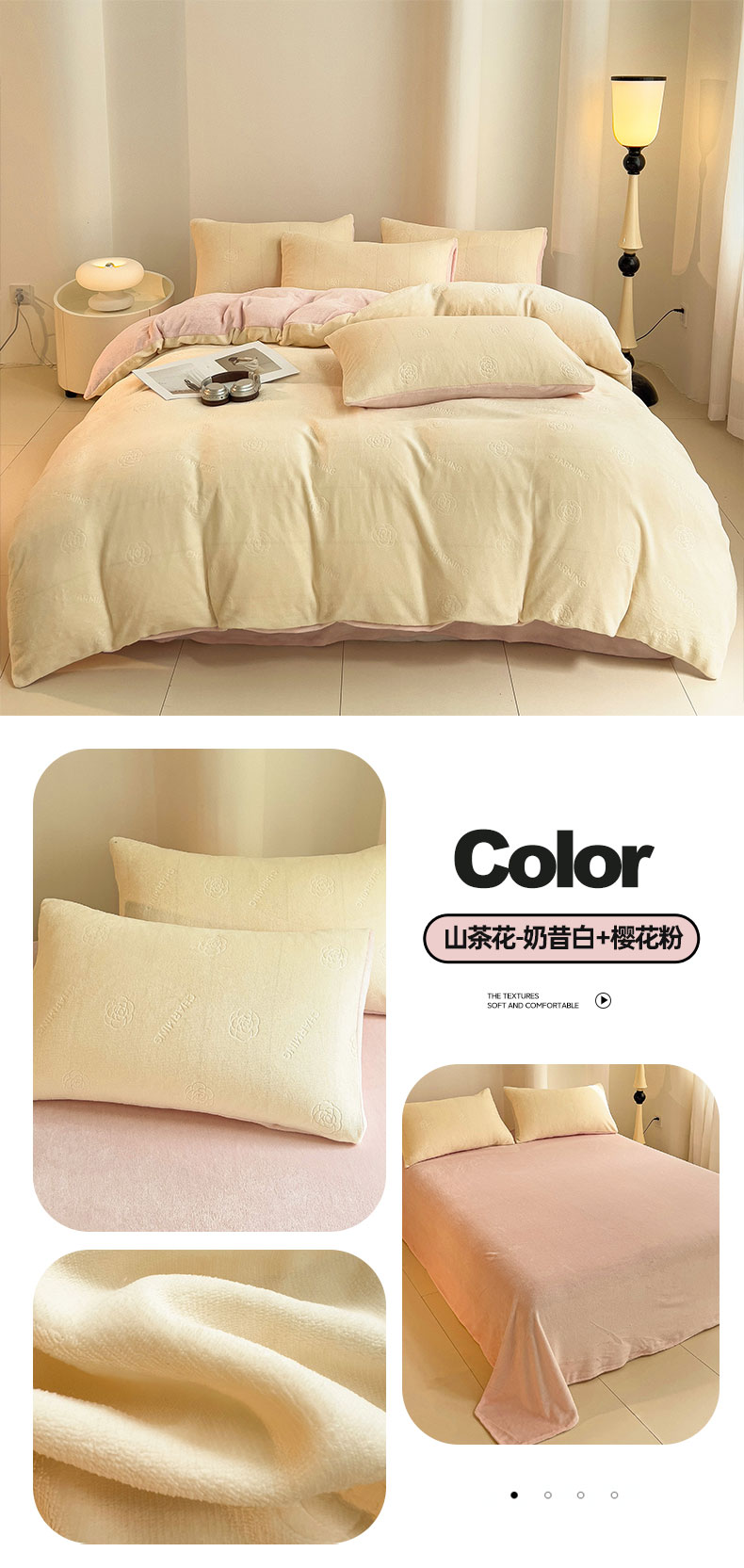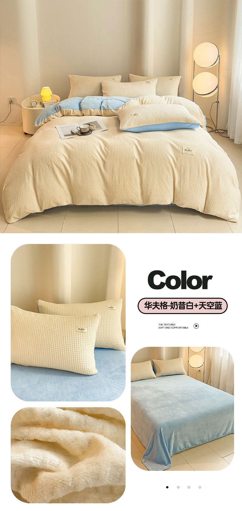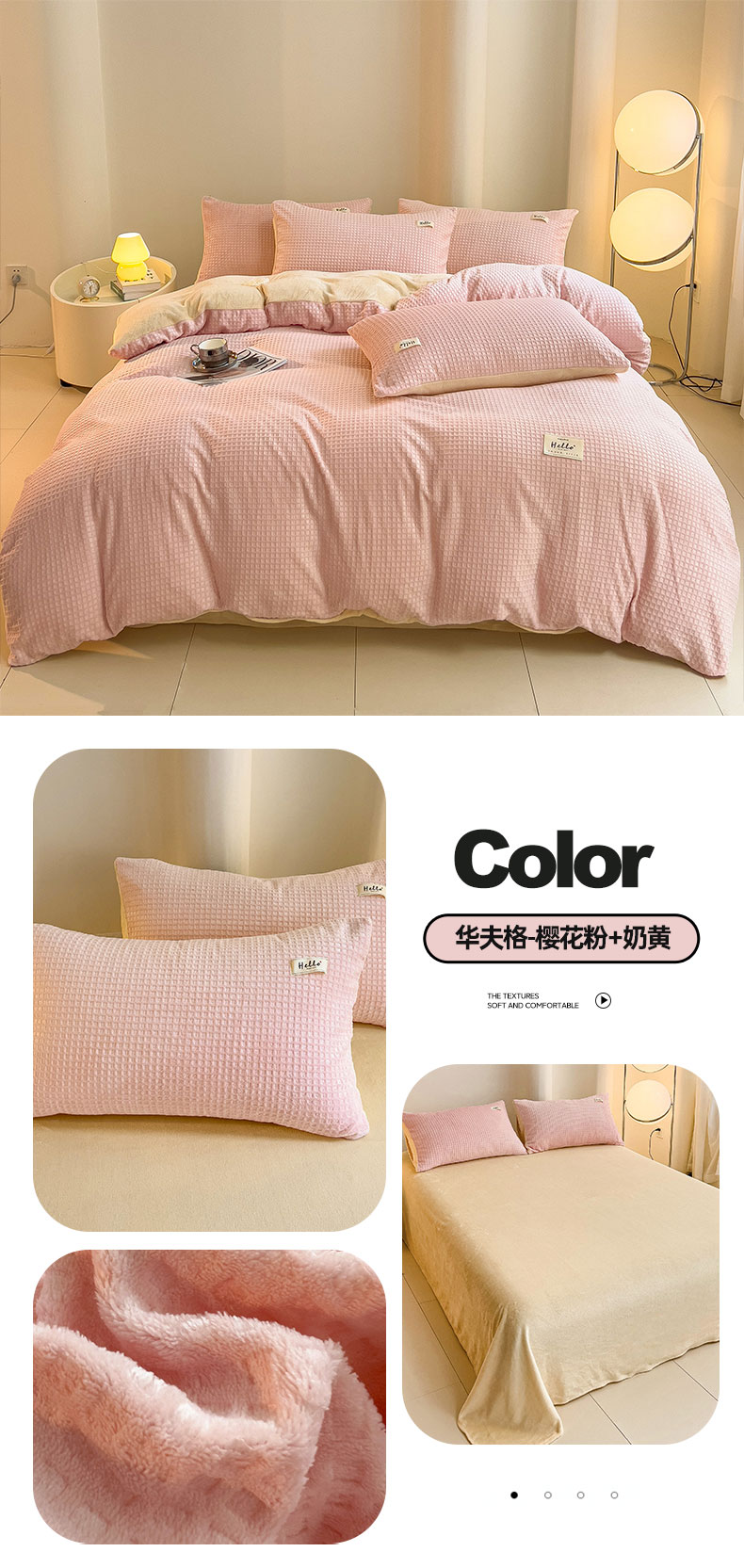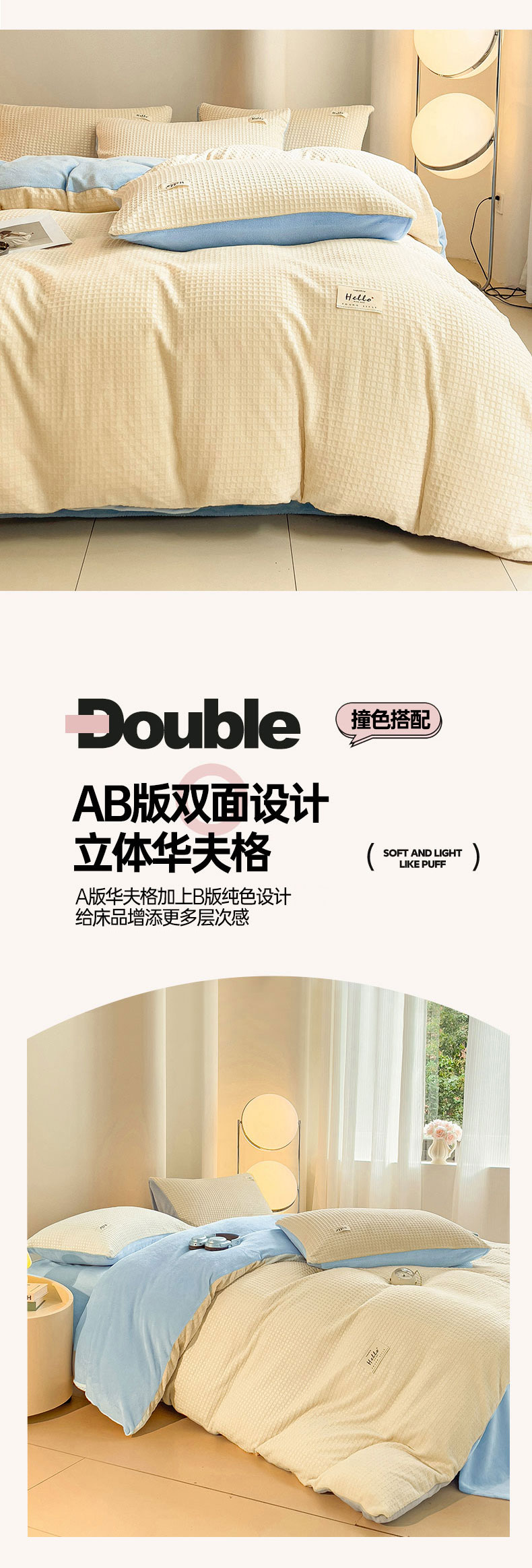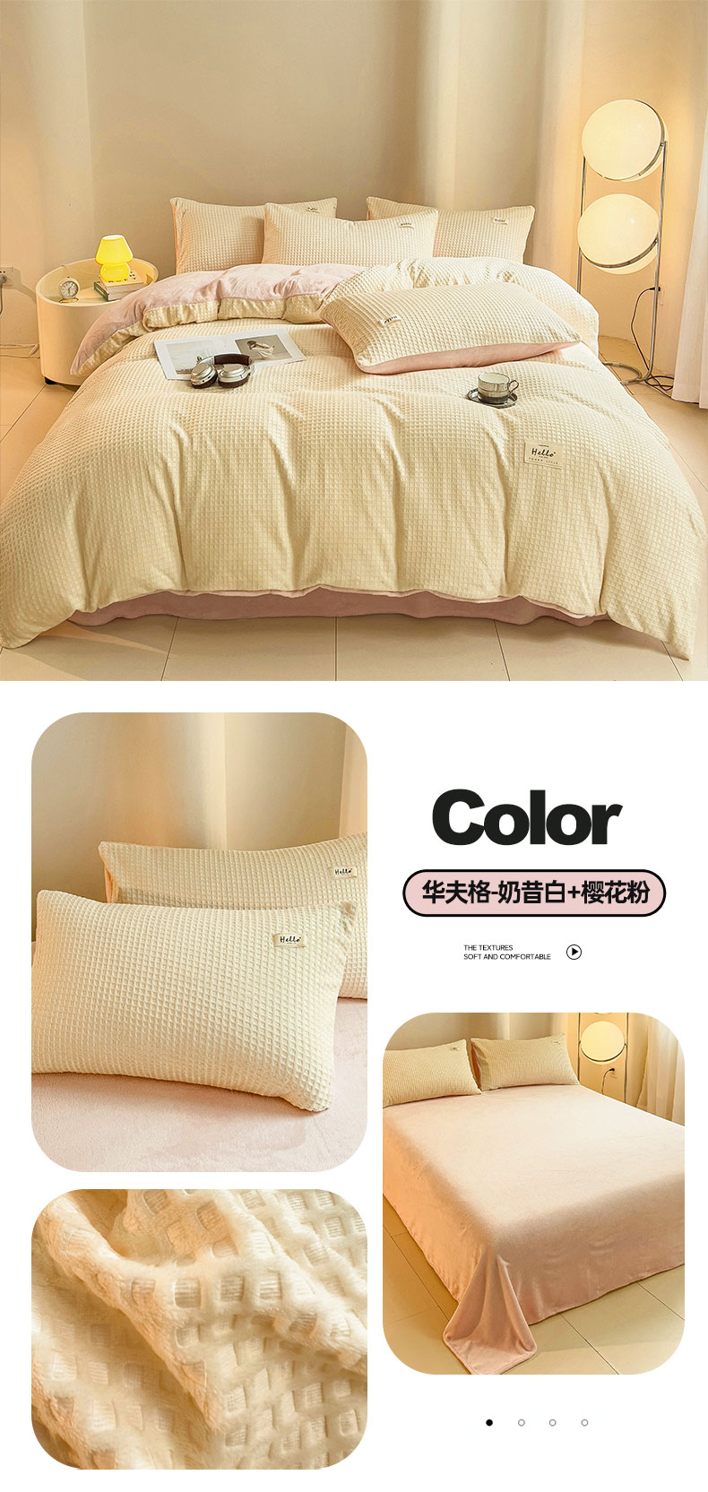 (总)2025新款A类高克重牛奶绒华夫格山茶花四件套