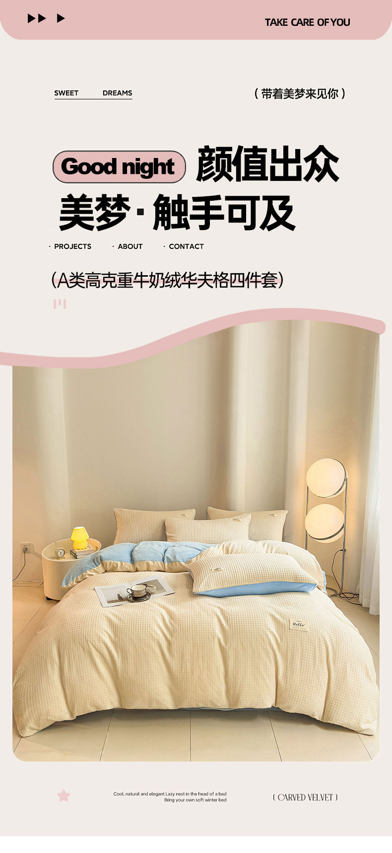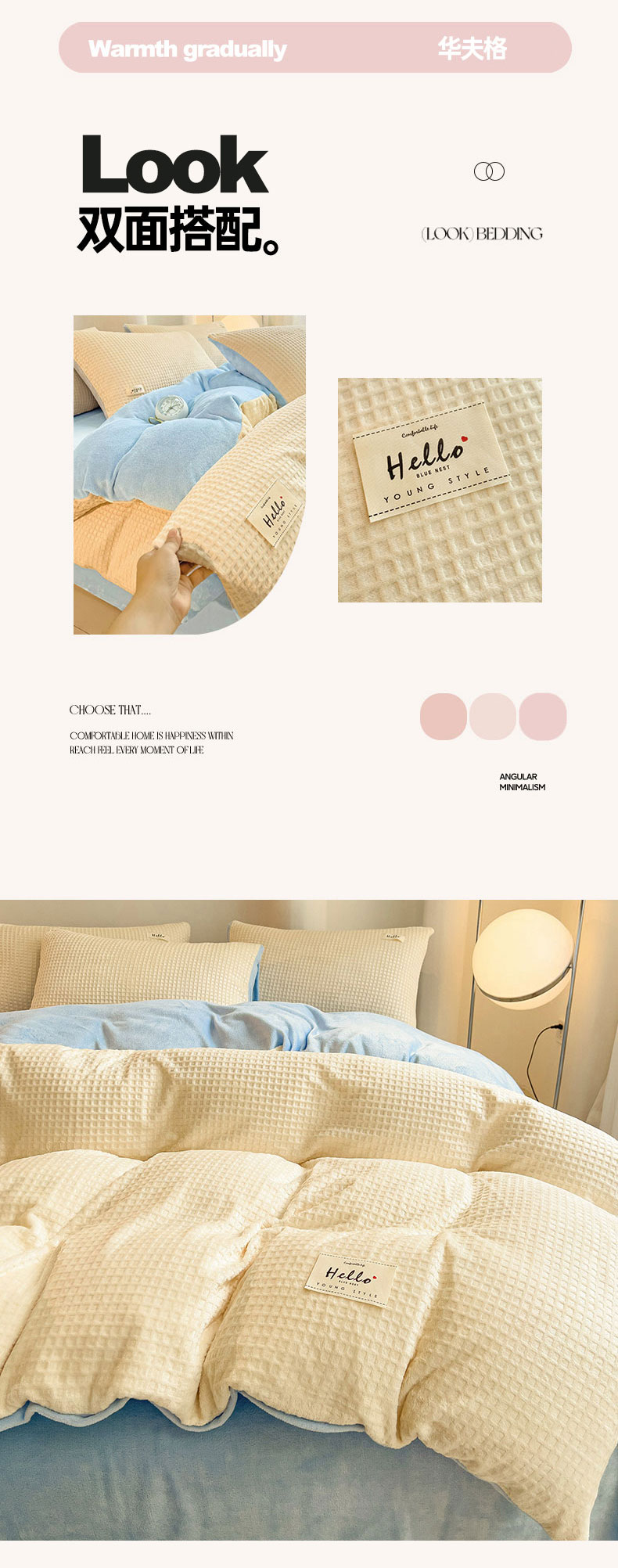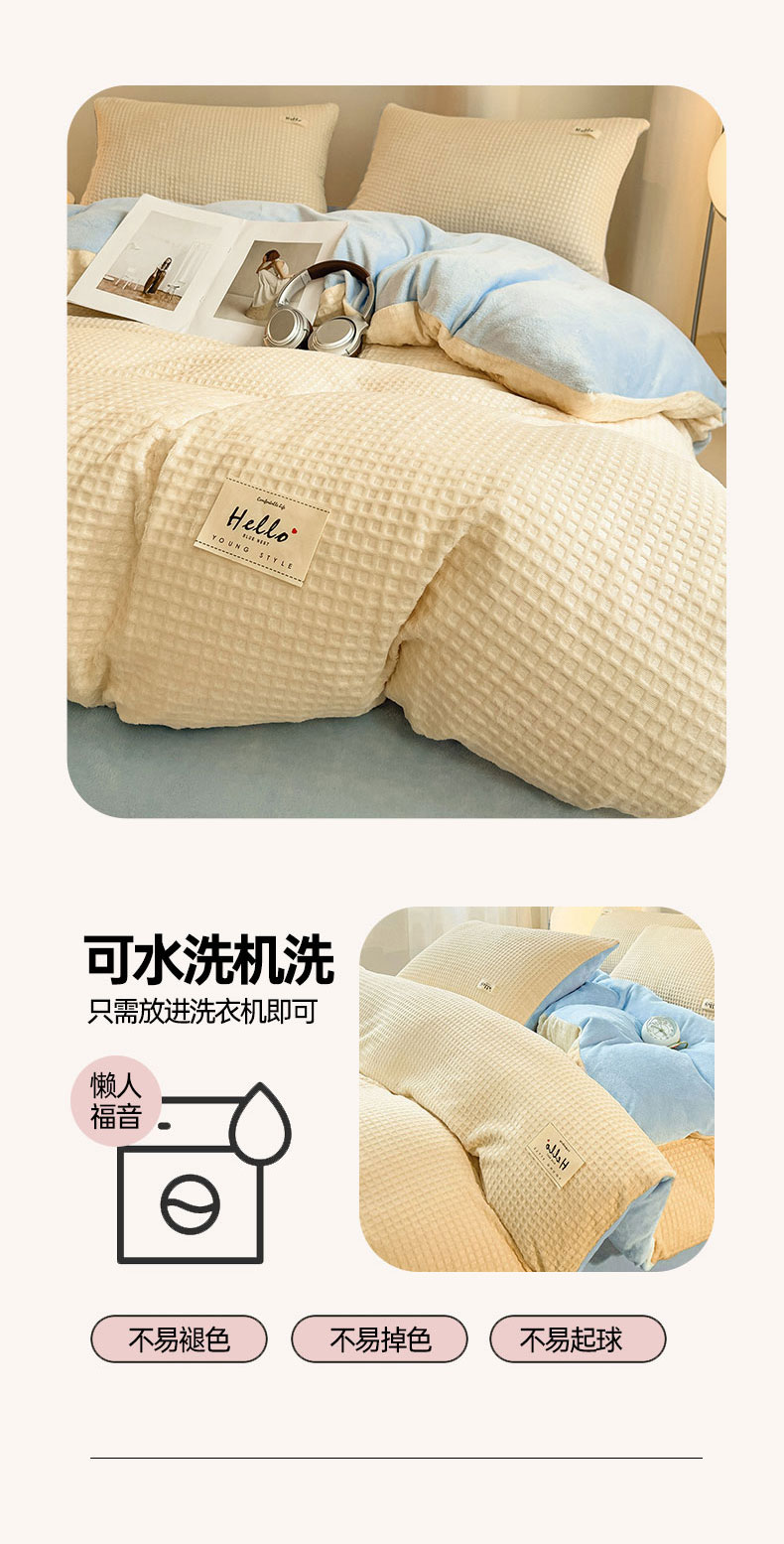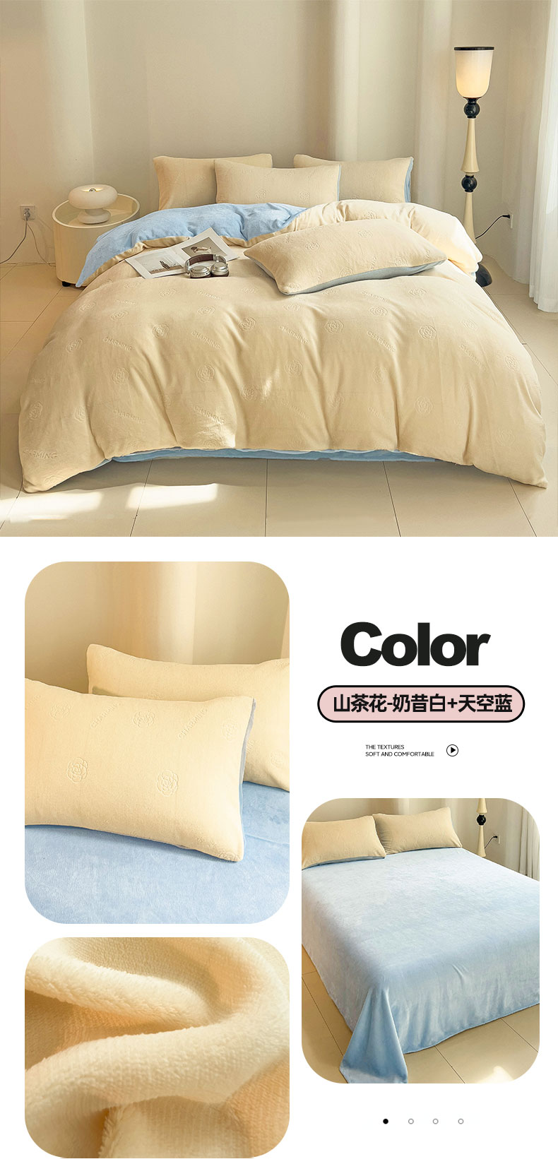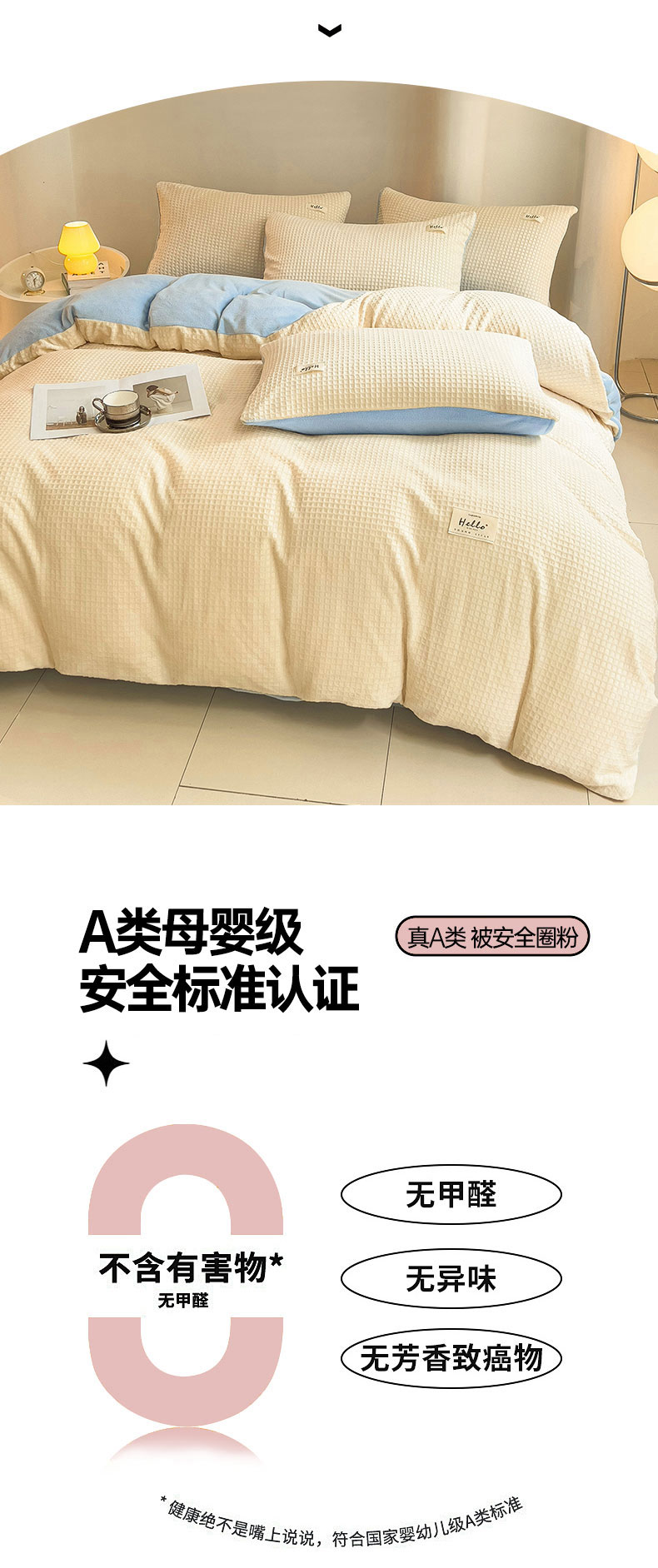(总)2025新款A类高克重牛奶绒华夫格山茶花四件套