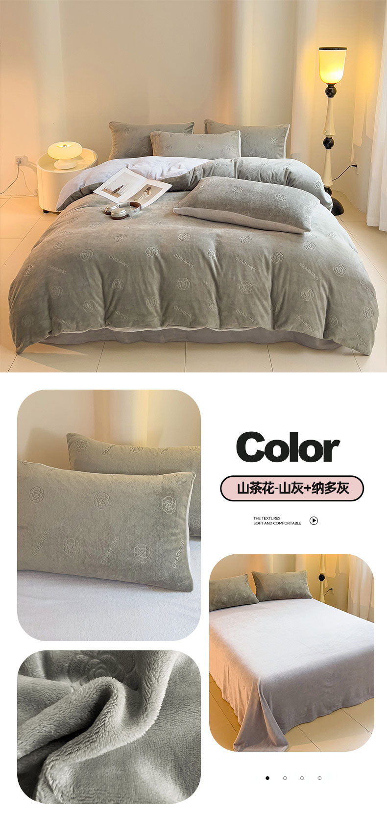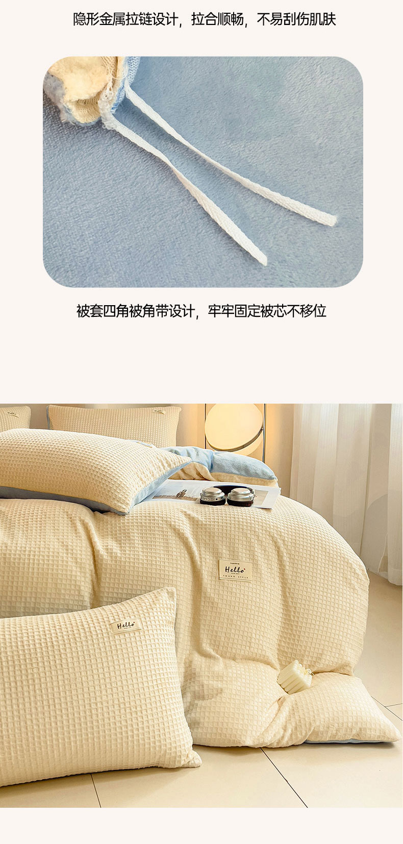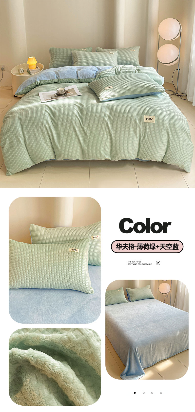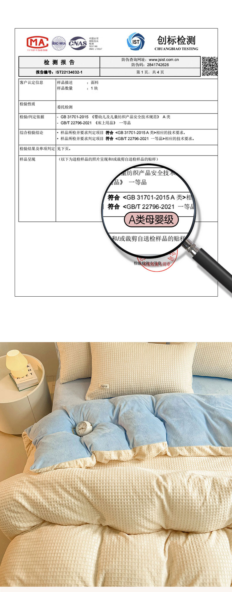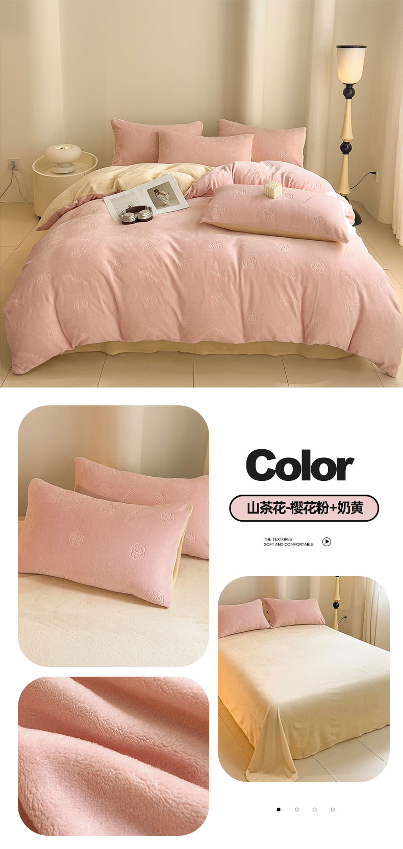 (总)2025新款A类高克重牛奶绒华夫格山茶花四件套
