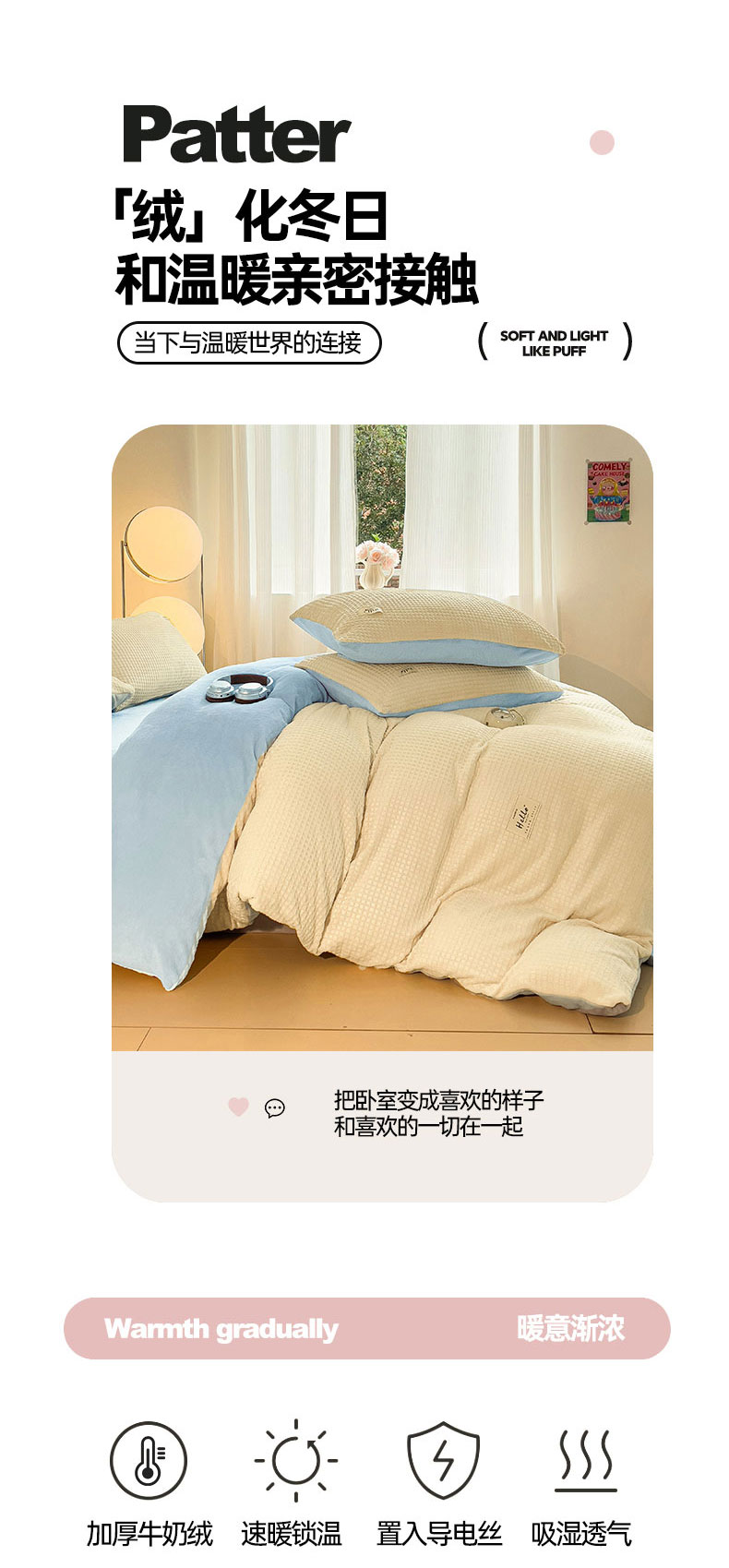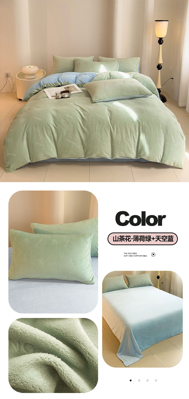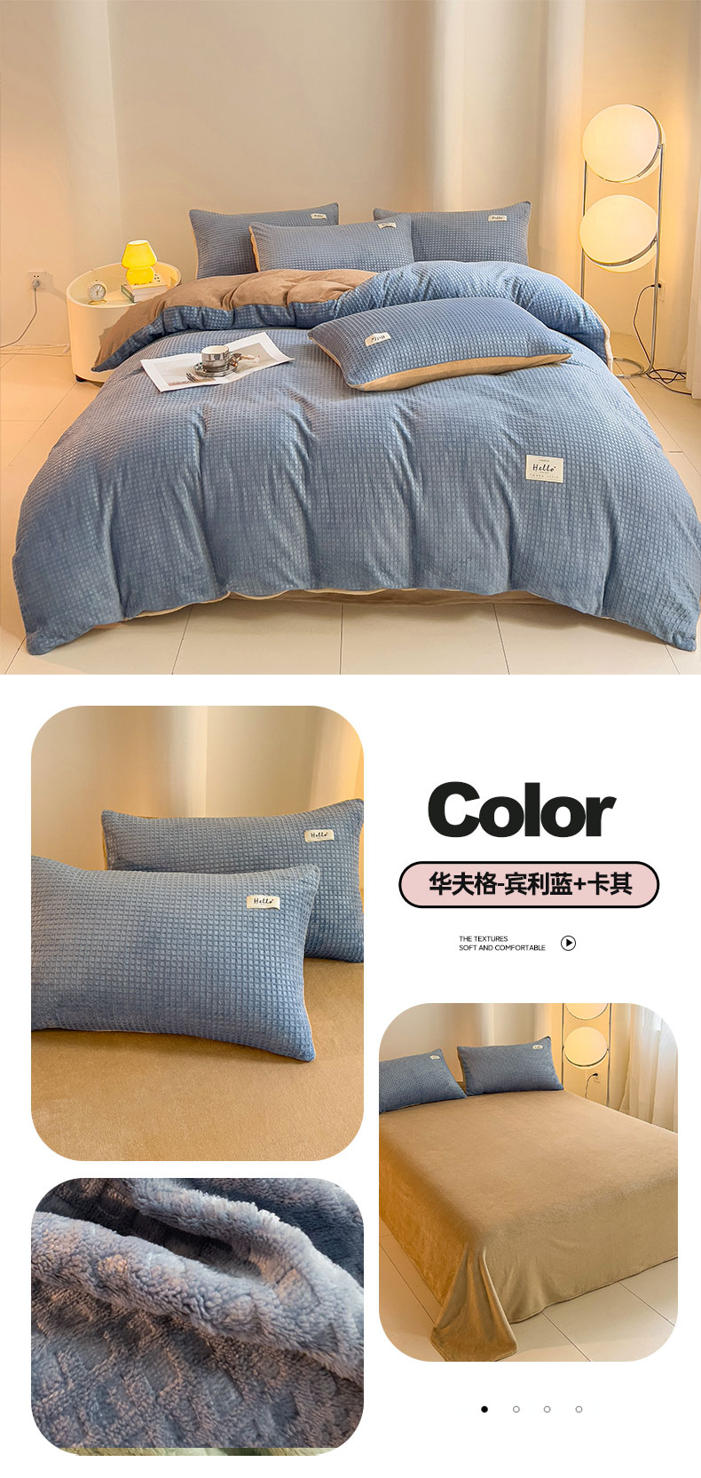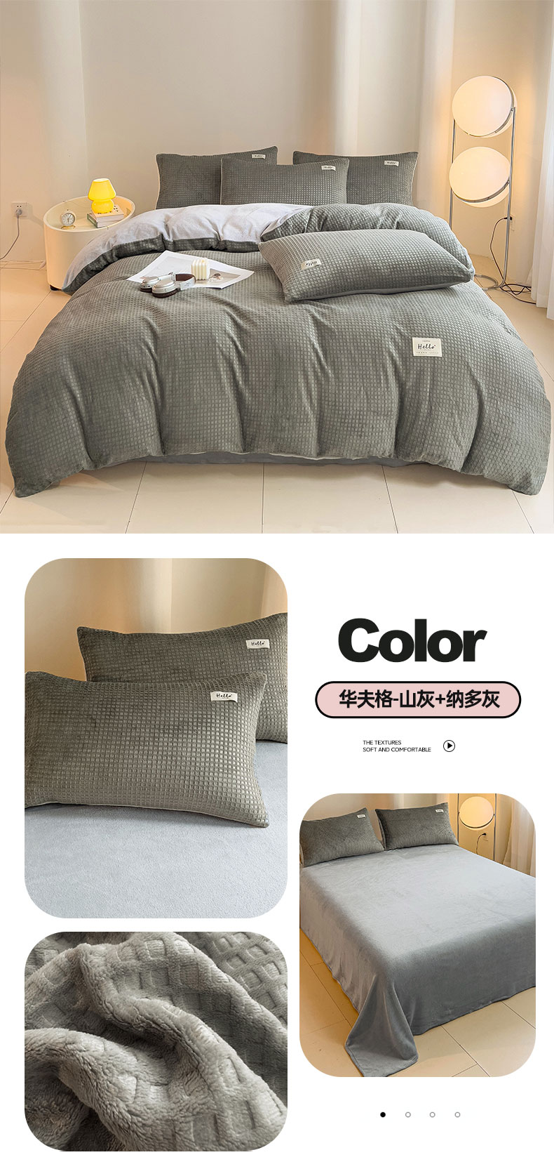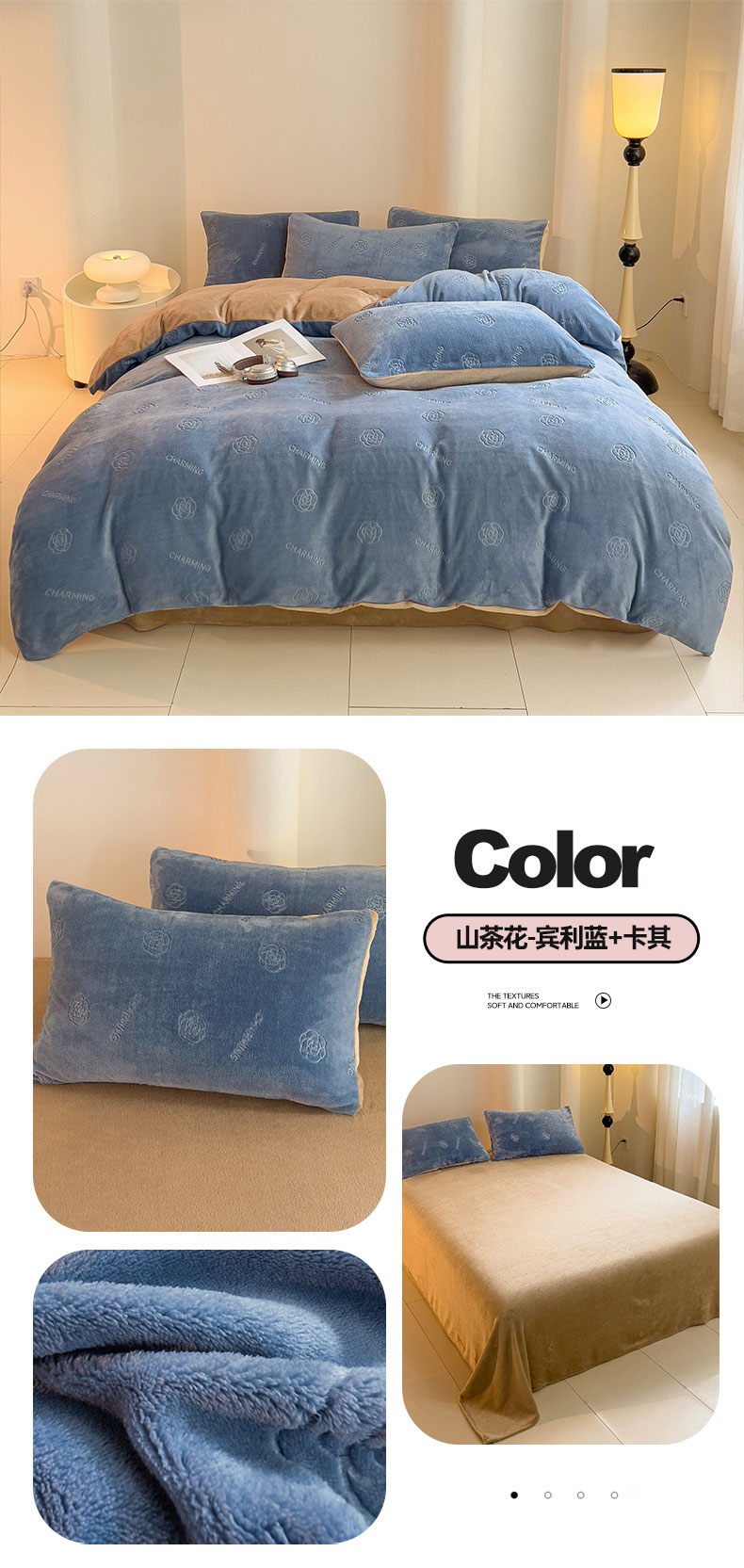 (总)2025新款A类高克重牛奶绒华夫格山茶花四件套