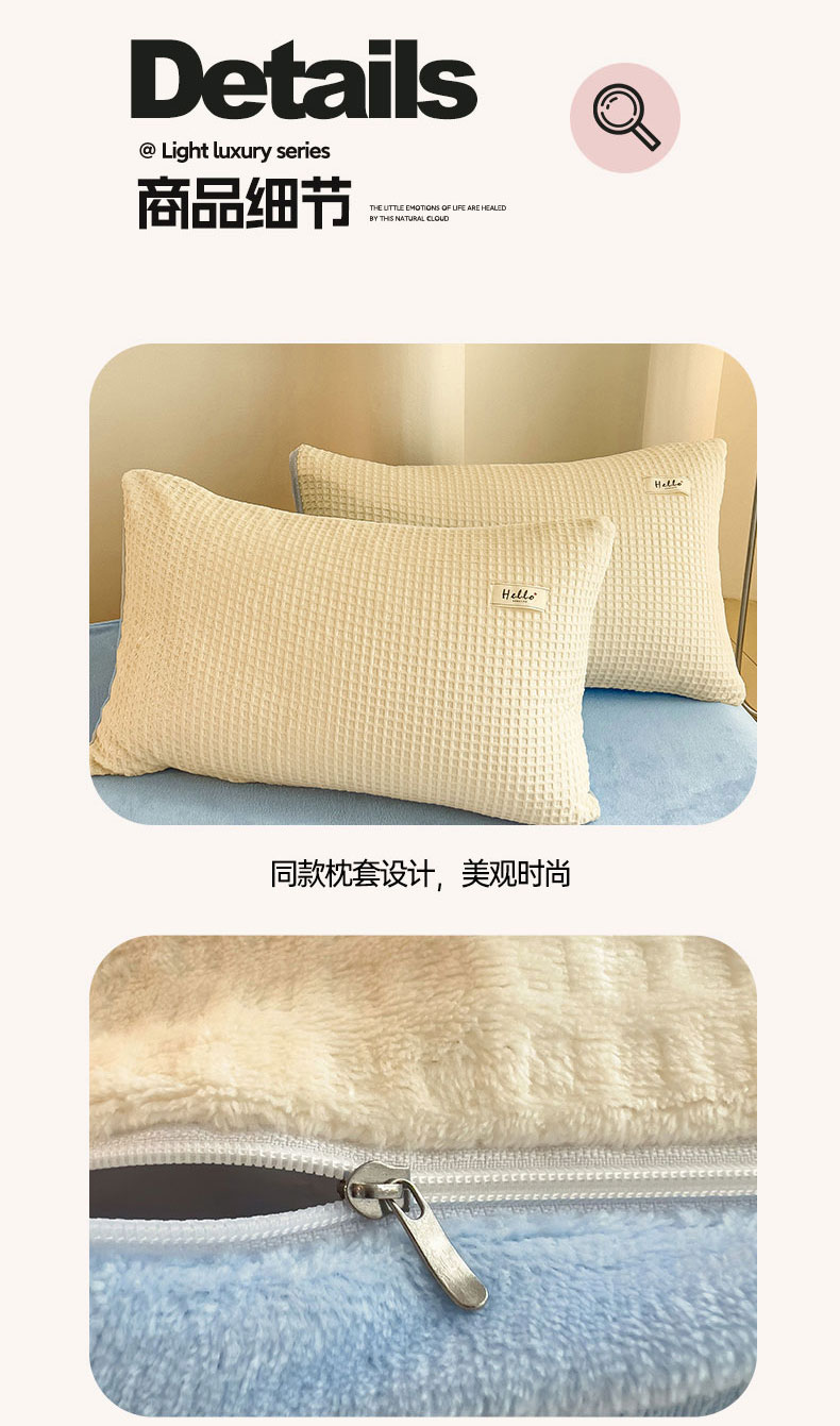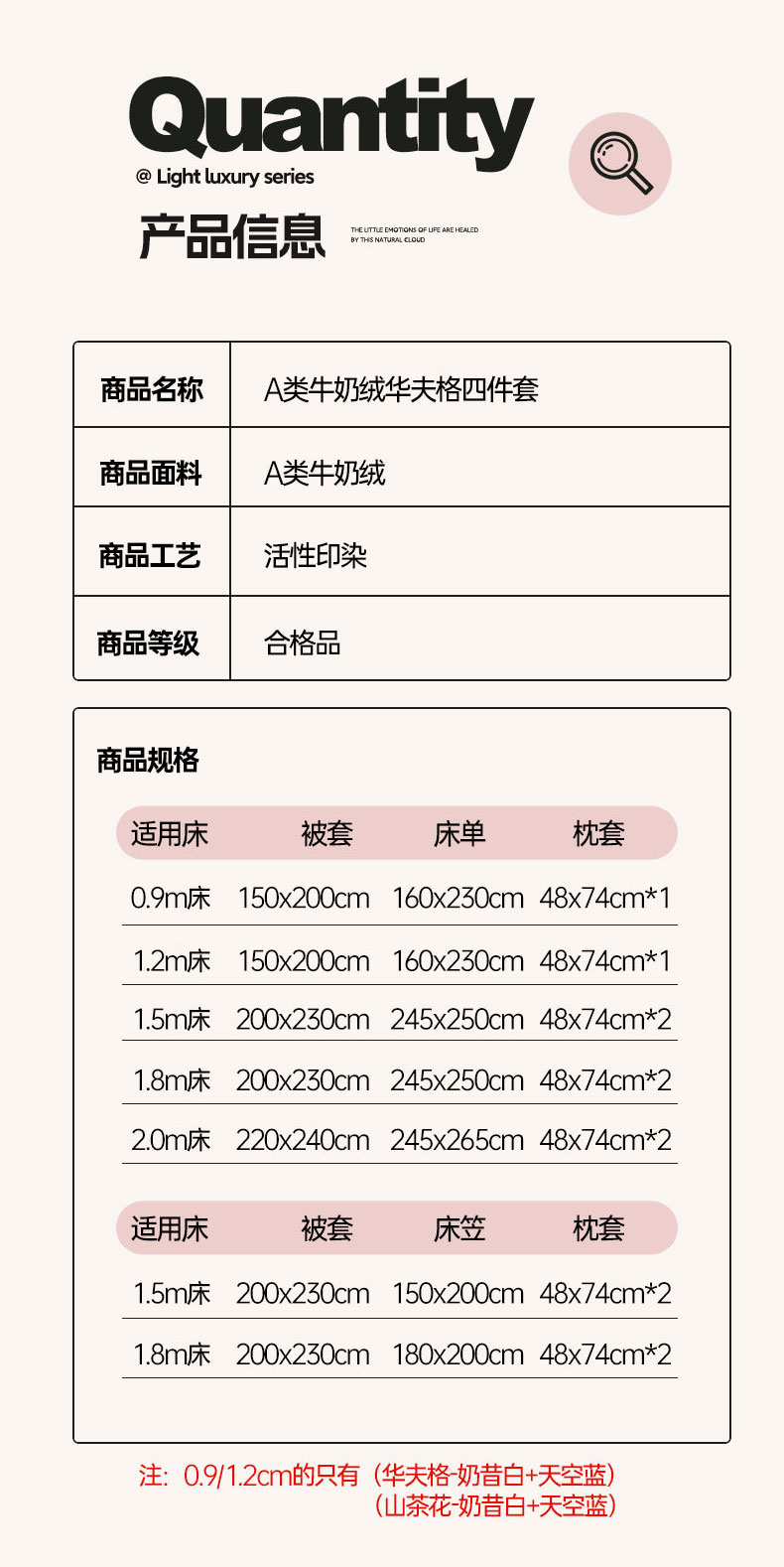 商品名称:(总)2025新款A类高克重牛奶绒华夫格山茶花四件套