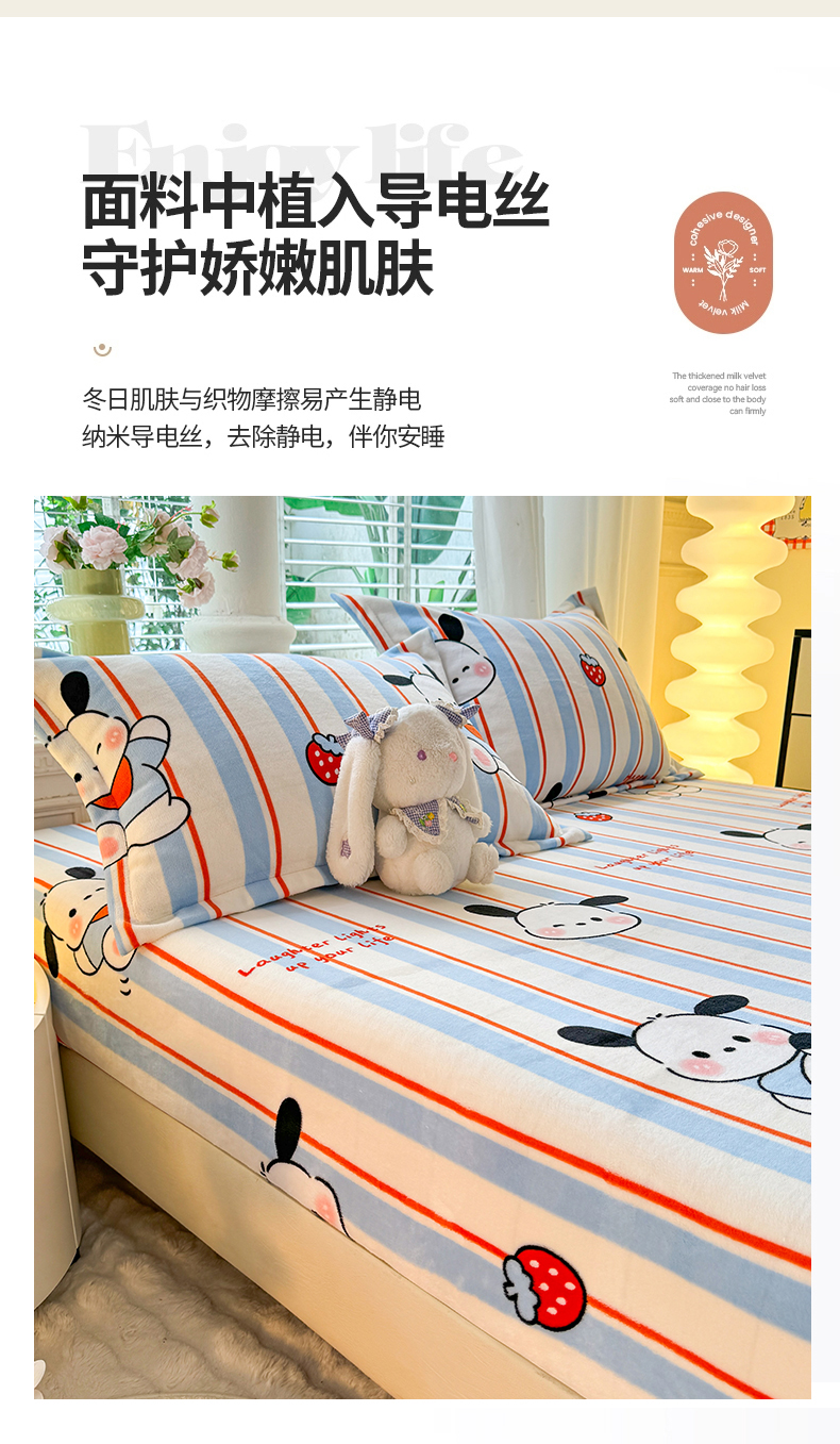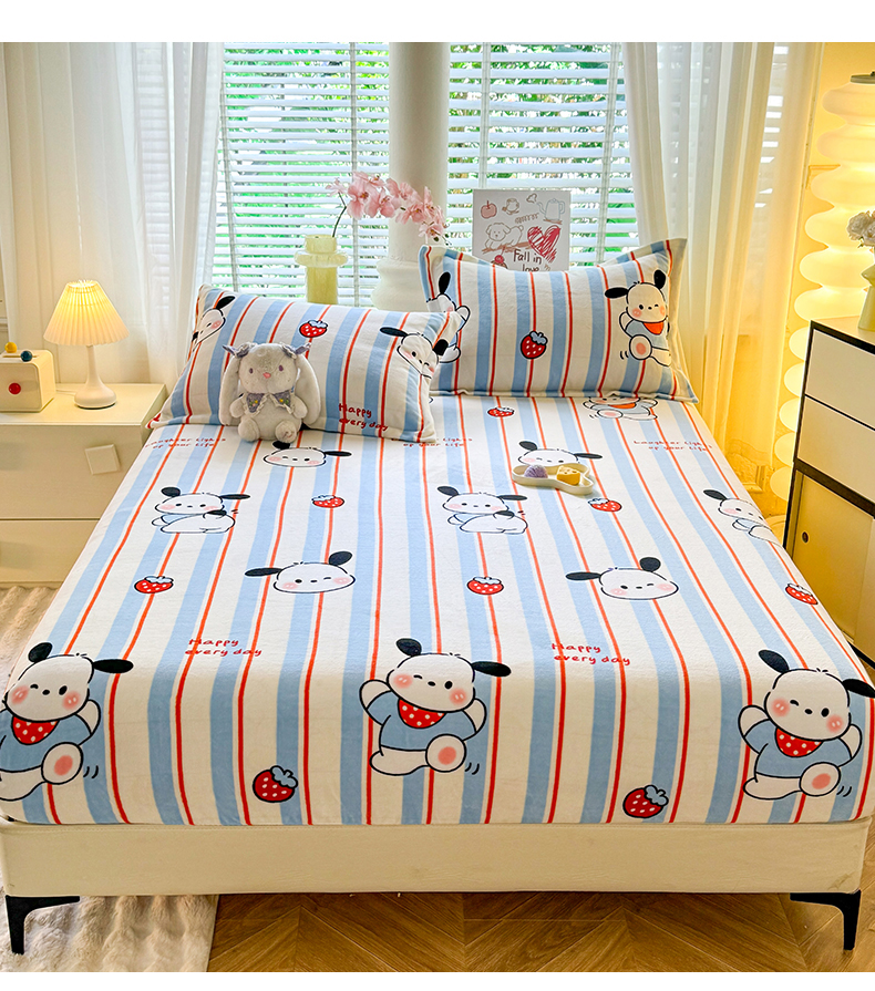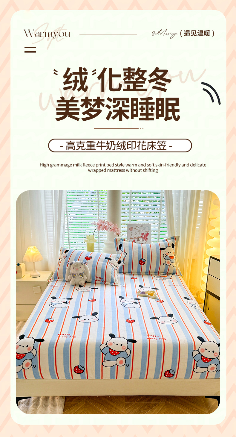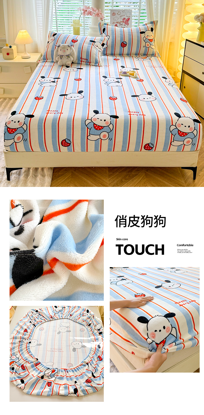 妖妖家纺 2024新款200克牛奶绒单床笠 俏皮狗狗
