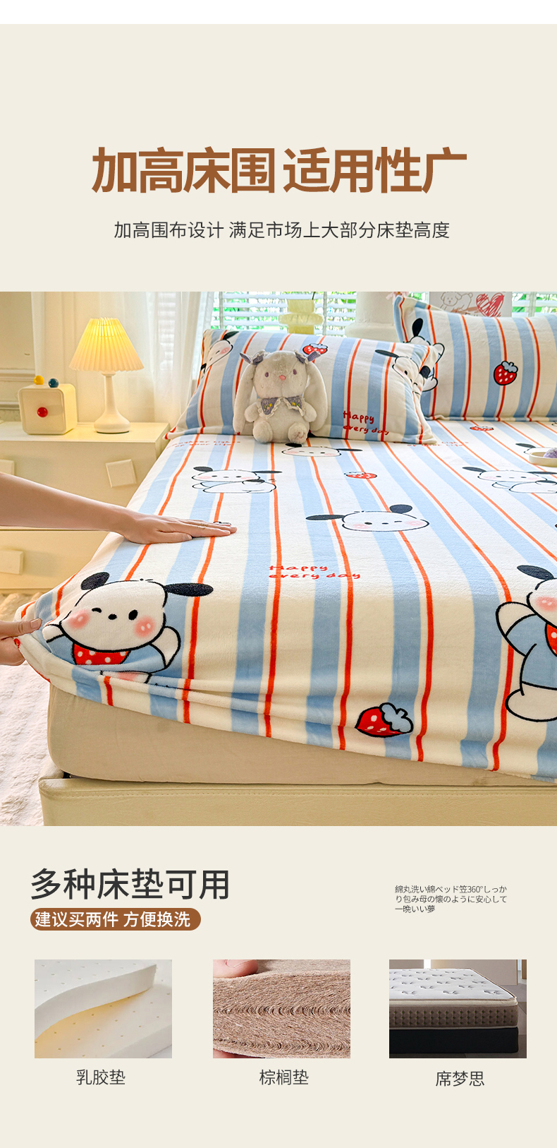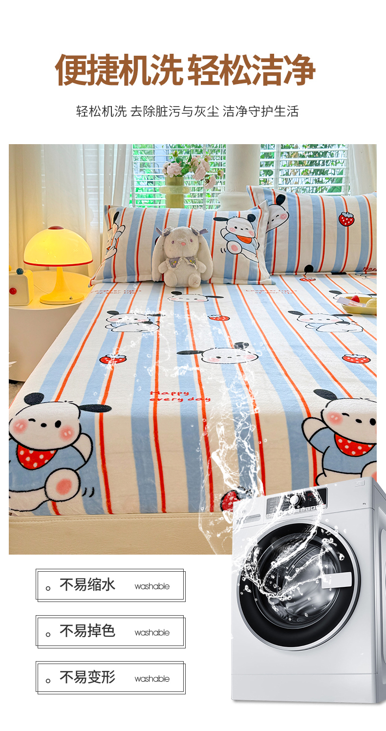 商品名称:妖妖家纺 2024新款200克牛奶绒单床笠 俏皮狗狗