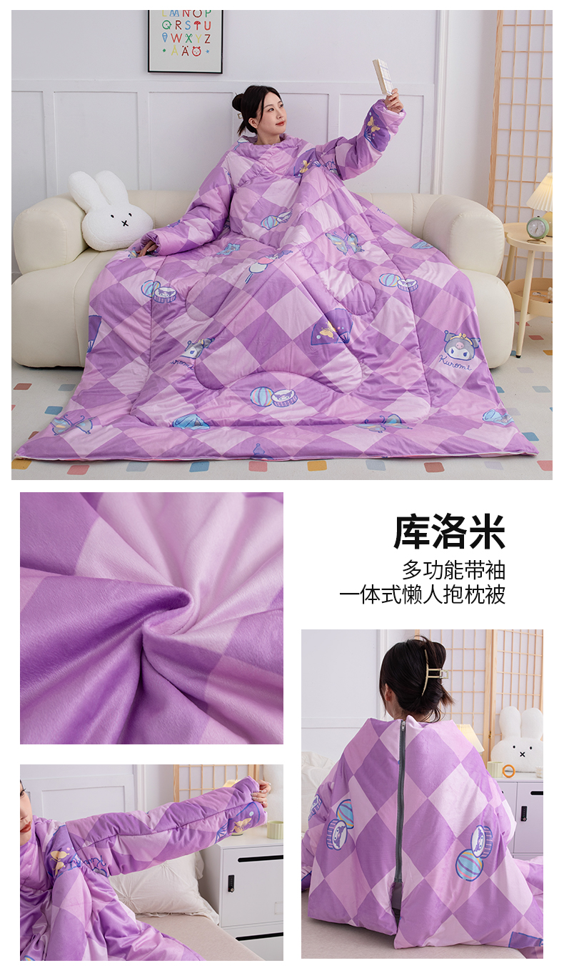 商品名称:照世家纺 2024新款卡通三丽鸥水晶绒多功能带袖一体式懒人被 库洛米
