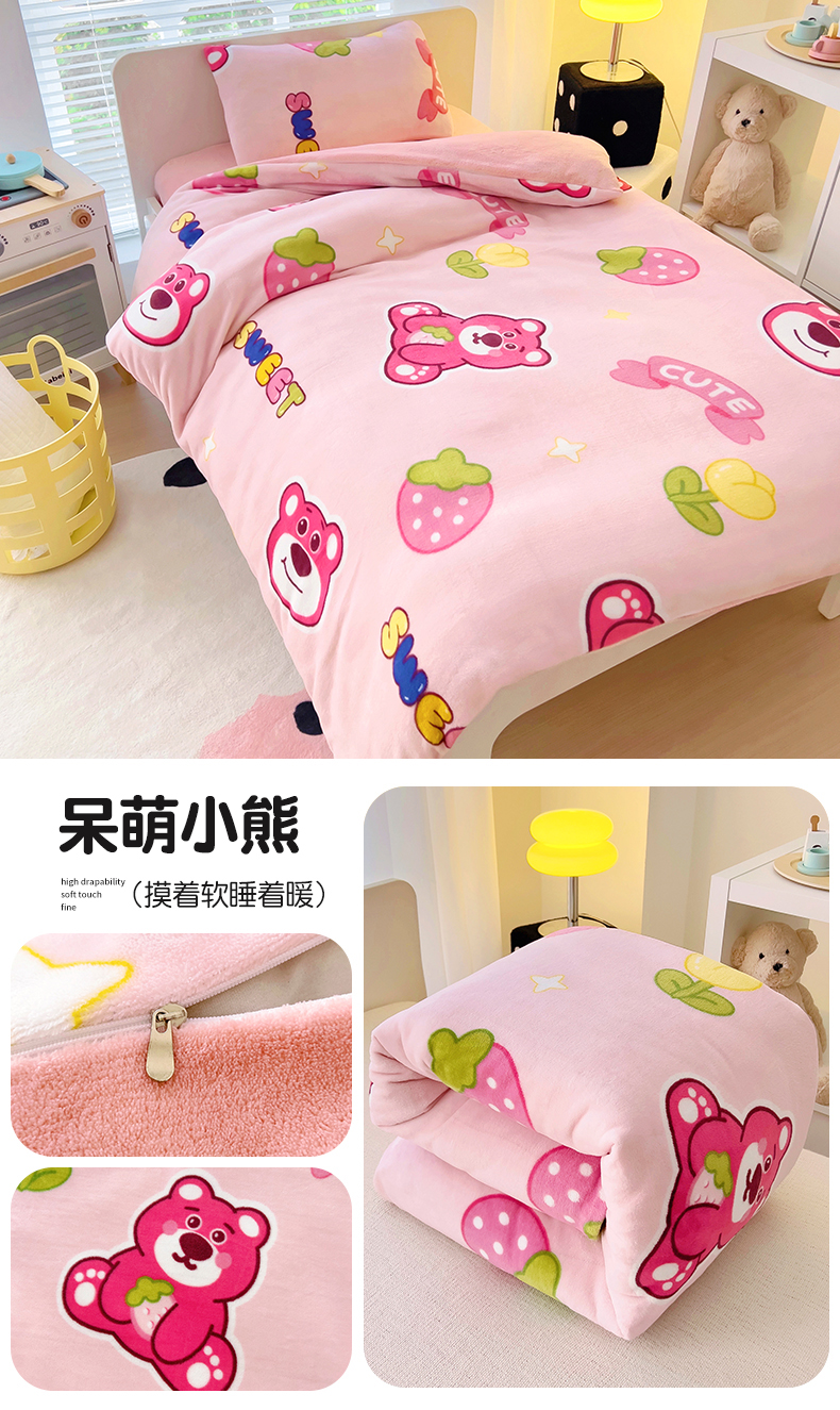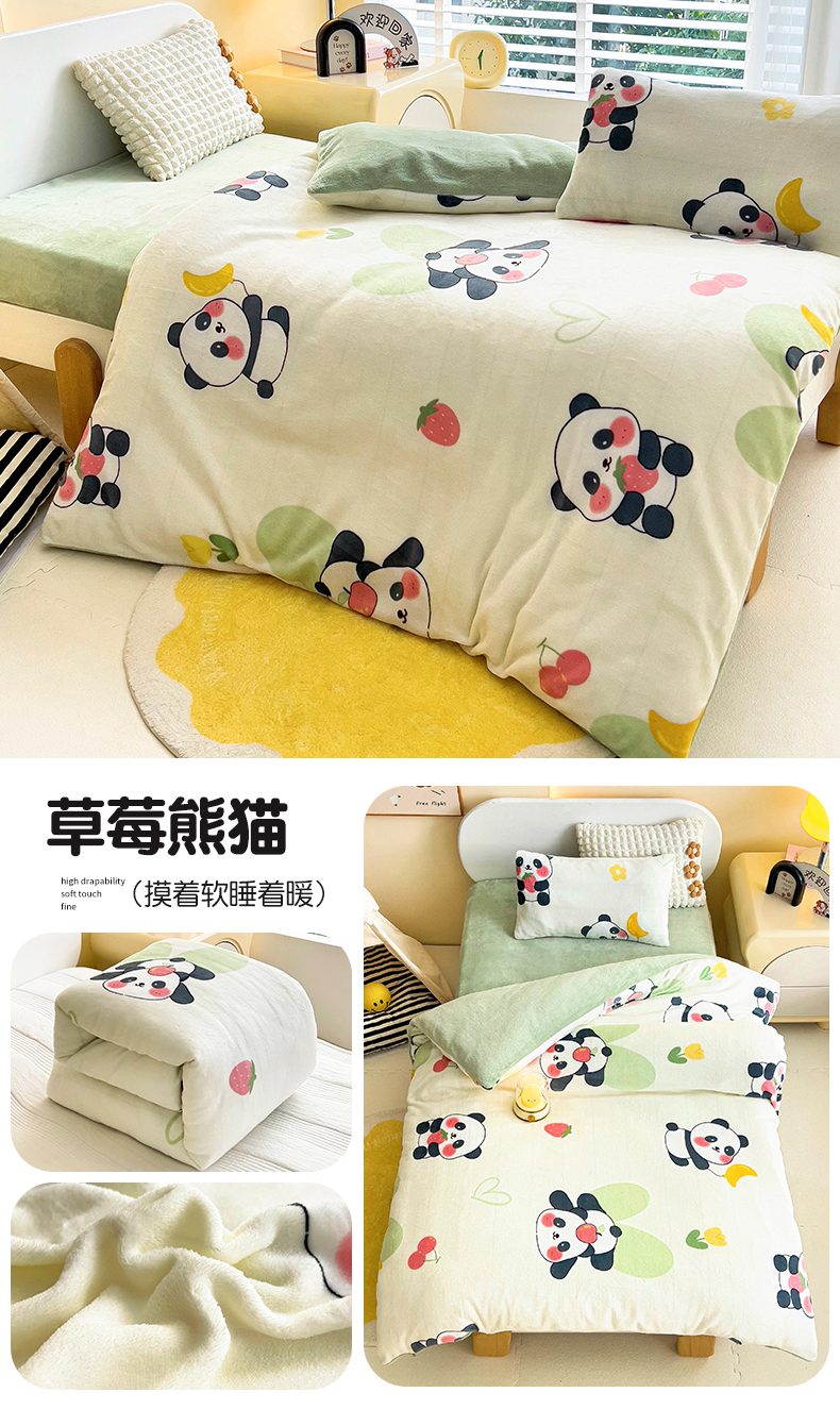 • 91家纺网 家纺一手货源 找家纺 鱼宝 2024新款牛奶绒可拆卸被套被芯 小熊猫