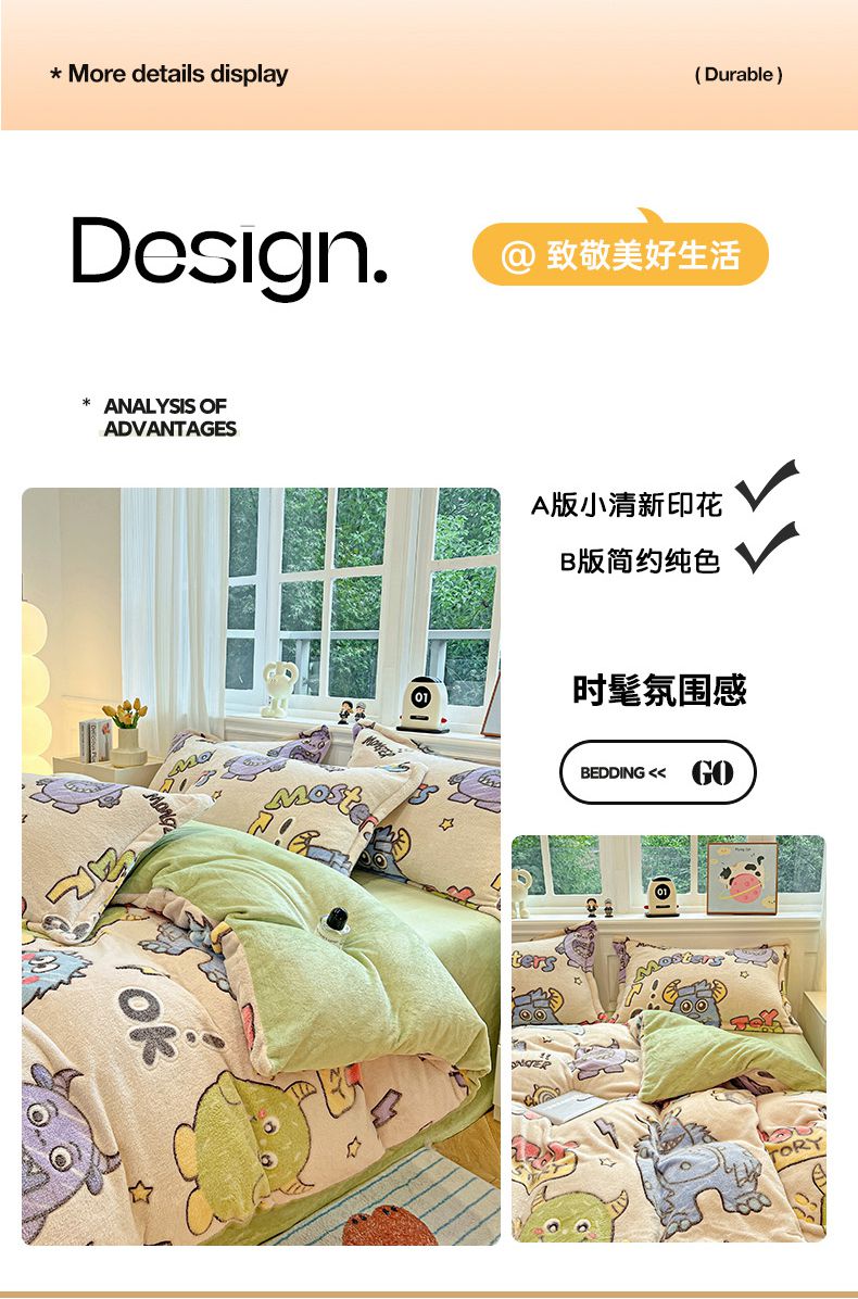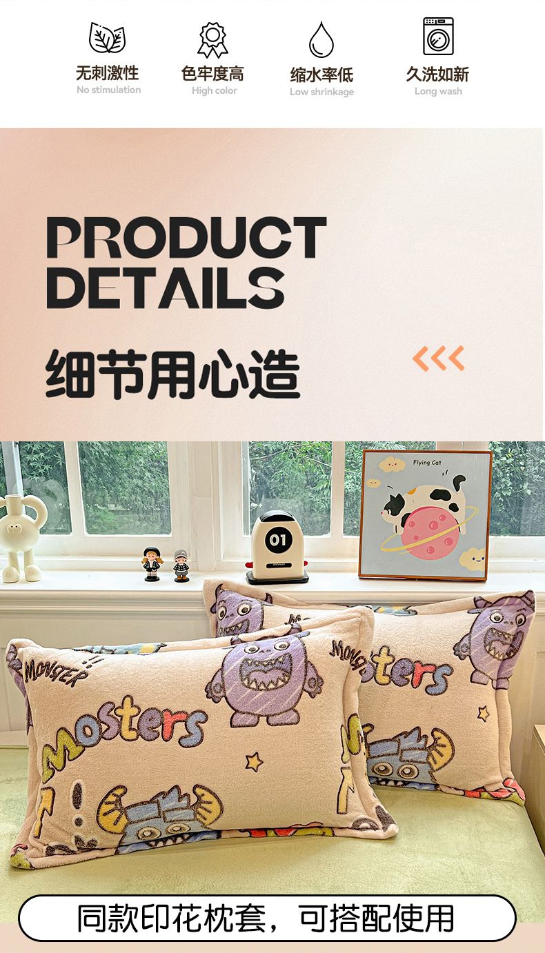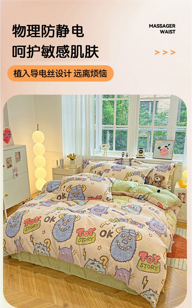 当前位置: 91家纺网 > 商品网购 > 床品套件 > 四件套 > 牛奶绒四件套 > 韩巢家纺 2024新款加厚雪花绒牛奶绒珊瑚绒四件套-新品(提供卖家秀) 小怪兽