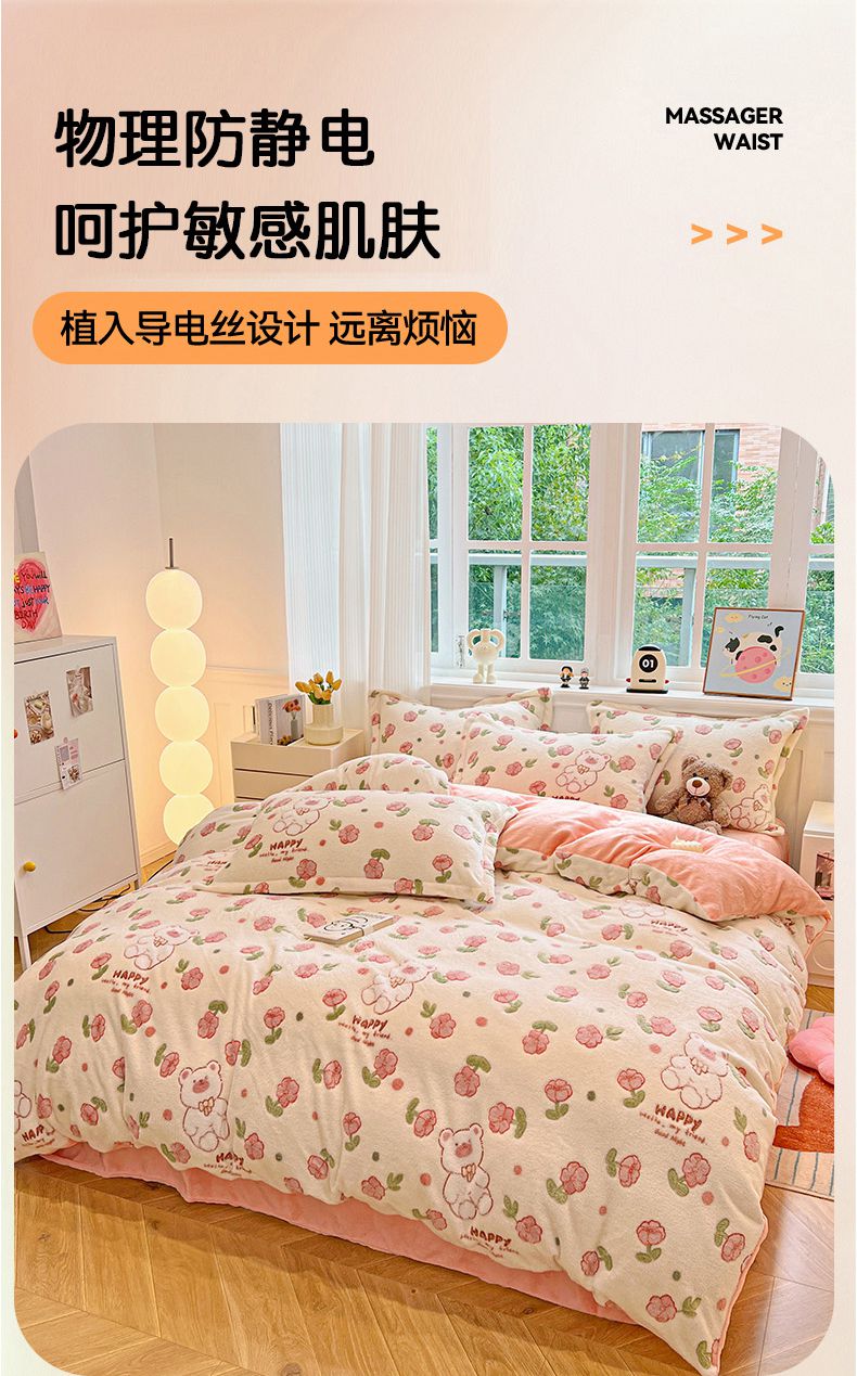 • 91家纺网 家纺一手货源 找家纺 (总)韩巢家纺 2025新款高克重雪花绒牛奶绒四件套系列,郁金香,爱心熊(绿),巴丽娜,大白鹅,大耳朵兔,蝶雅,花花世界,灰色轨迹,米菲,七彩,田园兔(黄),小怪兽,幸运兔,英伦熊