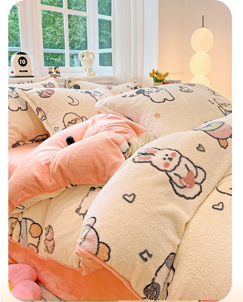 • 91家纺网 家纺一手货源 找家纺 (总)韩巢家纺 2025新款高克重雪花绒牛奶绒四件套系列,郁金香,爱心熊(绿),巴丽娜,大白鹅,大耳朵兔,蝶雅,花花世界,灰色轨迹,米菲,七彩,田园兔(黄),小怪兽,幸运兔,英伦熊