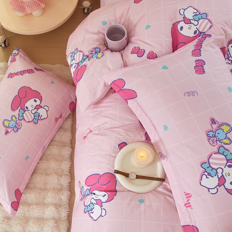当前位置: 91家纺网 > 商品网购 > 床品套件 > 四件套 > 全棉普通四件套 > 蘭菲家纺 2024新款全棉小版卡通三丽鸥四件套 美食家