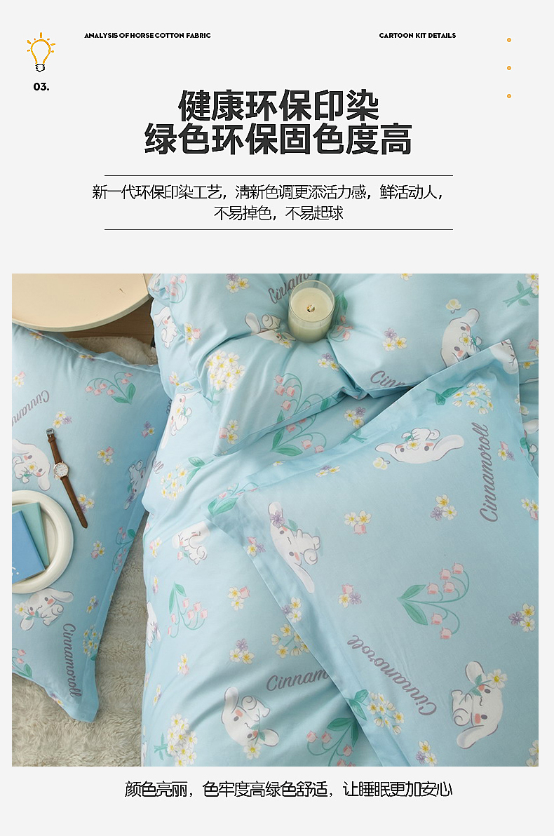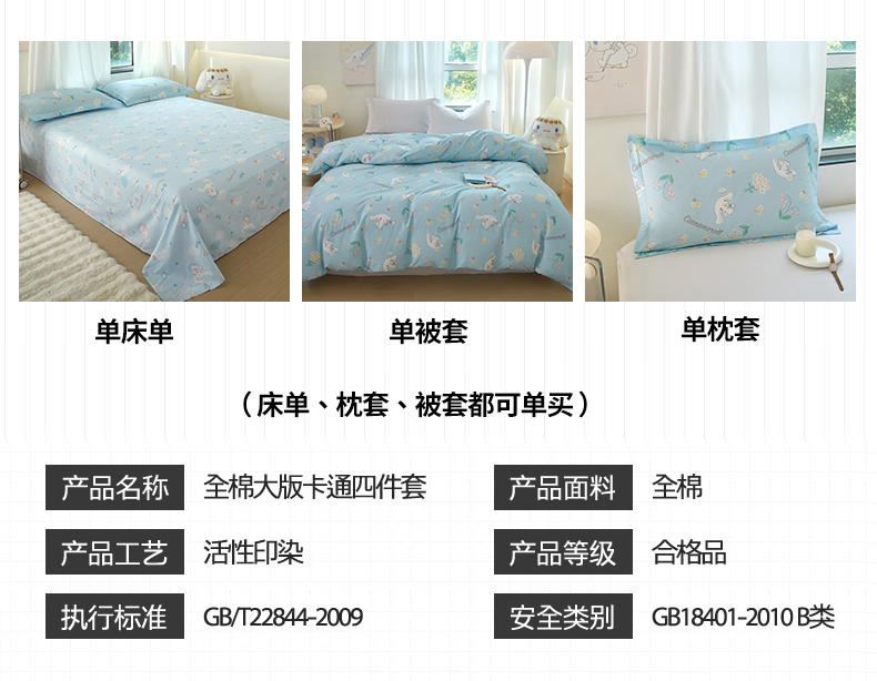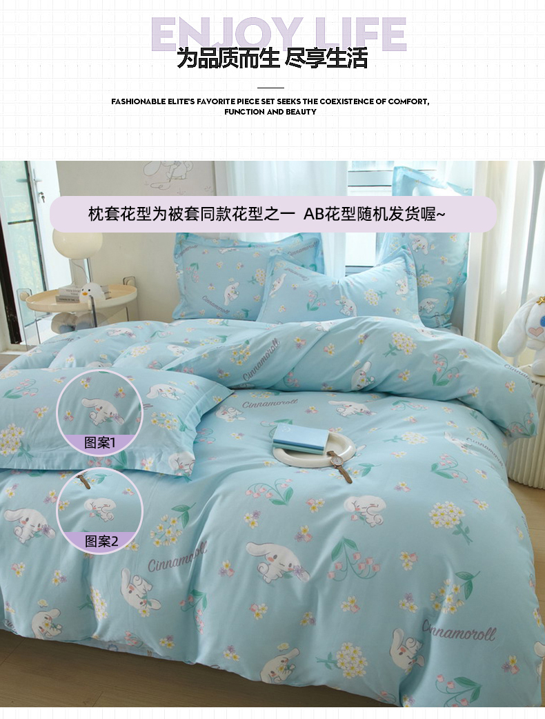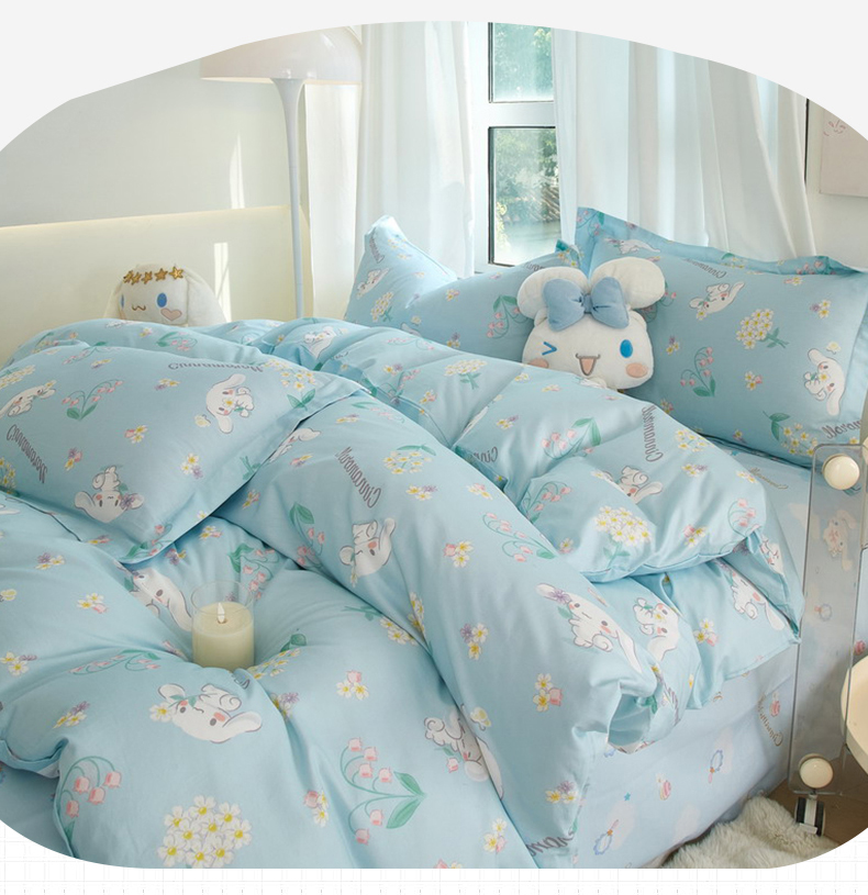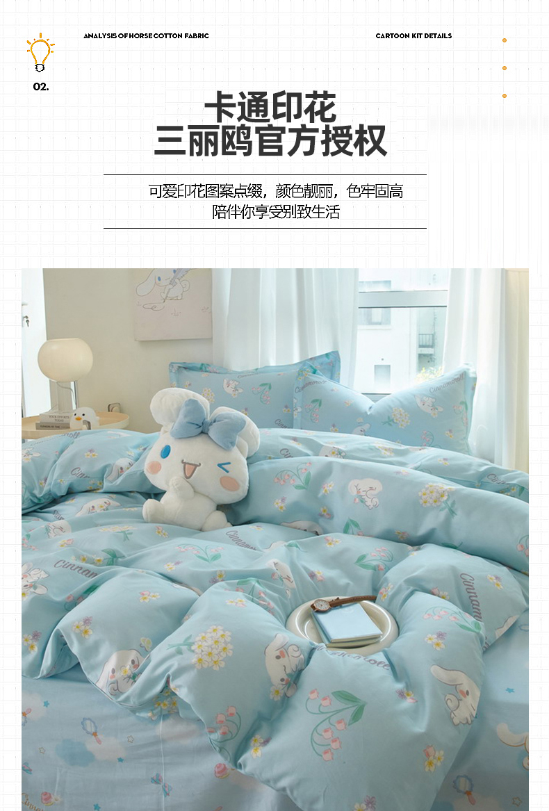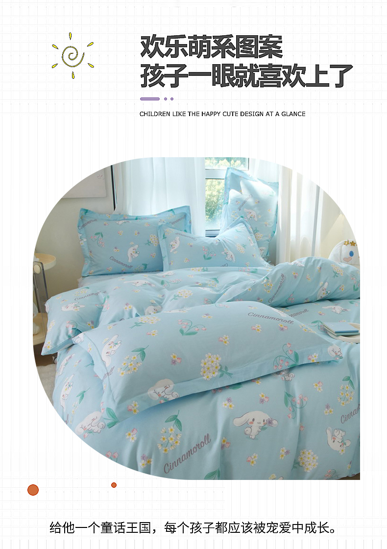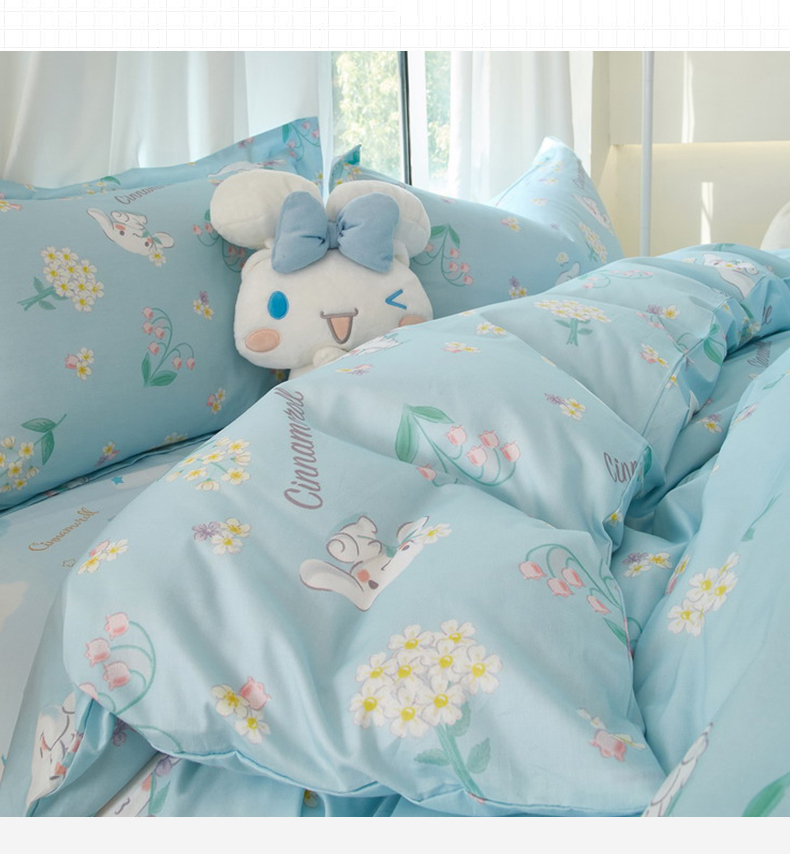 当前位置: 91家纺网 > 商品网购 > 床品套件 > 四件套 > 全棉普通四件套 > 蘭菲家纺 2024新款全棉小版卡通三丽鸥四件套 小清新