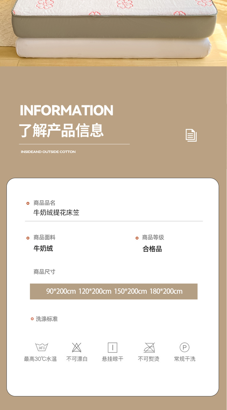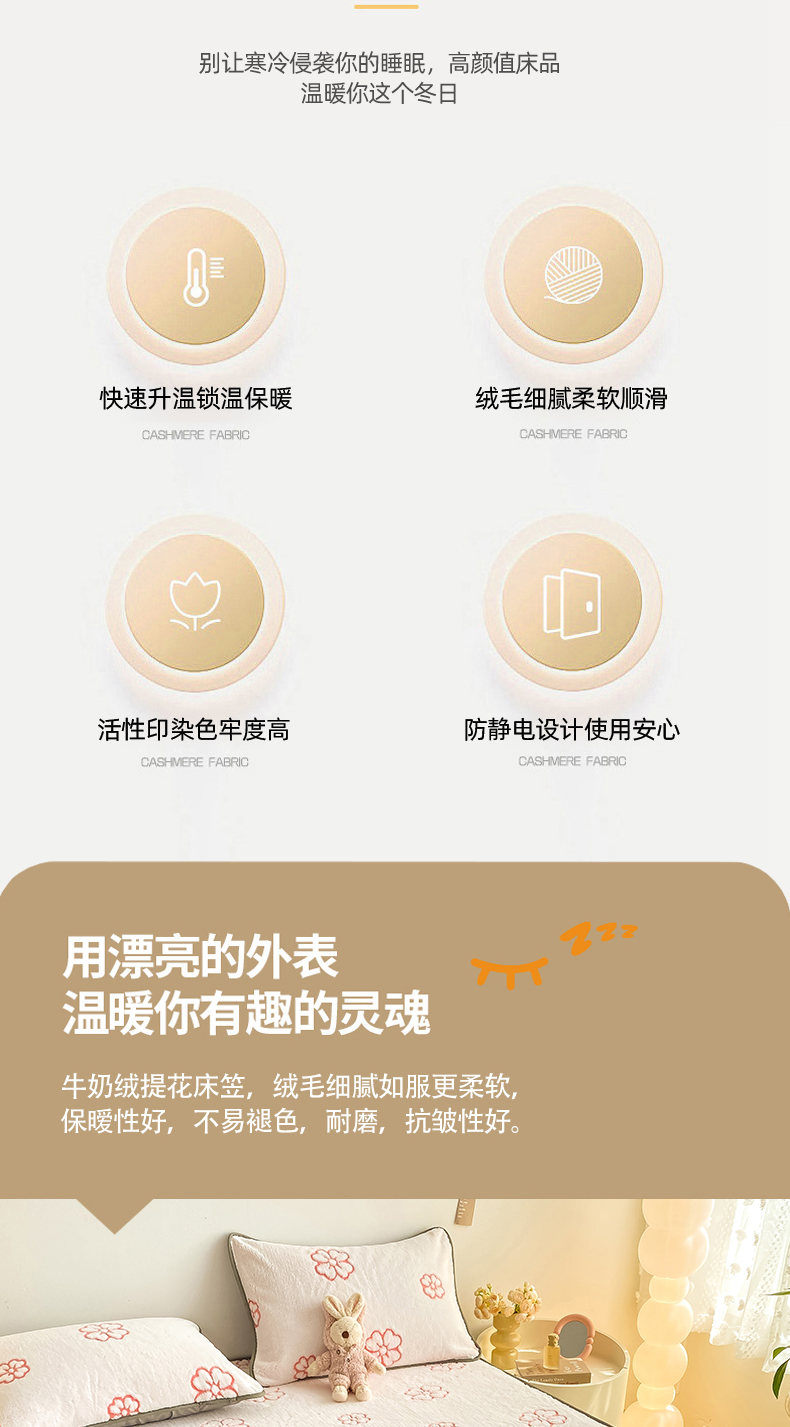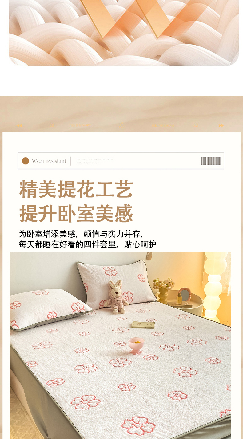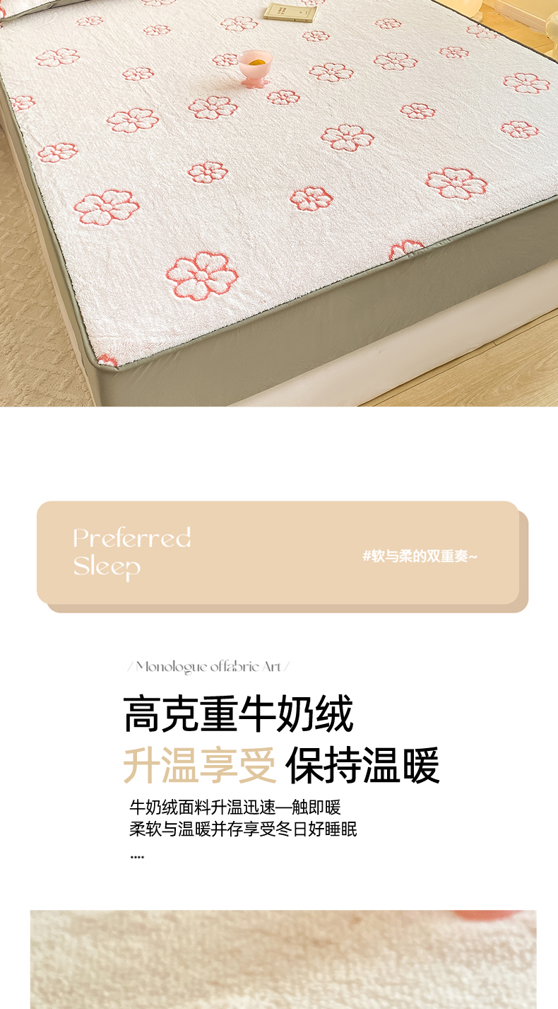 商品名称:好眠好梦 2024新款240g提花牛奶绒床笠 暖时光