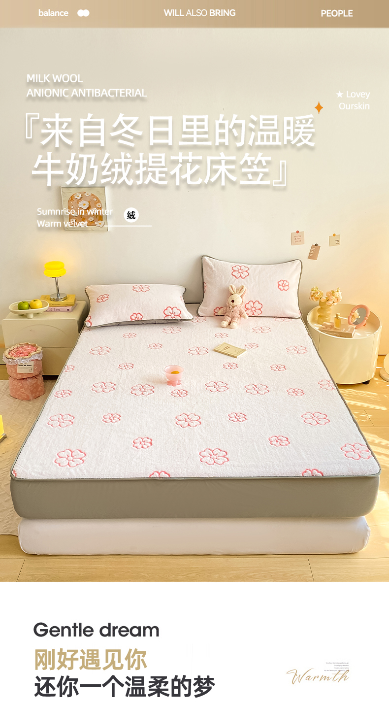 好眠好梦 2024新款240g提花牛奶绒床笠 暖时光