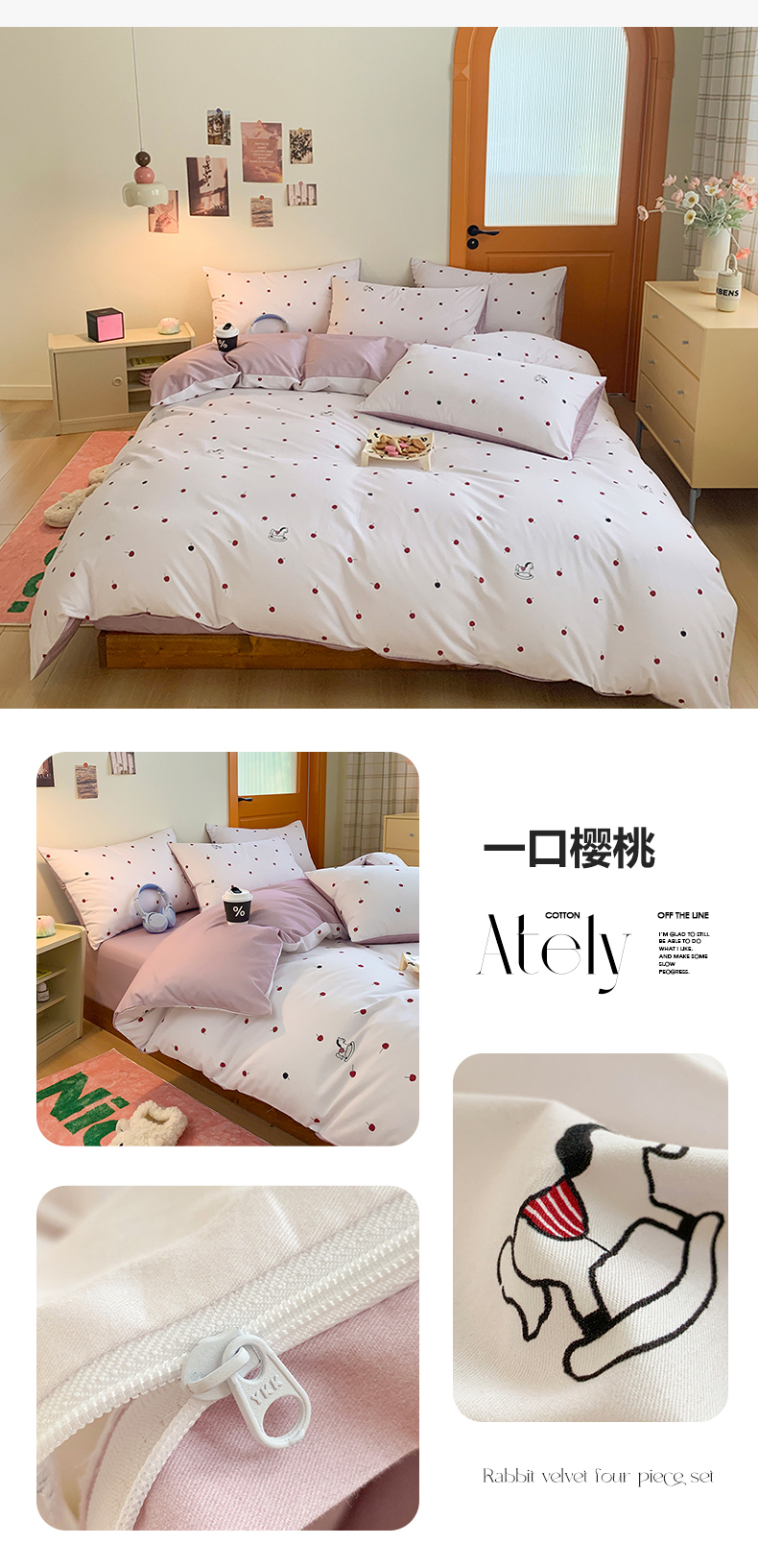 商品名称:富瑞阁 2024爆款13070全棉小清新印花四件套三件套 一口樱桃