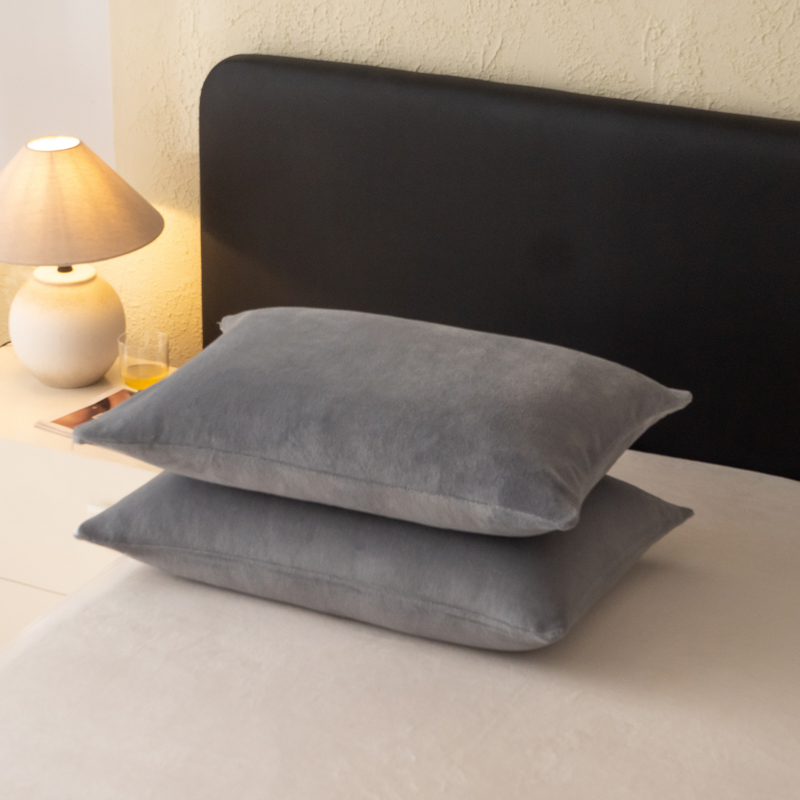逸尚阁 2024秋冬新款牛奶绒纯色单枕套枕套 灰