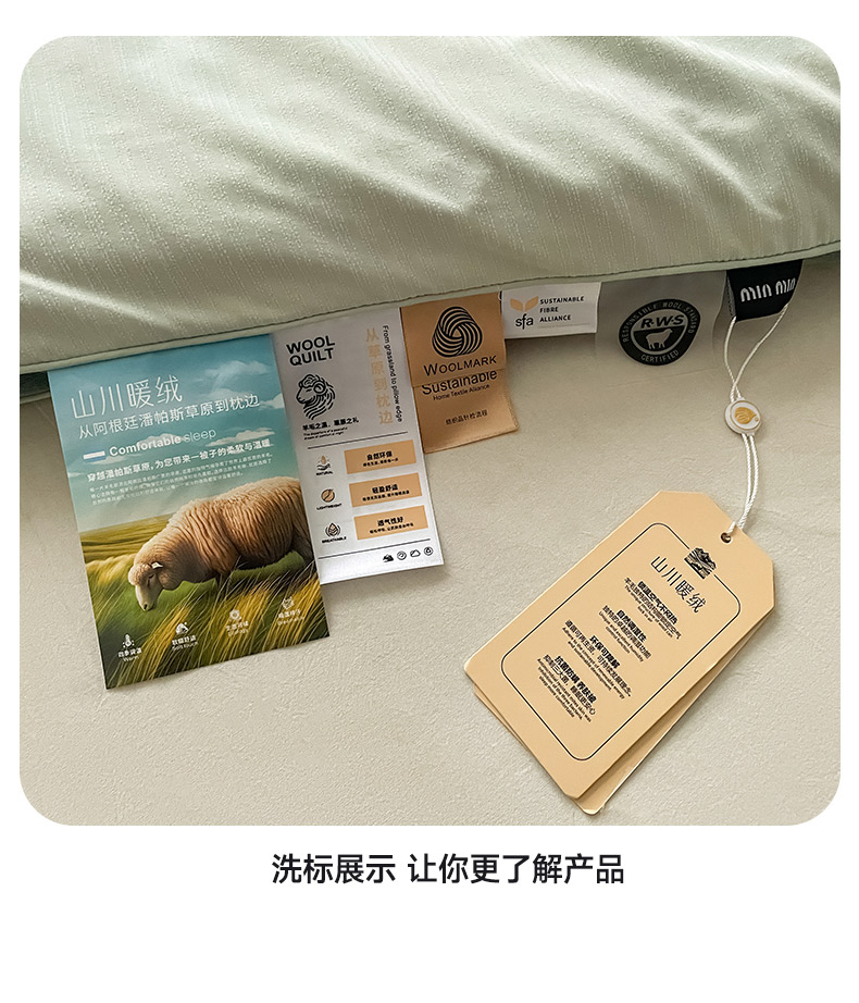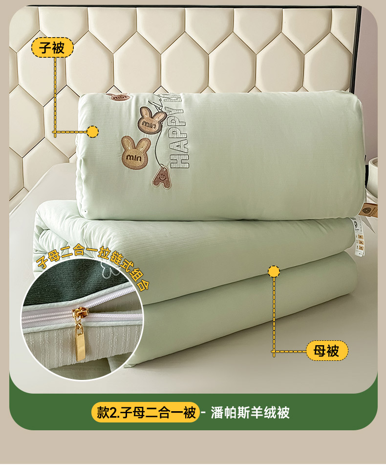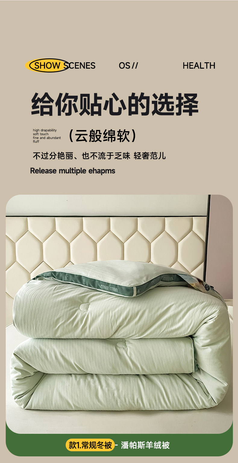 • 91家纺网 家纺一手货源 找家纺 被靠被 2024新款minmin潘帕斯羊绒被被子被芯 豆绿