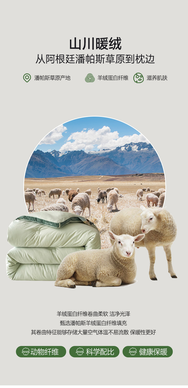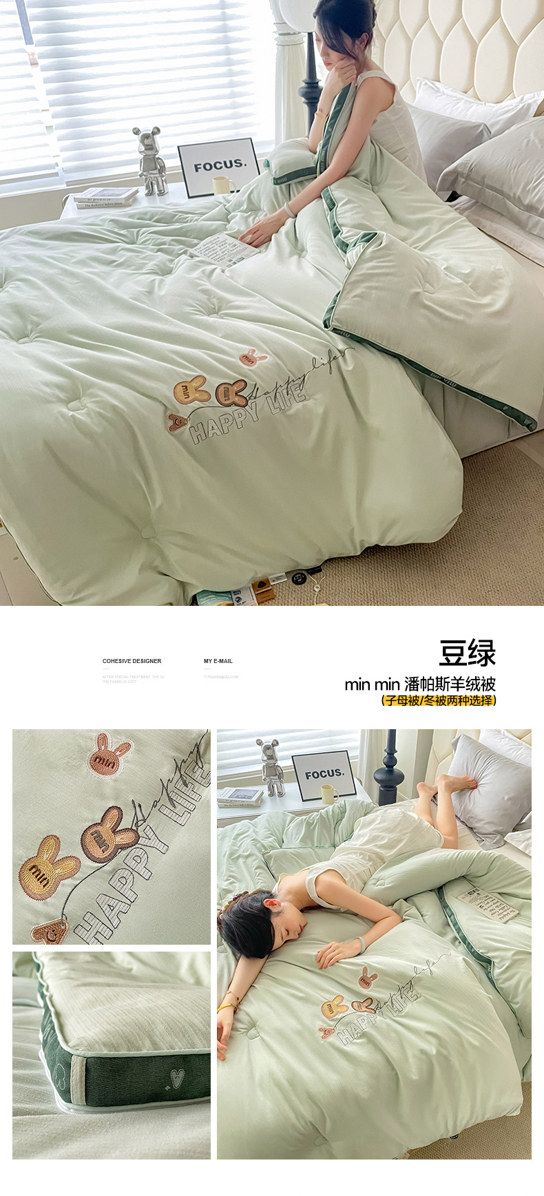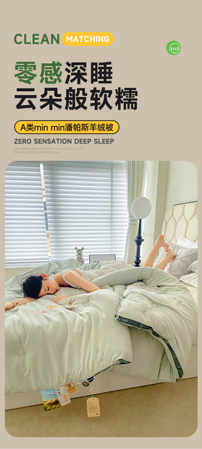 • 91家纺网 家纺一手货源 找家纺 被靠被 2024新款minmin潘帕斯羊绒被被子被芯 豆绿