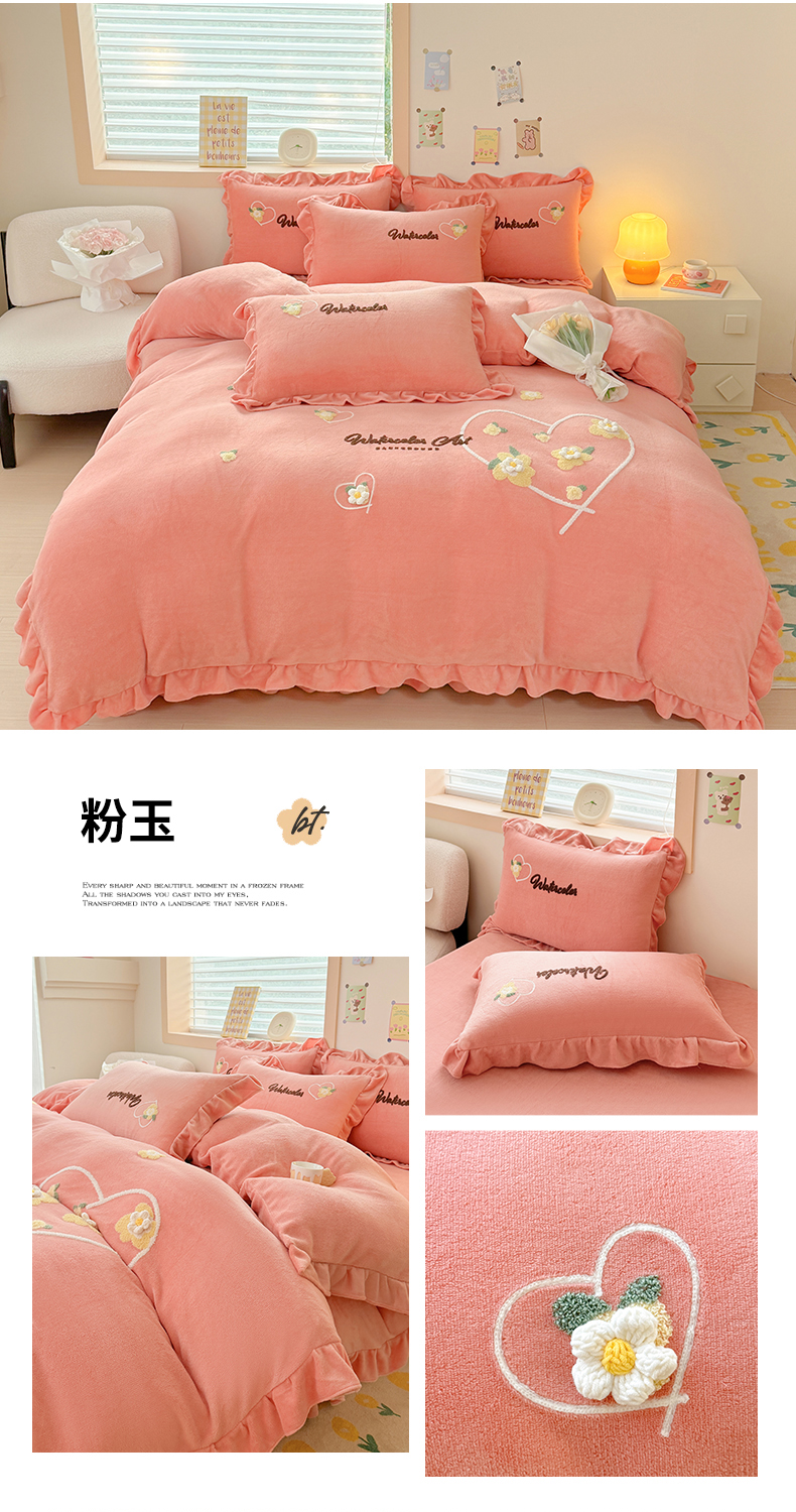 商品名称:金米诺 2024新款牛奶绒毛巾绣四件套 粉玉