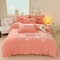金米诺 新款韩版花边水洗棉泡泡纱四件套公主条四件套 褶皱-浅粉,褶皱-浅粉