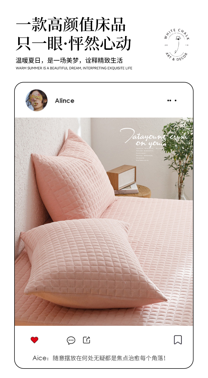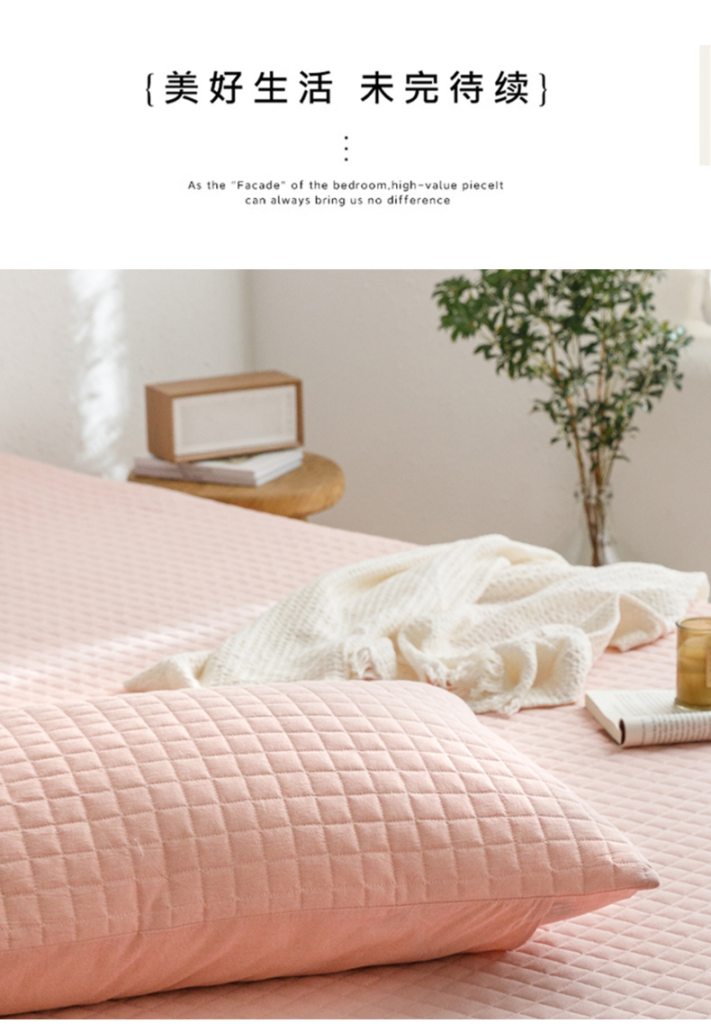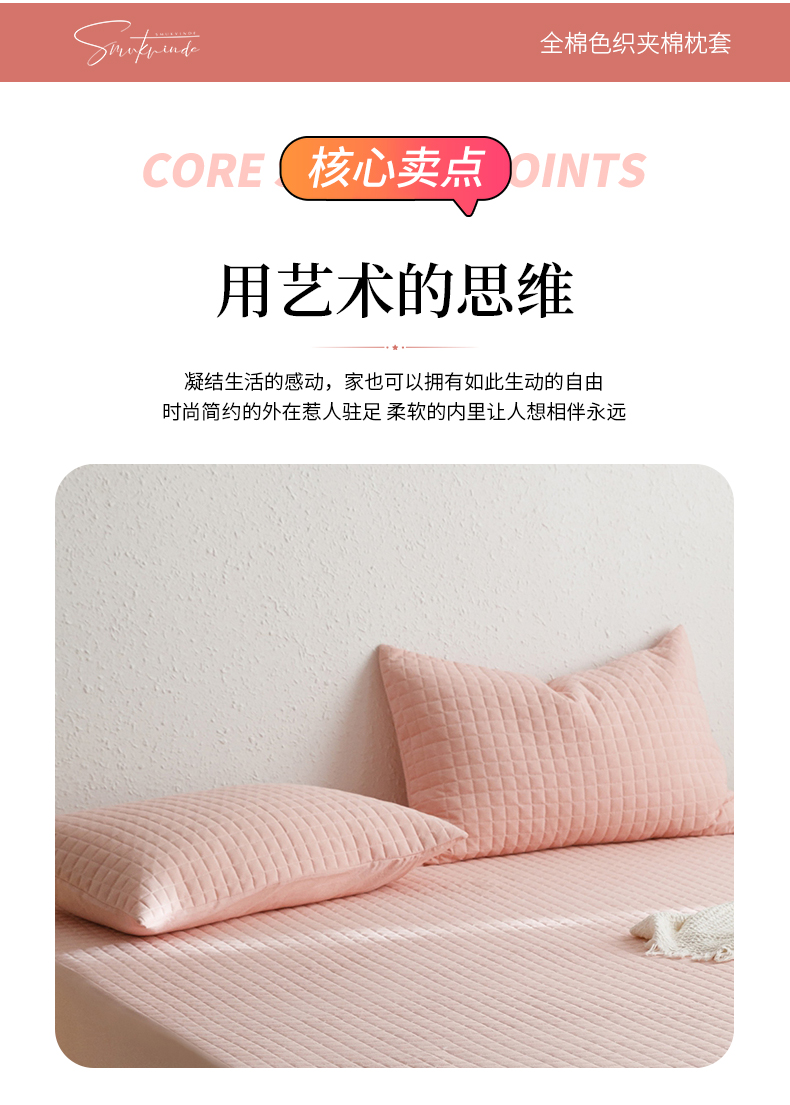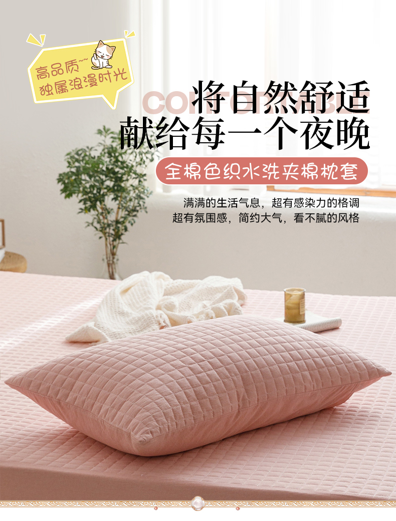 商品名称:忘忧草 2024新款全棉色织水洗棉夹棉枕套-格韵 格韵-粉玉