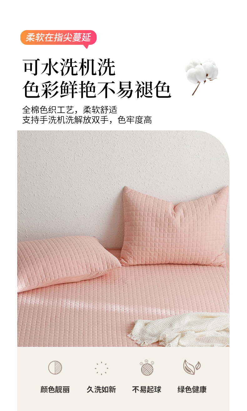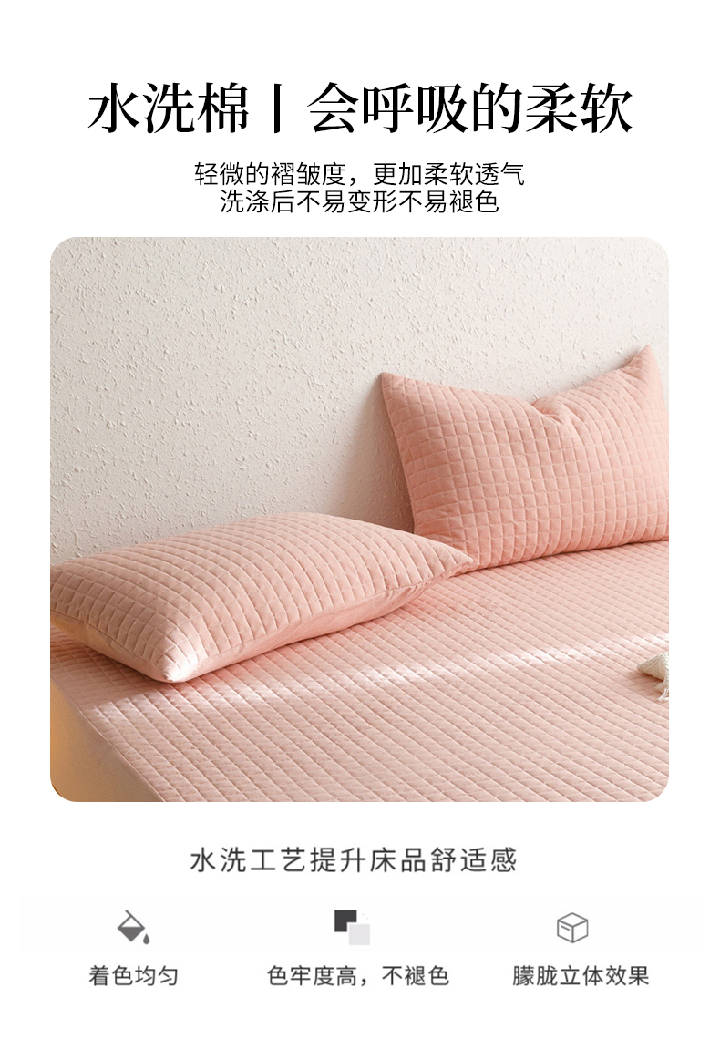 (总)忘忧草 2025新款A类全棉色织水洗夹棉床笠纯棉,格韵-卡其,格韵-浅灰,格韵-浅蓝,格韵-粉玉,格韵-雅白